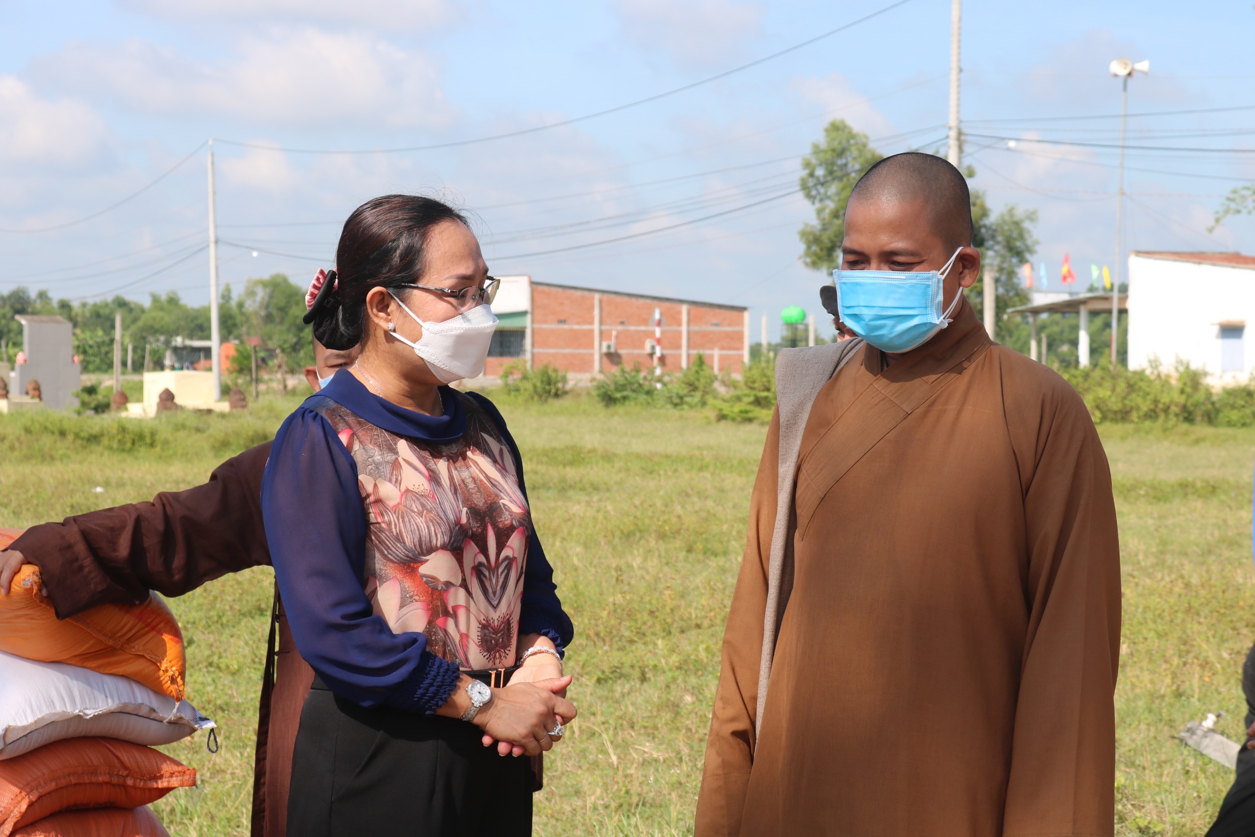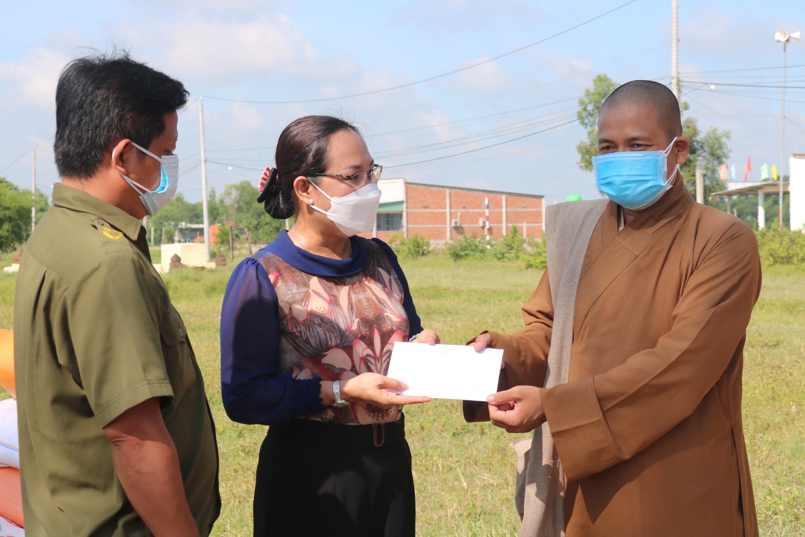 Đại diện chính quyền xã Hiệp Hòa và các hộ dân, bà Nguyễn Thị Thu Hà tỏ lòng biết ơn sâu sắc đến Ban Trị sự GHPGVN huyện Đức Hòa, Tăng ni Phật tử đã quan tâm, hỗ trợ cho khu vực phong tỏa. Cuối cùng, bà gửi lời chúc sức khỏe đến phái đoàn.