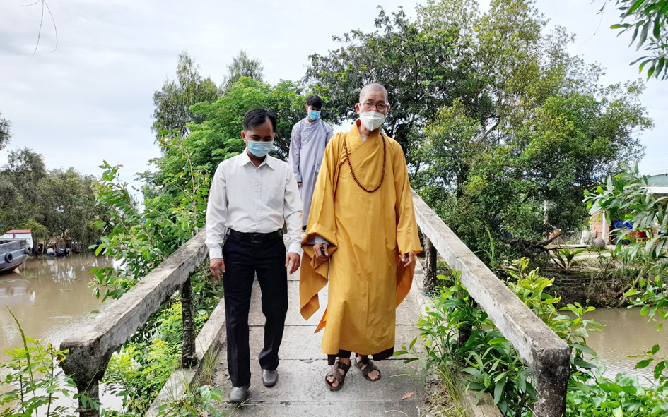 Tại buổi lễ, Thượng Tọa Thích Lệ Tấn báo cáo công tác chuẩn bị xây dựng 3 công trình giao thông nông thôn và gửi lời thăm hỏi, động viên đến Đảng bộ Chính quyền xã Kiến Bình trong công tác phòng chống dịch bệnh COVID 19 trong thời gian vừa qua.