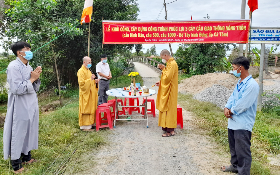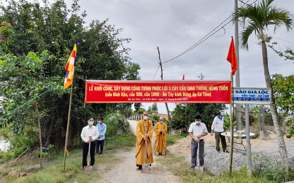 Sáng ngày 23 tháng 9 năm 2021 (nhằm ngày 17 tháng 8 năm Tân Sửu), Ban Trị Sự GHPGVN huyện Tân Thạnh phối hợp với UBND xã Kiến Bình tổ chức lễ động thổ khởi công xây dựng 3 công trình phúc lợi gồm cầu Kinh Hậu, cầu 500 và cầu 1000 bờ Tây Kinh Đứng ấp Cá Tôm xã Kiến Bình.
