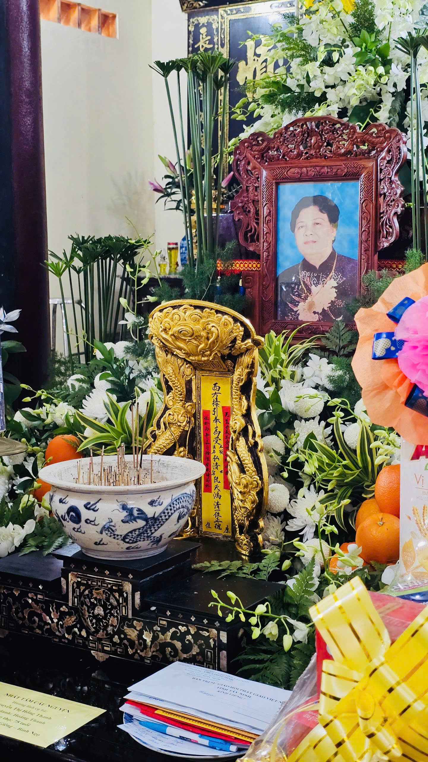 Trong không khí trang nghiêm và thấm đượm đạo tình, chư Tôn đức đã thành kính dâng hương lễ Phật, tưởng niệm và cầu nguyện cho chơn linh Cụ Bà sớm cao đăng Phật quốc. Đồng thời, chư Tôn đức cũng gửi lời phân ưu sâu sắc đến Thượng tọa Thích Phước Cường cùng toàn thể môn đồ pháp quyến. Buổi viếng tang không chỉ bày tỏ tấm lòng chia sẻ trước nỗi mất mát mà còn thể hiện tinh thần hòa hợp, tương thân tương trợ trong ngôi nhà chung Giáo hội, đồng thời tri ân công đức của bậc thân mẫu đã dưỡng dục nên người con xuất gia, góp phần phụng sự Đạo pháp và lợi lạc quần sanh.