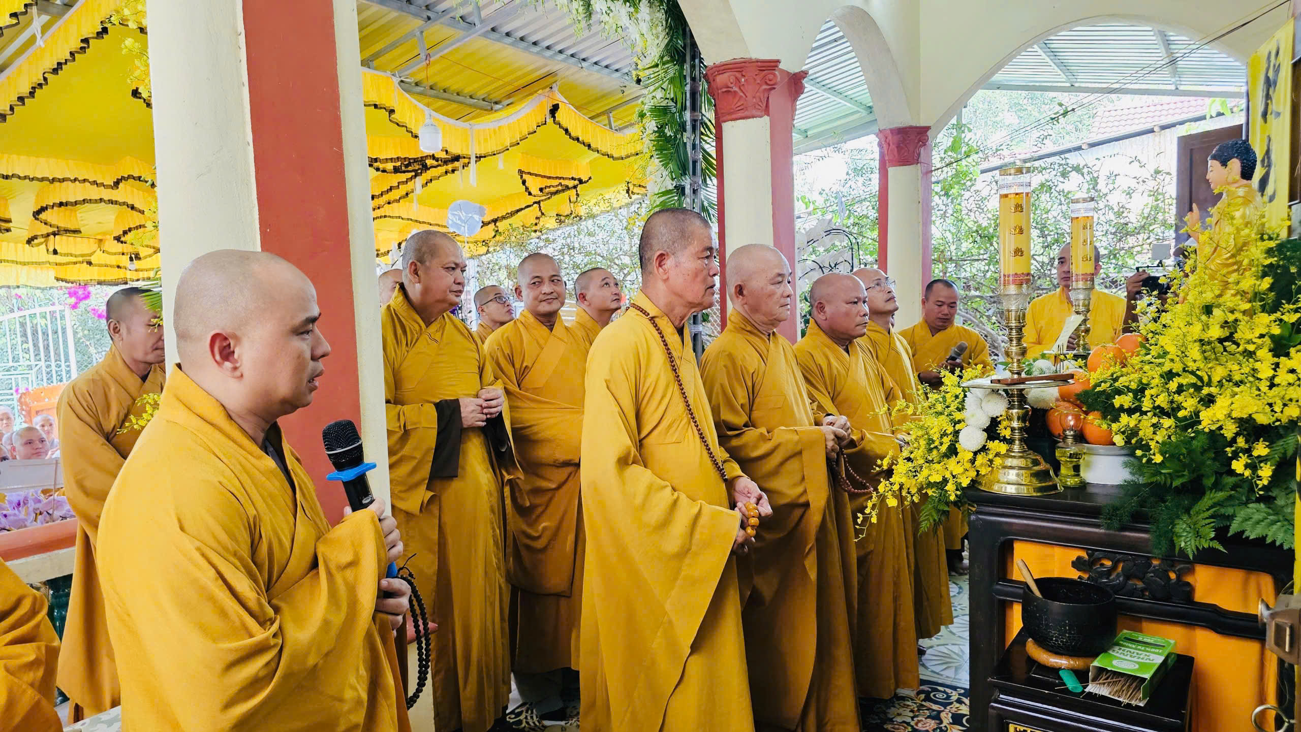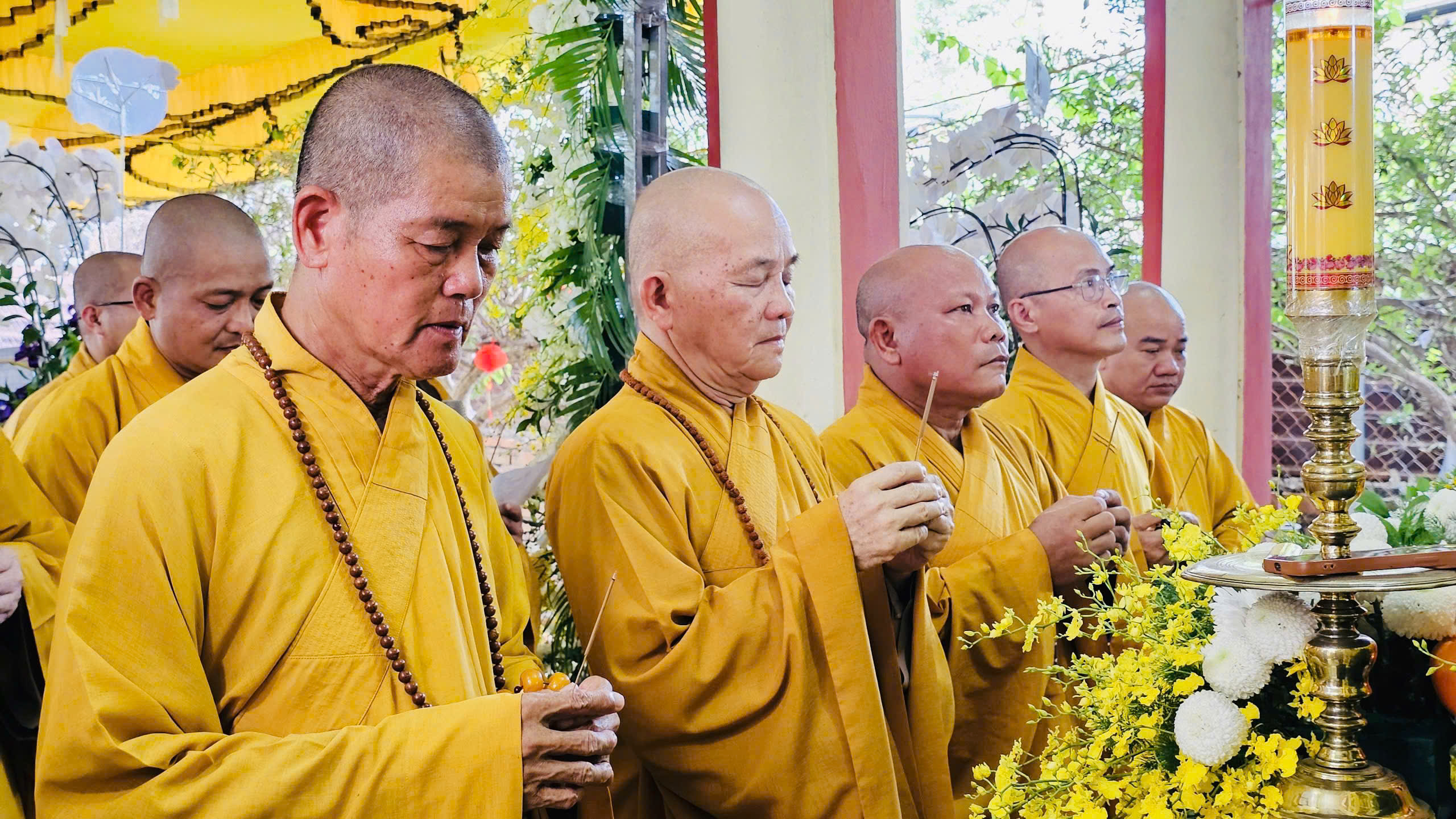 Tháp tùng phái đoàn có: TT. Thích Lệ Tấn – Chứng minh BTS GHPGVN tỉnh; ĐĐ. Thích Thiện Thức – UV HĐTS, Phó Trưởng ban Thường trực BTS GHPGVN tỉnh; TT. Thích Lệ Trí – UV HĐTS, Phó Trưởng ban Trị sự GHPGVN tỉnh; TT. Thích Lệ Duyên – Phó Trưởng ban kiêm Chánh Thư ký BTS GHPGVN tỉnh; TT. Thích Lệ Ngôn – Phó Trưởng BTS GHPGVN tỉnh; chư Tôn đức Ban Thường trực BTS GHPGVN tỉnh Tây Ninh; Ban Giám hiệu, Ban Giáo thọ và Tăng Ni sinh Trường TCPH Tây Ninh các cơ sở: chùa Thiên Khánh, chùa Pháp Minh, chùa Phước Thành; Tăng Ni sinh các khóa Trường Sơ Trung cấp Phật học Long An.