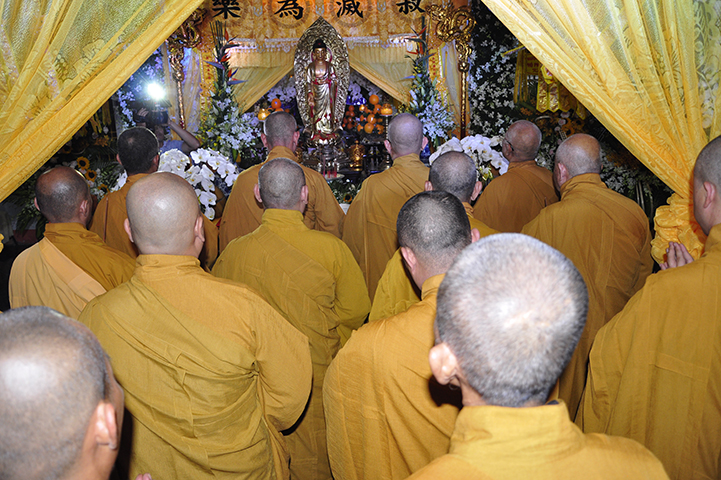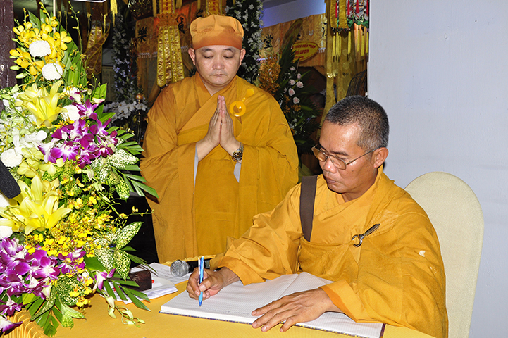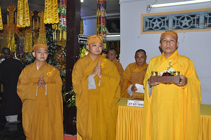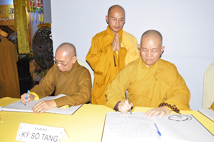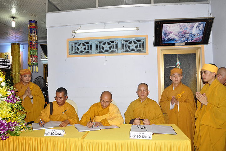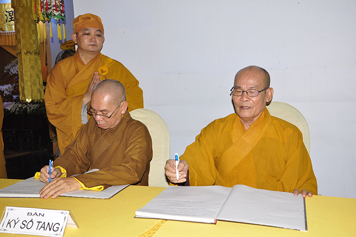 Sau đó, chư Tôn đức hữu nhiễu kim quan và ghi vào sổ tang lưu niệm.
