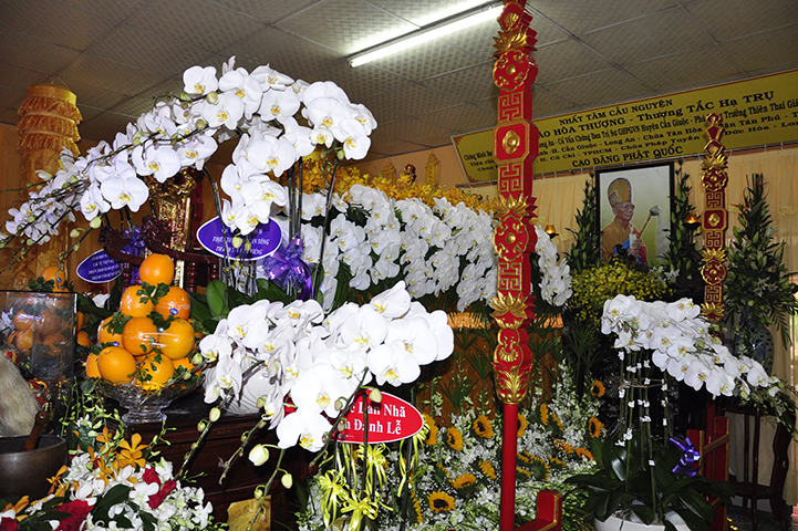 Tại lễ tưởng niệm, Trước linh đài khói hương quyện tỏa, lòng thành kính, chư Tôn Ban Trị sự GHPGVN tỉnh, huyện đã thành kính dâng hương tưởng niệm Giác Linh cố Hòa thượng.