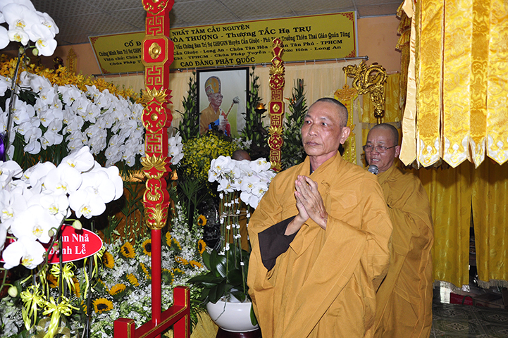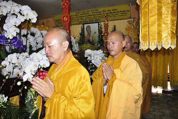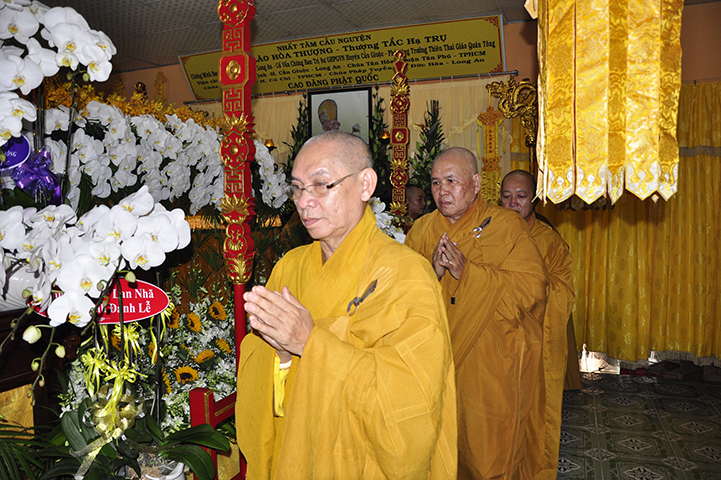Vào lúc 14 giờ 00, ngày 12/9/2017 (22/7/Đinh dậu), Phái đoàn Ban trị sự GHPGVN tỉnh Long An đã đến chùa Pháp Tịnh, xã Trường Bình, thị trấn Cần Giuộc, kính viếng Giác linh Hoà thượng Thích Tắc Trụ- Nguyên Chứng minh Ban Trị sự Giáo hội Phật giáo Việt Nam tỉnh Long An;– Chứng minh Ban Trị sự Giáo hội Phật giáo Việt Nam huyện Cần Giuộc.– Phó Tông trưởng Thiên Thai Giáo Quán Tông.– Viện chủ Chùa Pháp Tịnh, xã Trường Bình, huyện Cần Giuộc, tỉnh Long An.– Viện chủ Chùa Pháp Tuyền, huyện Đức Hòa, tỉnh Long An.– Viện chủ Chùa Tân Hòa, quận Tân Phú, thành phố Hồ Chí Minh.– Viện chủ Chùa Pháp Thiện, huyện Củ Chi, thành phố Hồ Chí Minh.