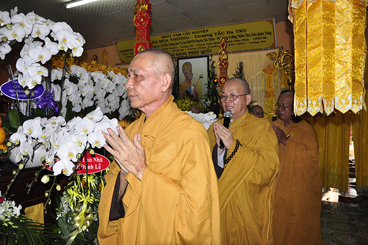 Phái đoàn gồm có HT. Thích Minh Thiện- UVHĐTSTƯ, Phó Ban Hoằng Pháp trung ương, Trưởng Ban trị sự GHPGVN tỉnh Long An( làm trưởng đoàn); HT. Thích Thiện Huệ- Chứng minh Ban trị sự GHPGVN tỉnh Long An; HT. Thích Thiện Tâm- Phó BTS kiêm Trưởng Ban kiểm Soát GHPGVN tỉnh Long An; TT. Thích Minh Thọ- UVHĐTSTƯ, Phó thường trực BTS GHPGVN tỉnh Long An; TT. Thích Quảng Tâm- Phó Ban trị sự kiêm trưởng Ban từ thiện xã hội BTS. GHPGVN tỉnh Long An cùng Chư tôn đức Tăng Ni trong thường trực BTS tỉnh và Chư tôn đức Ban trị sự GHPGVN huyện Cần Giuộc.