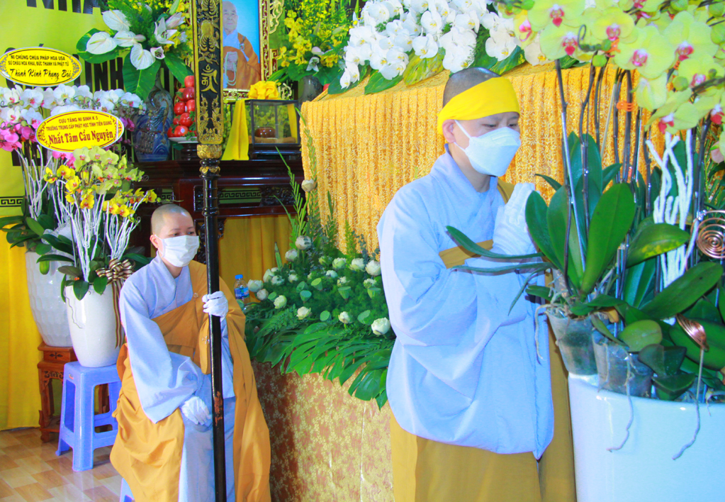 Thay mặt Ban tổ chức tang lễ Thượng tọa Thích Minh Thọ, phó Ban Trị Sự GHPGVN tỉnhh Long An. Trưởng Ban Trị Sự GHPGVN TP Tân An, trưởng Ban Tổ chức Tang lễ dâng lời cảm niệm tri ân đến Hòa thượng Trưởng Ban Trị Sự GHPGVN Tỉnh Long An cũng như Chư tôn đức trong phái đoàn.