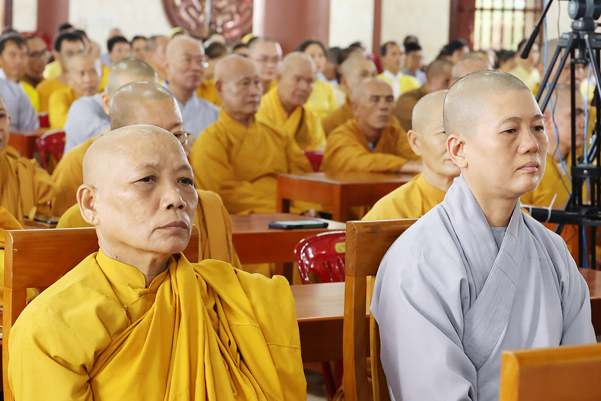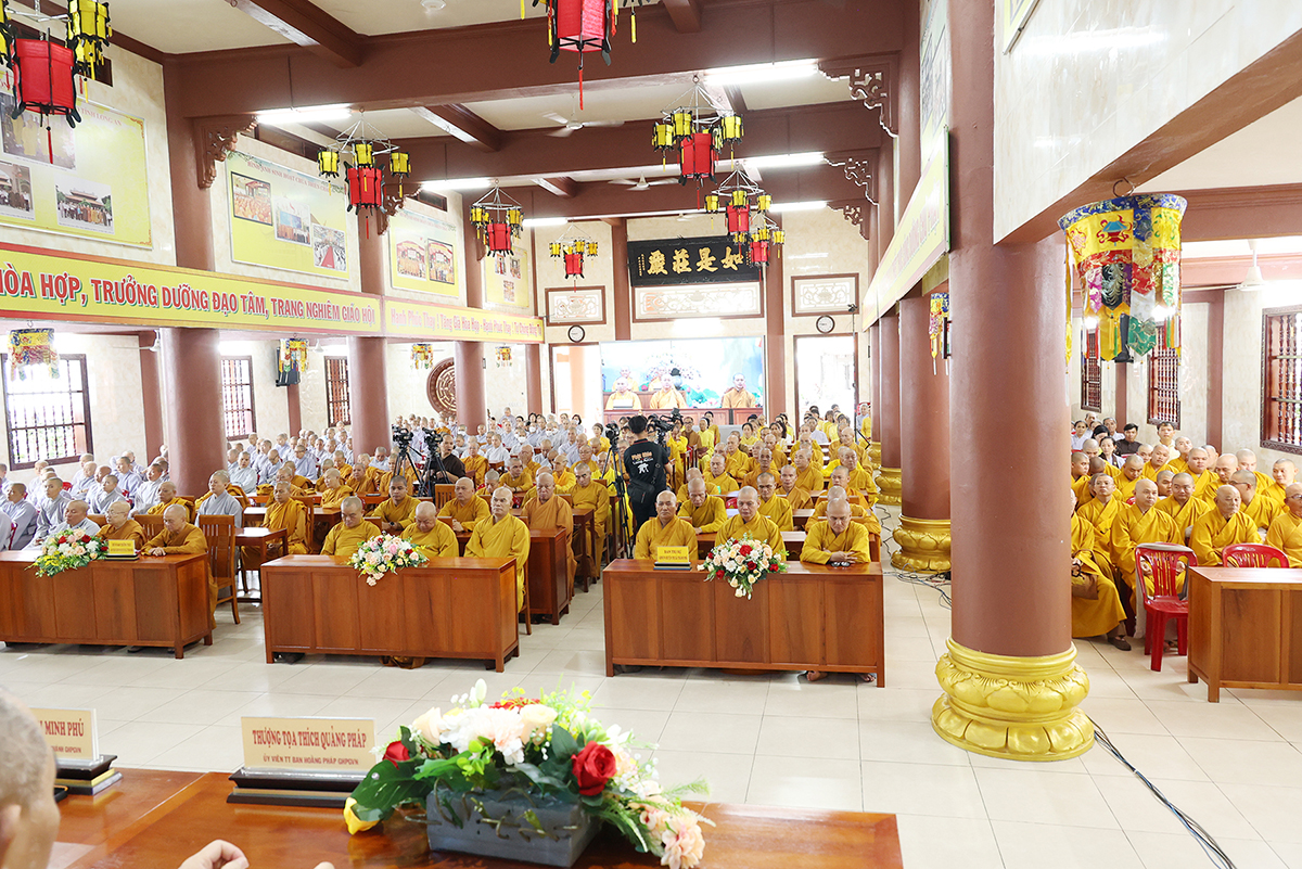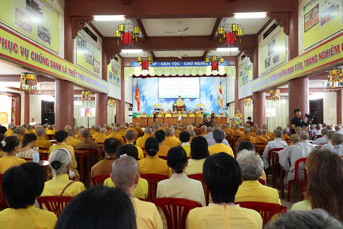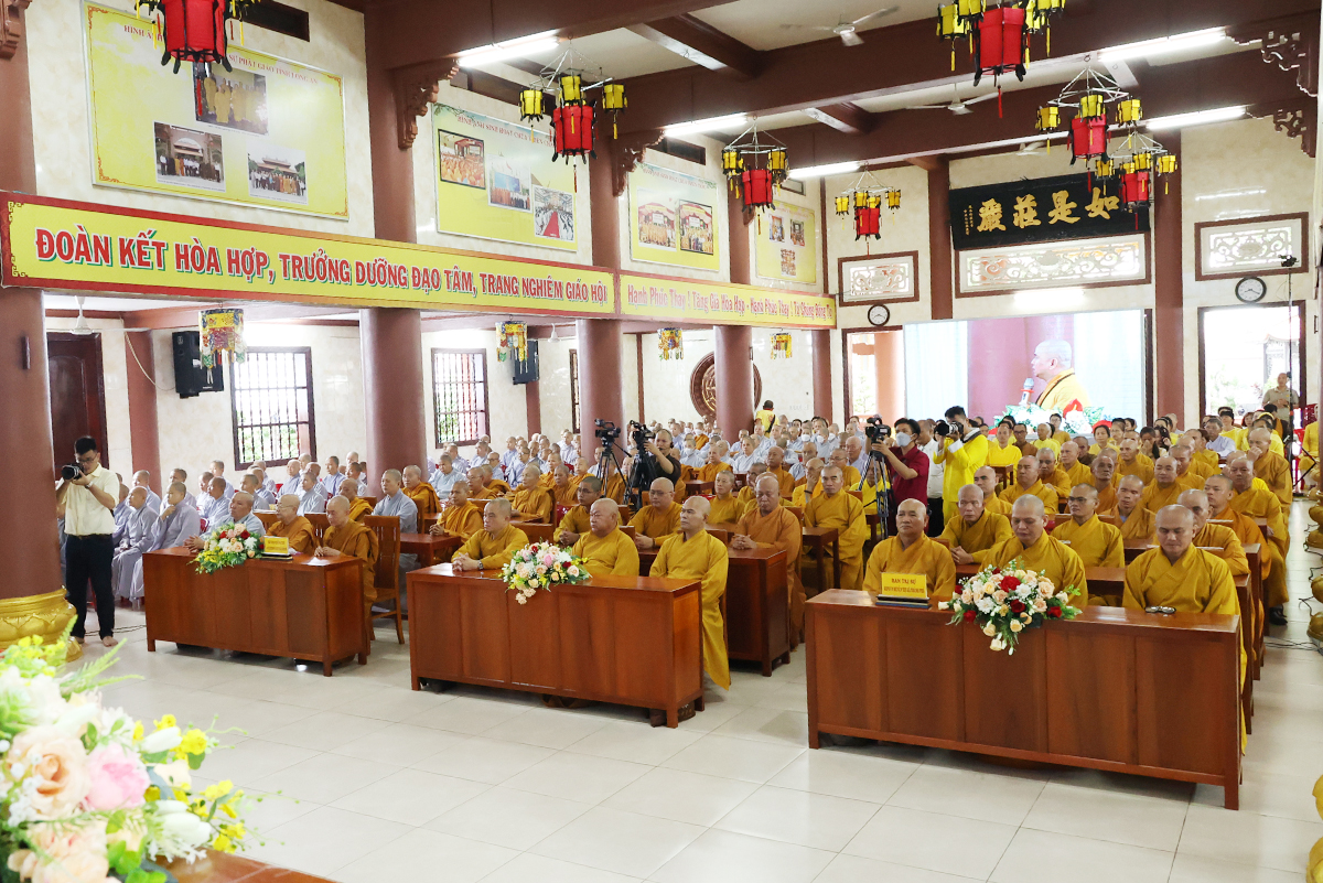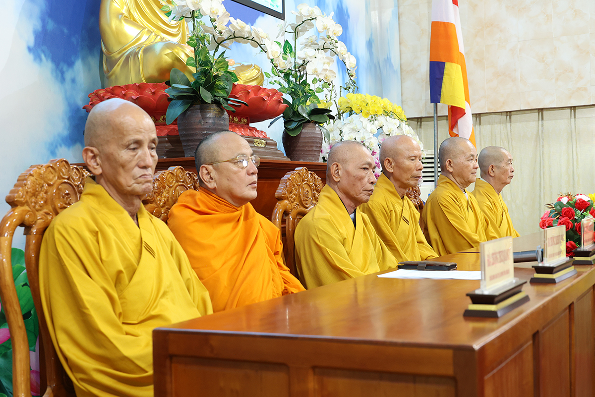 Thay mặt BTS GHPGVN tỉnh Long An, TT. Thích Quảng Tâm báo cáo công tác tổ chức Khoá An cư Kiết hạ Phật lịch 2567. Theo báo cáo, Tất cả các điểm An cư Kết hạ tổ chức thời gian tu học đủ ba tháng, từ ngày 03/7/2023 đến ngày 30/9/2023 (nhằm ngày 16/4/Quý Mão) đến ngày 16/7/Quý Mão). Tổng Khai giảng vào Ngày 03/7/2023 (nhằm ngày 16/4/Quý Mão), Bế giảng ngày 23/8/2023 (nhằm ngày 08/7/Quý Mão) tại Chùa Kim Cang, ấp Bình Cang 1, xã Bình Thạnh, huyện Thủ Thừa, tỉnh Long An. Các trường hạ sẽ học các chuyên đề về Kinh – Luật – Luận, thực hiện Bố tát đầy đủ mỗi tháng 2 lần, Hành chánh Giáo hội, Bồi dưỡng Kiến thức Trụ trì, Luật Tín ngưỡng Tôn giáo,… Được biết, mùa An cư kiết hạ năm nay, Phật giáo Long An tổ chức 12 điểm An cư Kết hạ cho gần 1000 vị Tăng Ni trong tỉnh tu học. Điểm nổi bật trong công tác tổ chức năm nay là BTS GHPGVN Tỉnh đã tổ chức thành công khóa bồi dưỡng trụ trì, triển khai hiến chương tu chỉnh lần thứ 7. Nhân đây, Thượng tọa đã báo cáo sơ bộ về những thành tựu nổi bật của Phật giáo tỉnh nhà trong những năm qua.