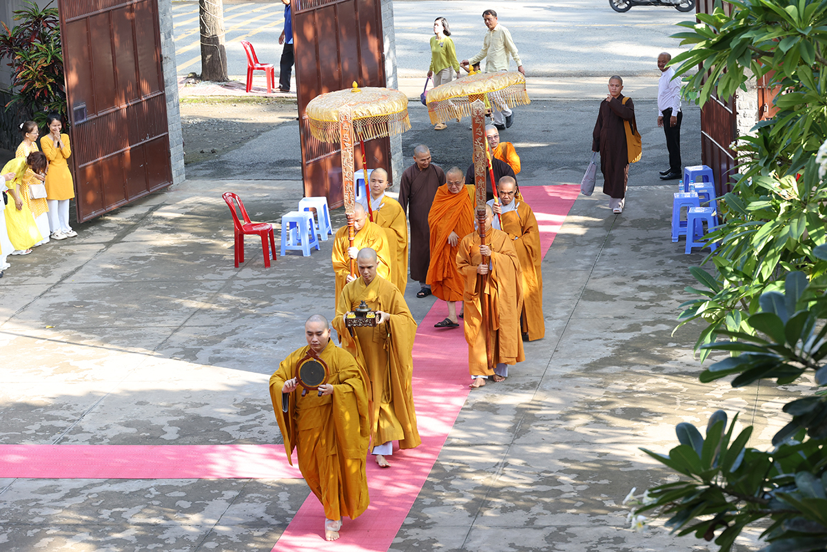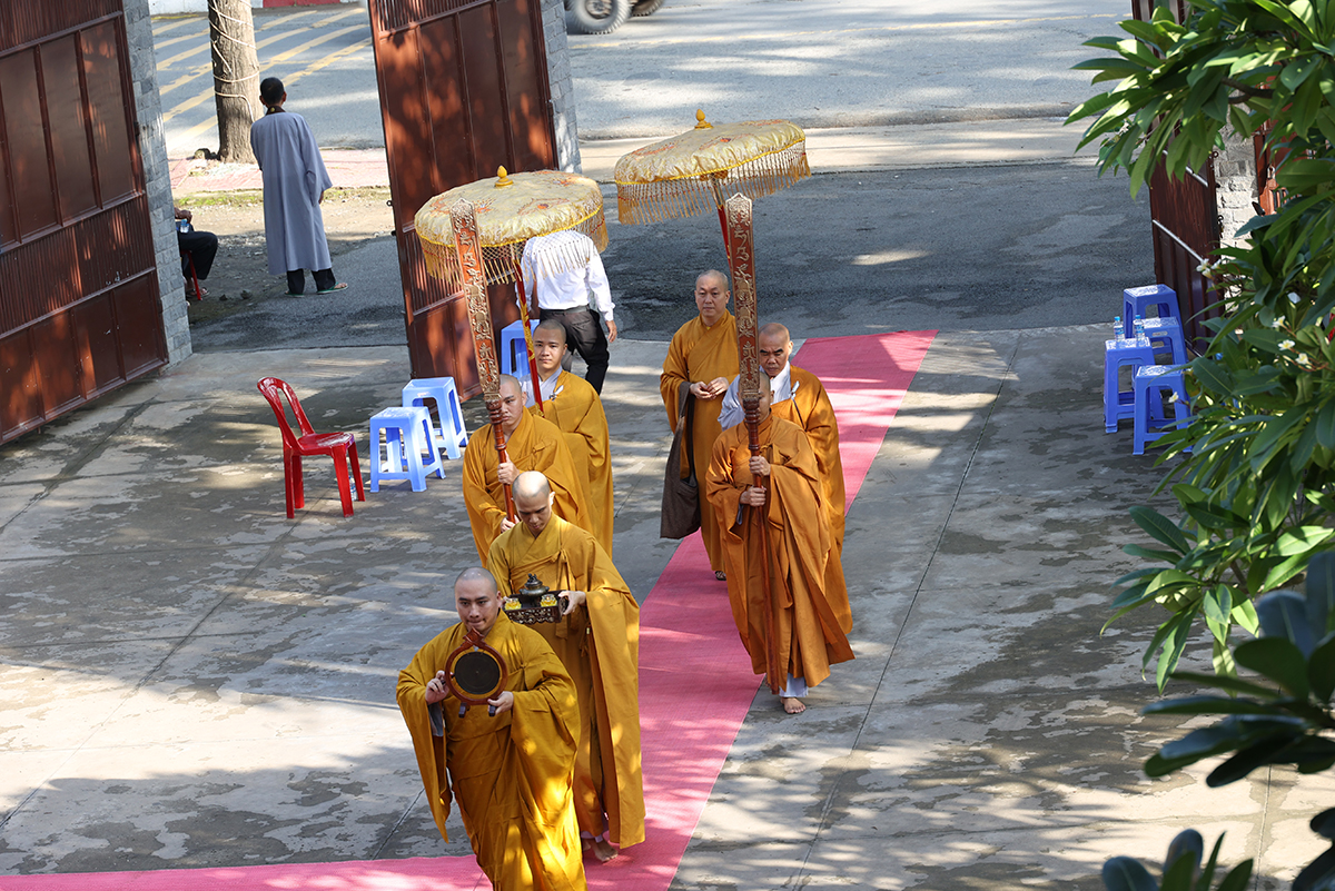 Phái đoàn do HT. Thích Bửu Chánh – UV Thư ký HĐTS, Phó ban Hoằng pháp TW làm Trưởng đoàn. Tháp tùng phái đoàn có: TT. Thích Thiện Quý – UV HĐTS, Phó ban Hoằng pháp TW; TT. Thích Thiện Thuận – UV HĐTS, Phó ban Kinh tế Tài chính TW; TT. Thích Tuệ Hải – Phó ban Kinh tế Tài chính TW; ĐĐ. Thích Minh Phú – UV HĐTS, Phó ban Kinh tế Tài chính TW; Chư tôn đức Ban Hoằng pháp TƯ, Ban Kinh tế Tài chính TƯ.