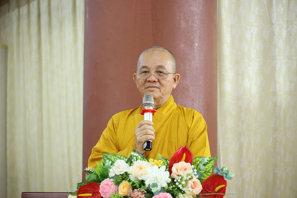 Đại diện đoàn Trung ương GHPGVN, HT. Thích Bửu Chánh phát biểu tại buổi lễ. Hòa thượng tán dương tinh thần an cư kiết hạ của toàn thể chư hành giả an cư đã tạm gác công việc Phật sự để tập trung về một trú xứ tu học, trau dồi giới định tuệ. Hòa thượng nói sơ lược về Bát Chánh Đạo với mong muốn tất cả mọi người thực hiện đúng đắn lời Phật dạy. Sau cùng, Hòa thượng gởi lời chúc “sống lâu, sắc tốt, an vui, sức khỏe, trí tuệ” đến toàn thể hội trường.