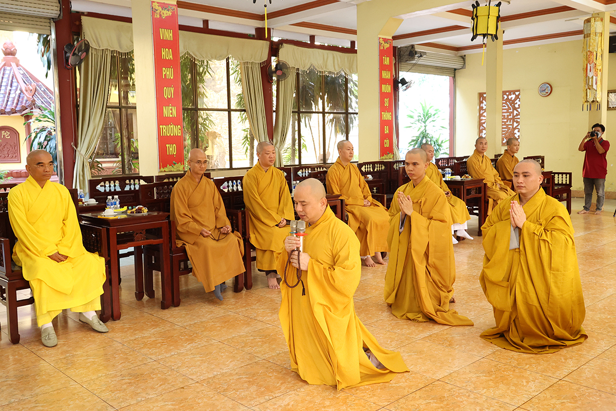TT. Thích Thiện Thuận đã thay mặt chư tôn đức trong phái đoàn Ban Hoằng pháp và Ban Kinh tế Tài chính TƯ tác bạch cúng dường 12 trú xứ an cư kết hạ tỉnh Long An.