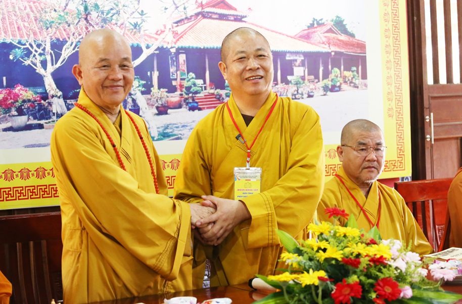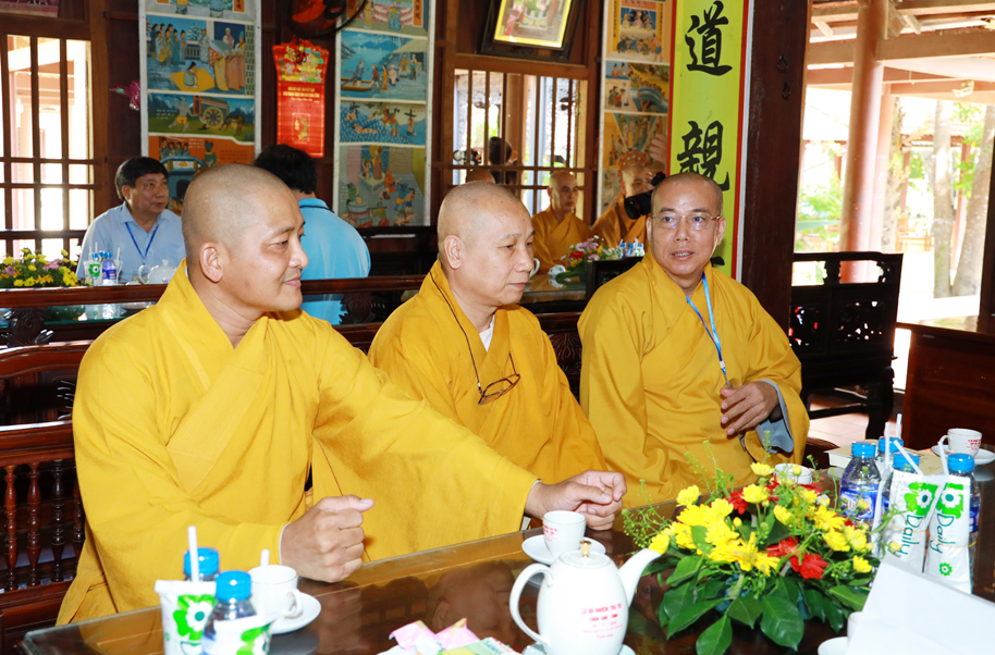 Về phía BTS GHPGVN tỉnh Long An tiếp đón đoàn có: Hoà thượng Thích Minh Thiện – UV HĐTS, Phó ban Hoằng pháp TW, Trưởng BTS GHPGVN tỉnh Long An; Chư tôn đức Phó Ban Trị sự GHPGVN tỉnh Long An: Thượng toạ Thích Minh Thọ, Thượng toạ Thích Đức Hoàng, Thượng toạ Thích Lệ Trí, Đại đức Thích Lệ Duyên, Đại đức Thích Lệ Ngôn; Sư cô Thích nữ Bảo Giác – Trưởng Ban Văn hoá GHPGVN tỉnh Long An; cùng chư Tôn đức trong Thường trực BTS GHPGVN tỉnh Long An, thành phố Tân An, huyện Cần Giuộc; chư Tôn đức Tăng, Ni thành viên Ban Văn hóa Phật giáo tỉnh Long An.