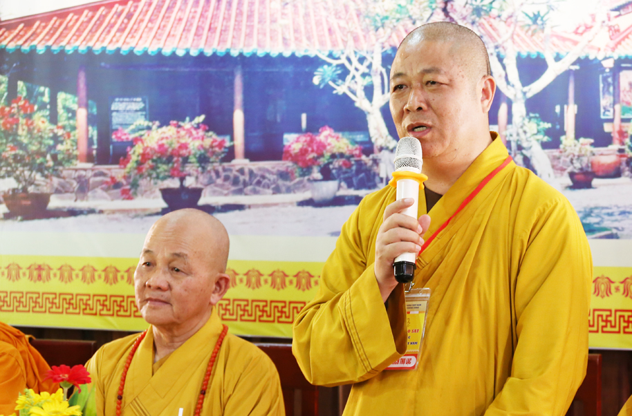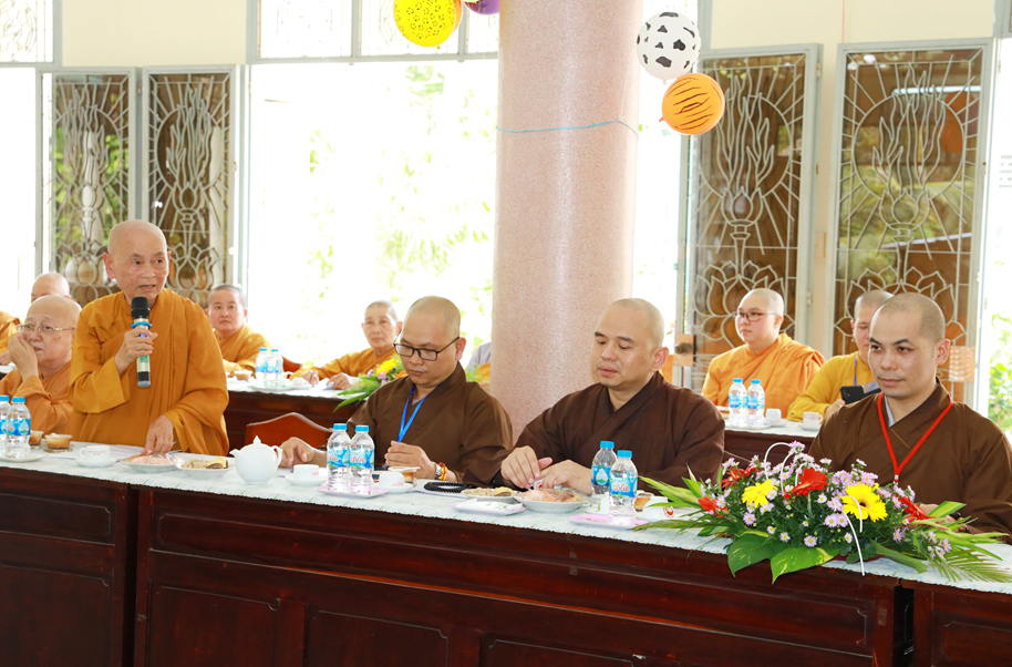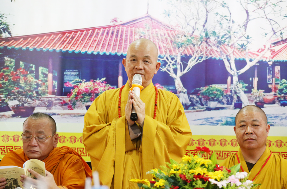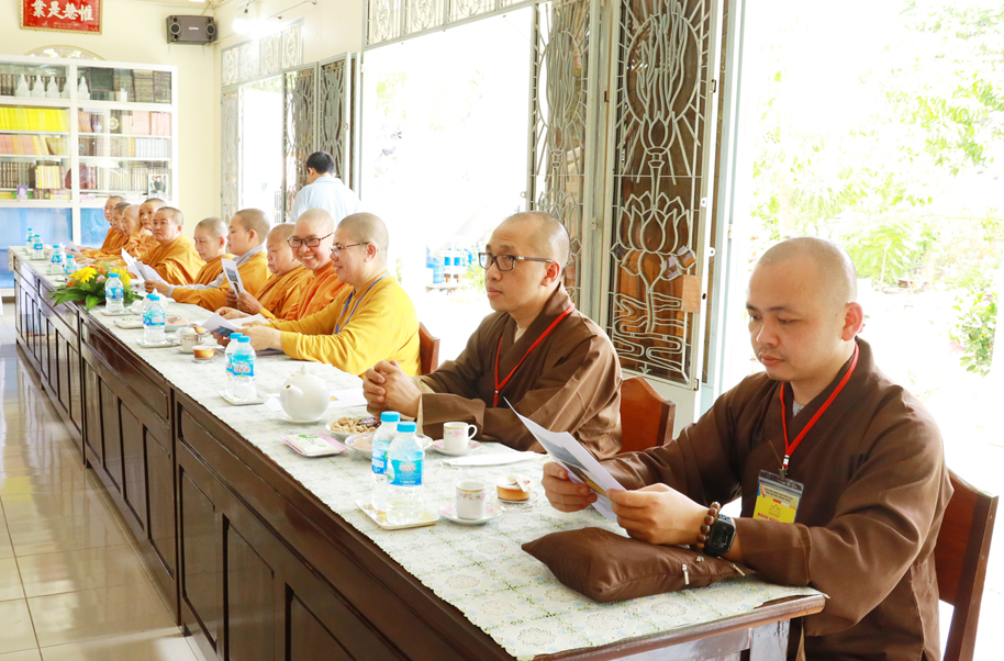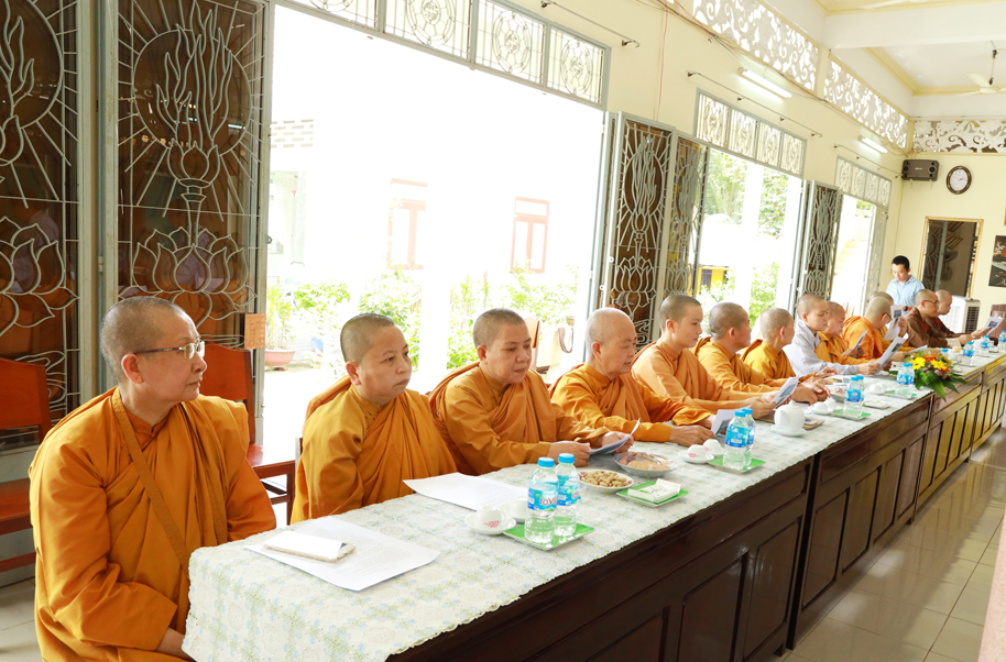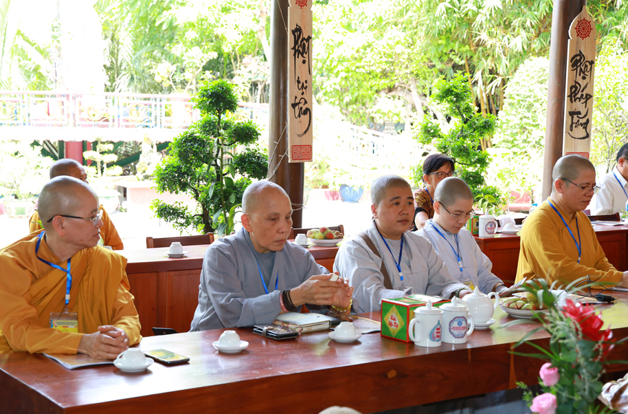 Hòa thượng Trưởng BTS GHPGVN tỉnh Long An có lời phát biểu. Hòa thượng tỏ lòng cảm kích, tán dương công đức của phái đoàn Ban Văn hóa TW đối với chuyến công tác lần này. Đây là việc làm góp phần tạo điều kiện để Phật giáo địa phương có điều kiện thống kê, bảo tồn các di sản Phật giáo được tốt hơn. Hòa thượng tin tưởng sự phối hợp của Ban Văn hóa TW và Phật giáo 63 tỉnh thành sẽ góp phần tạo kết quả tốt đẹp để GHPGVN tiếp nối trọng trách thống nhất tổ chức Phật giáo về tông chỉ hoạt động, tư tưởng, hành động và đặc biệt là kế thừa sự nghiệp tiền nhân, định hướng tương lai. Cuối lời, Hòa thượng gửi lời chúc sức khỏe, đại kiết tường đến phái đoàn.
