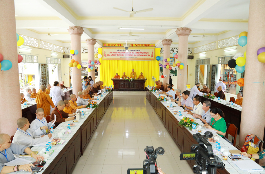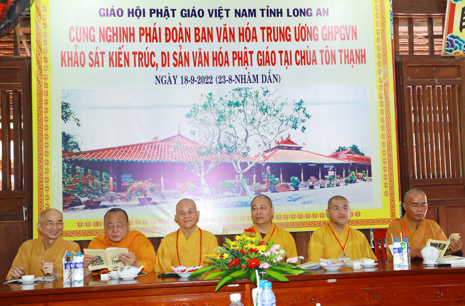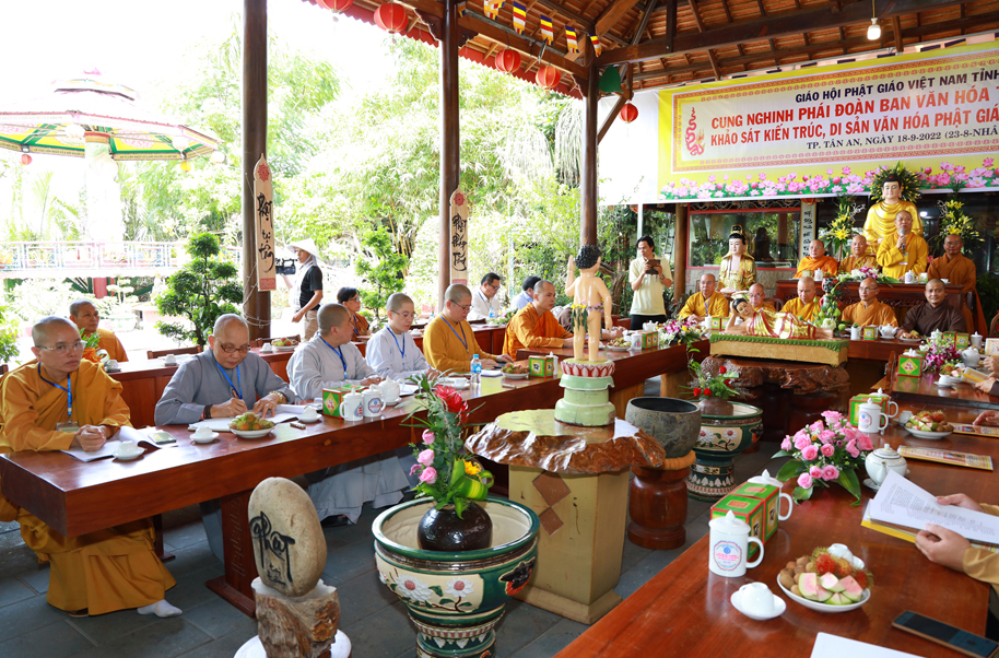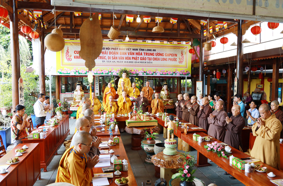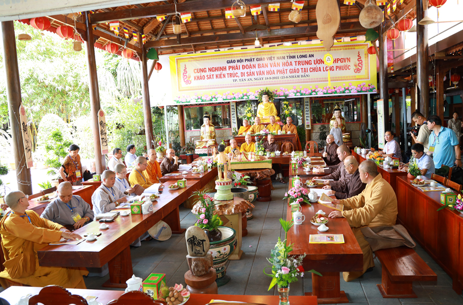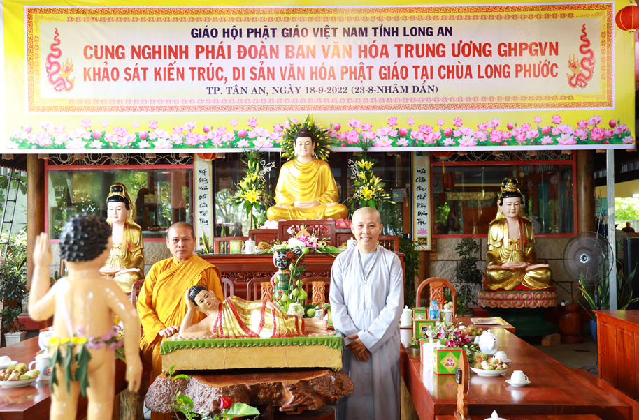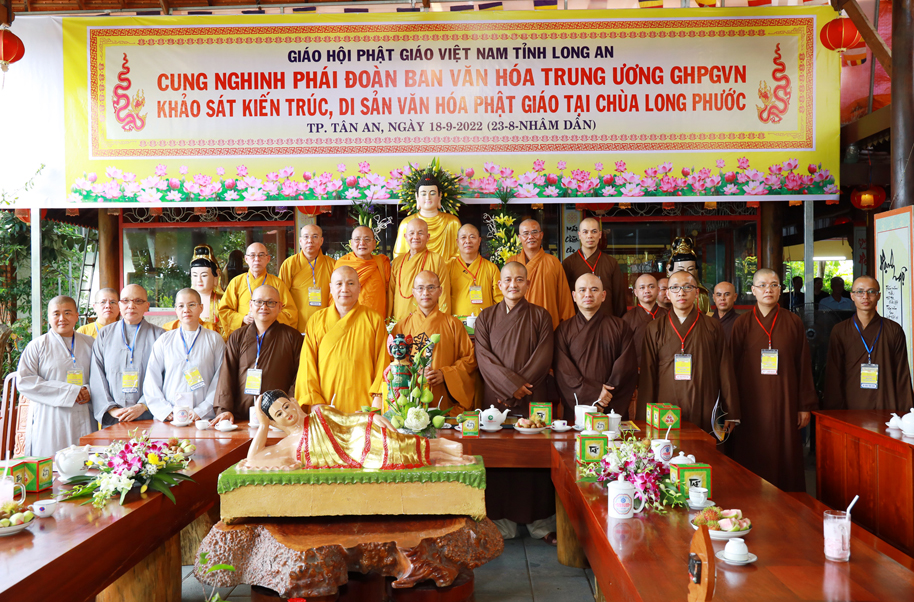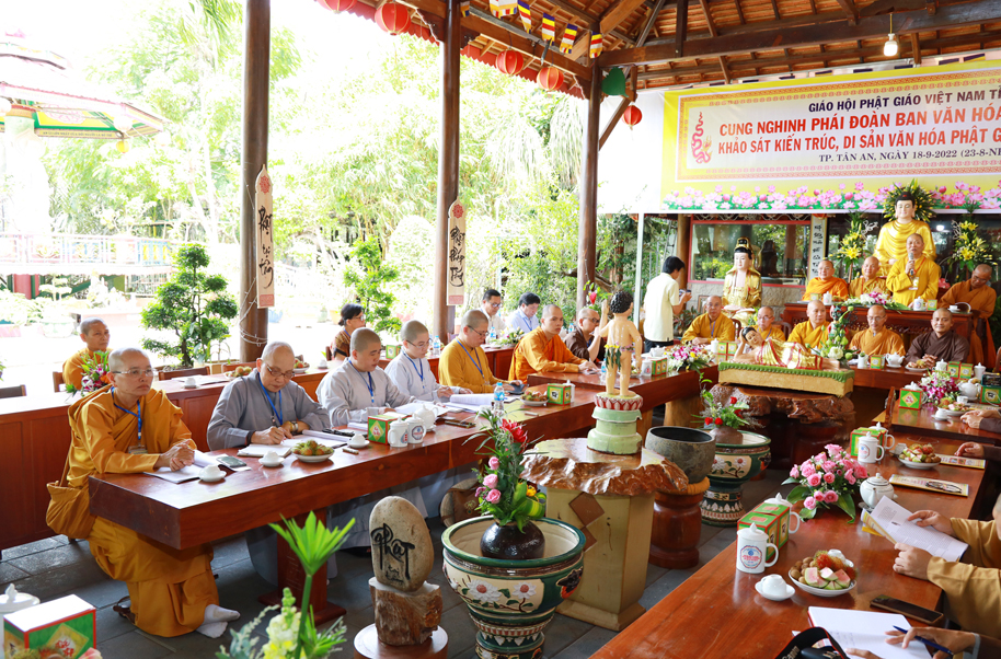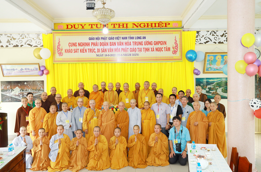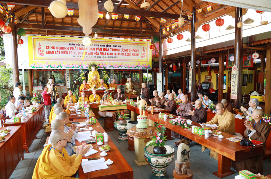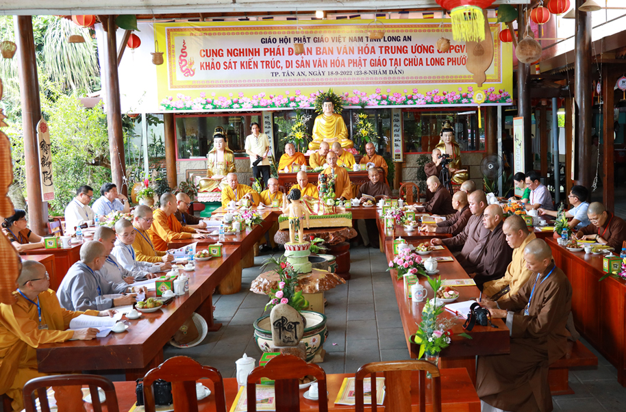 Sáng ngày 18 tháng 9 năm 2022 (nhằm ngày 23/08 năm Nhâm Dần), Ban Trị sự GHPGVN tỉnh Long An trang nghiêm cung đón phái đoàn Ban Văn hóa Trung ương (BVHTƯ) GHPGVN; Viện Nghiên cứu Tôn giáo (thuộc Viện Hàn lâm KHXHVN); Viện Bảo tồn di tích, Bảo tàng Lịch sử Quốc gia VN cùng các cơ quan nghiên cứu đến khảo sát “Kiến trúc Phật giáo Việt Nam: Thống nhất trong đa dạng”.