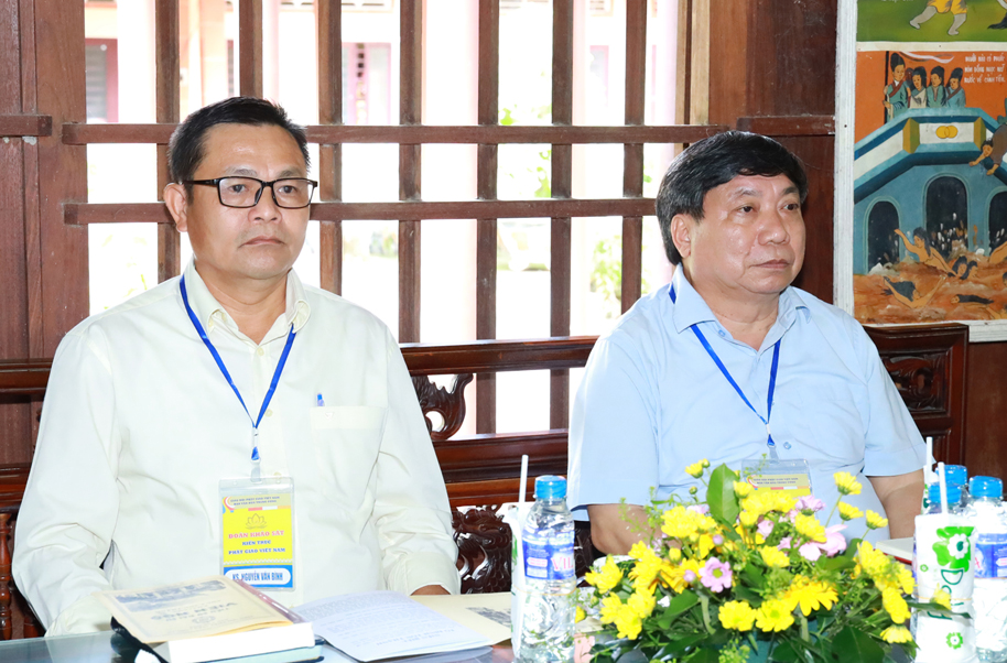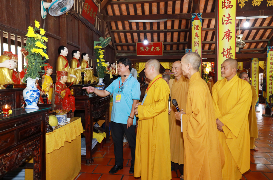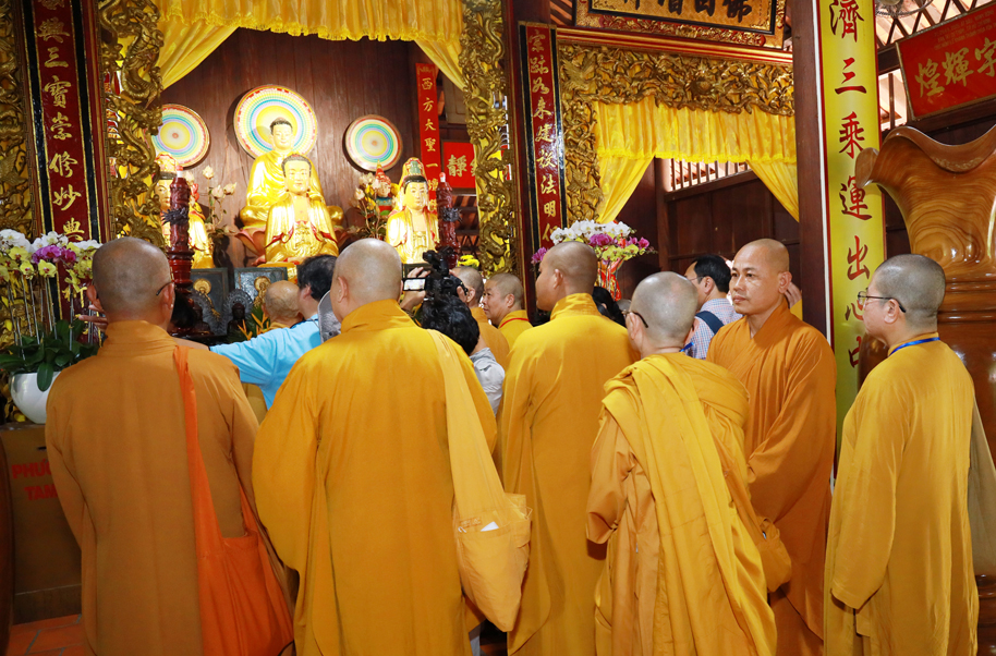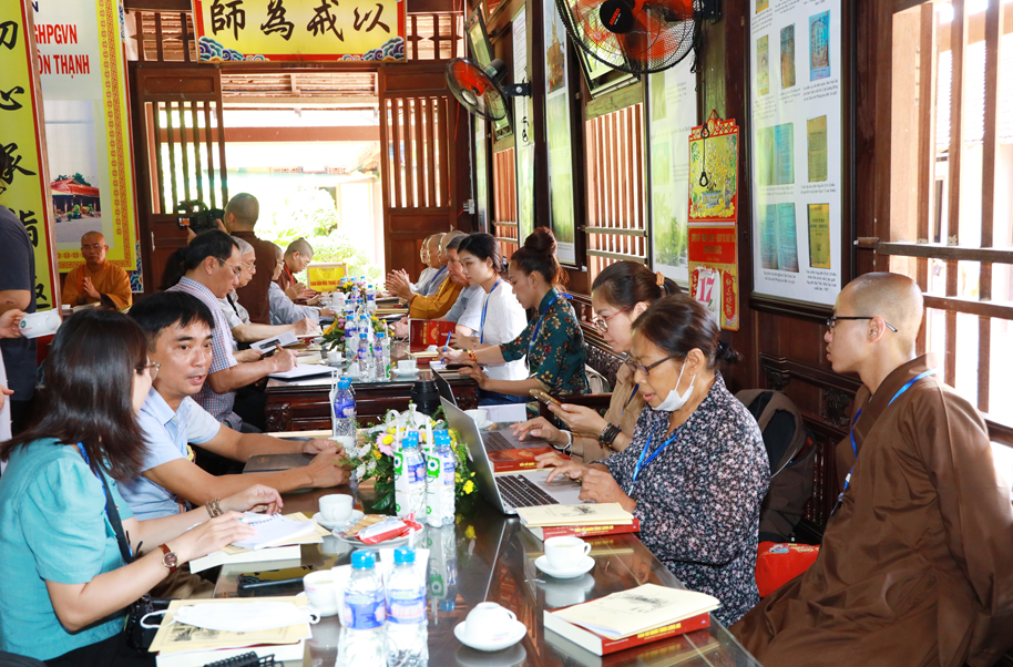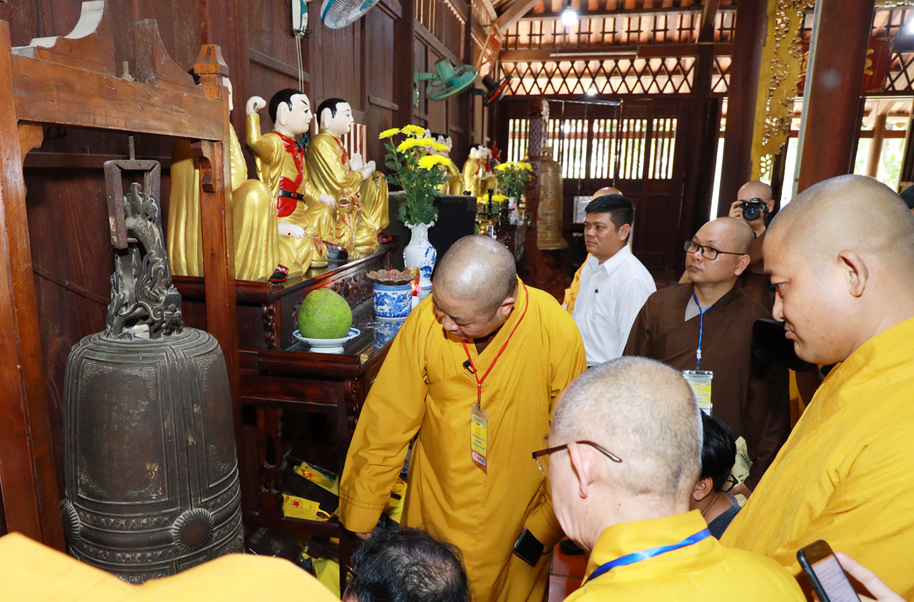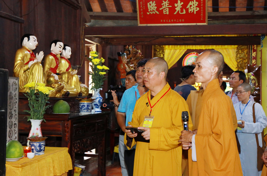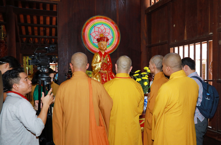 Phái đoàn do TT.Thích Thọ Lạc – UV Thư ký HĐTS, Trưởng ban Văn hóa (BVH) TƯ GHPGVN làm Trưởng đoàn; HT.Bửu Chánh – UVTT HĐTS, Phó trưởng Ban Thường trực BVH TƯ; TT.Thích Minh Tiến – UV HĐTS, Phó trưởng BVH TƯ; TT.Thích Giác Nghi – UV HĐTS, Trưởng BTS Phật giáo tỉnh Bạc Liêu; chư Tôn đức Tăng, Ni trong BVH TƯ và các tỉnh thành cùng các nhà khoa học: PGS.TS Chu Văn Tuấn – Viện trưởng Viện Nghiên cứu Tôn giáo (Viện Hàn lâm KHXHVN); TS.Tạ Quốc Khánh – Trưởng phòng Nghiên cứu Di tích và Bảo tồn Di tích (Viện Bảo tồn Di tích); Ths.Nguyễn Thị Thu Hoan – PGĐ Bảo tàng Lịch sử VN; Ths.KTS Nguyễn Minh Quang – Giám đốc CTCP Văn hoá Truyền thống Kim Liên; PGS.TS Vương Ngọc Lưu – nguyên Hiệu trưởng Trường Đại học Kiến trúc Hà Nội; PGS.TS Nguyễn Hồng Dương – nguyên Viện trưởng Viên Nghiên cứu Tôn giáo cùng các nhà nghiên cứu, các nhà khoa học cùng tháp tùng đoàn.