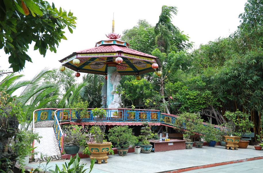 Điểm đến thứ 2 là Chùa Long Phước. Đây là ngôi cổ tự được bài trí theo hệ Tam giáo đồng quy có kiến trúc giao thoa giữa các hệ Bắc truyền, Nam truyền.