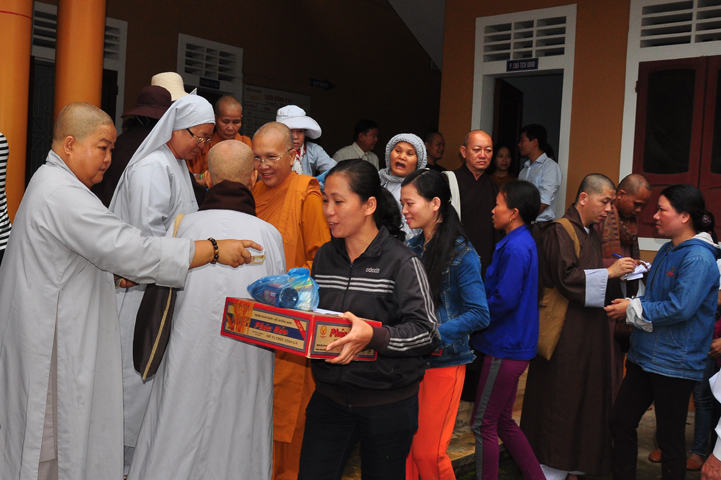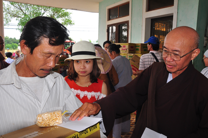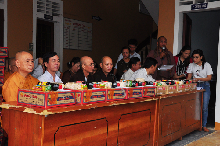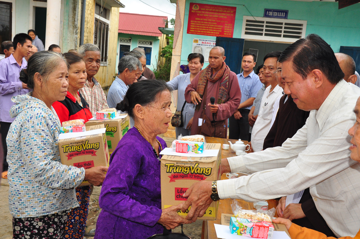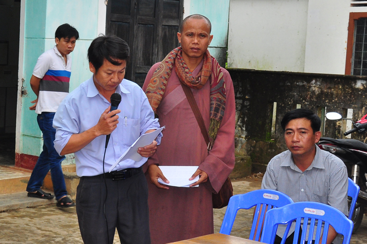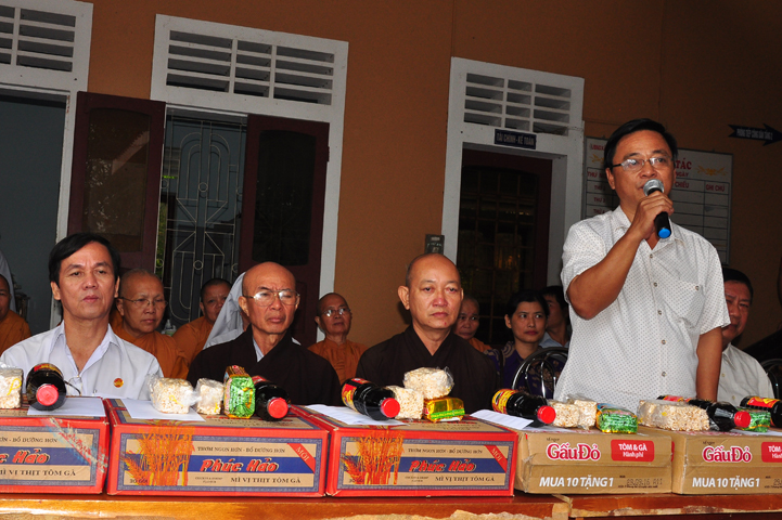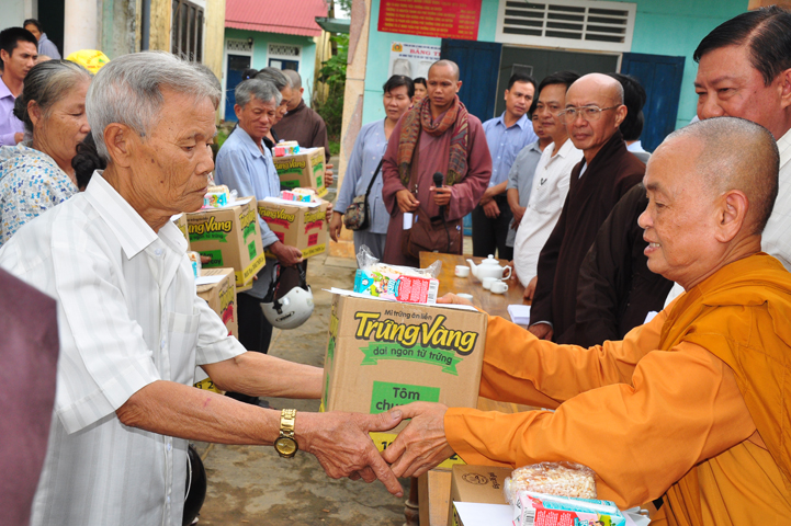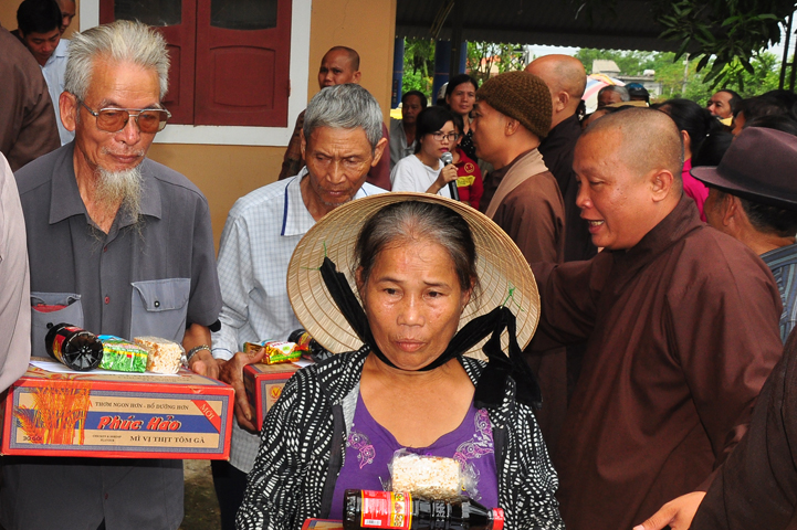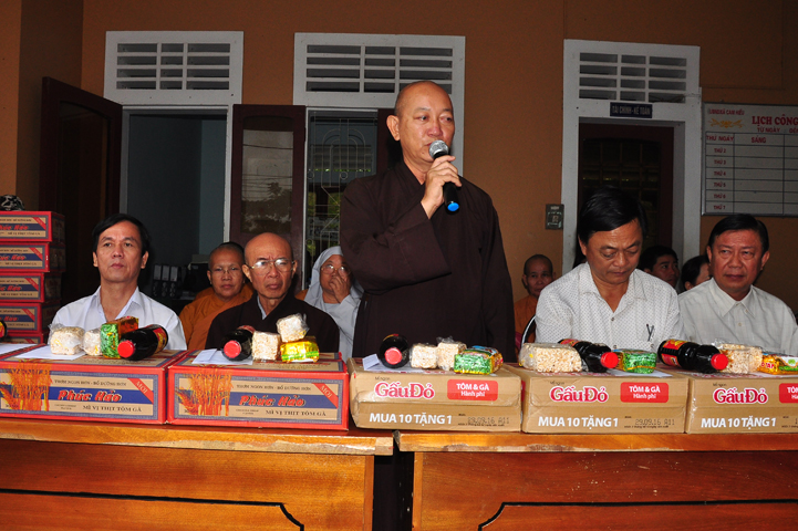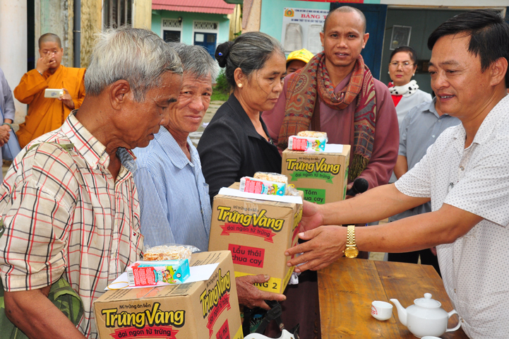 Tại buổi lễ Thượng tọa Thích Quảng Tâm đã có lời thăm hỏi ân cần và chia sẽ những mất mác to lớn đối với bà con trong cơn bão lũ. Đồng thời, Thượng tọa cũng đã cảm ơn chính quyền địa phương đã tạo điều kiện giúp đỡ cho phái đoàn trao những phần quà đến tận tay bà con. Cuối lời, Thượng tọa kính chúc bà con sớm vượt qua khó khăn, ổn định cuộc sống và kính chúc quý cấp lãnh đạo Chính Quyền hành thong mọi công việc trong cuộc sống.