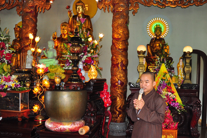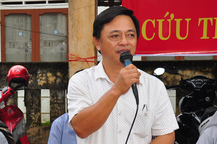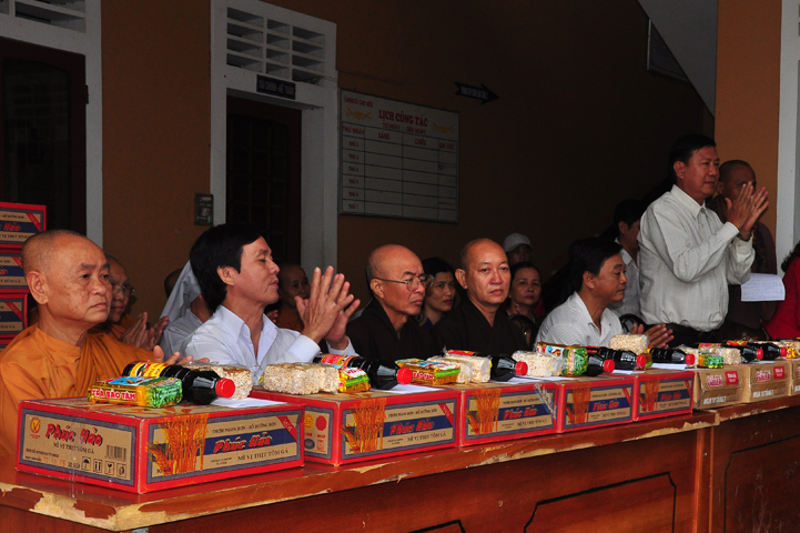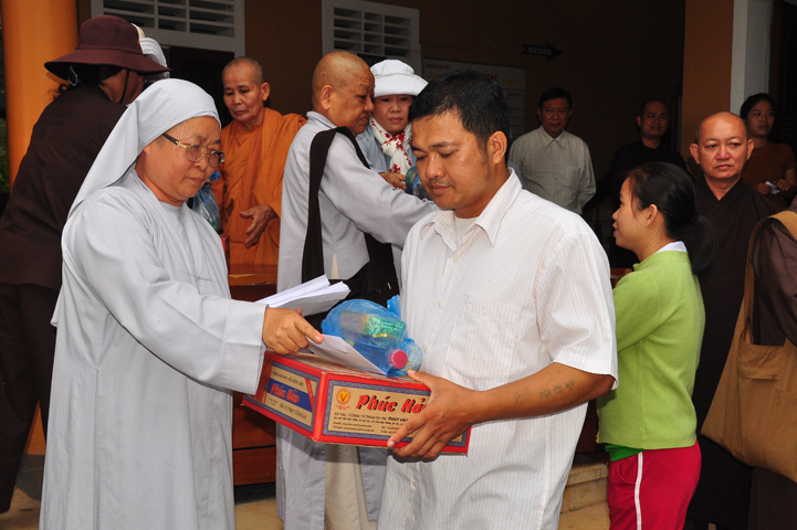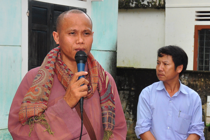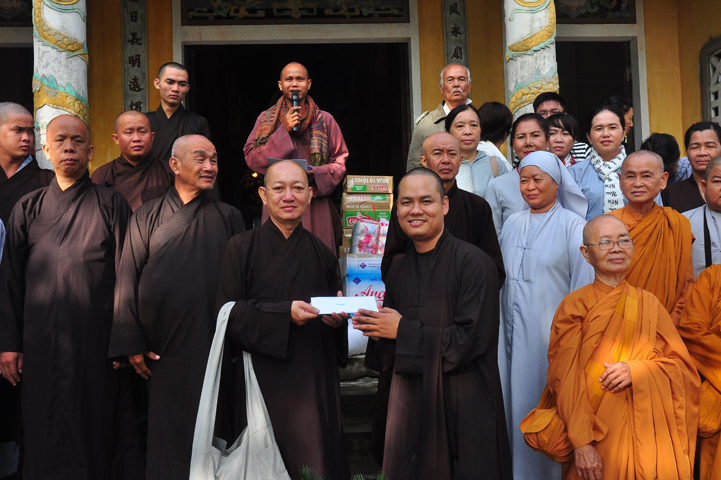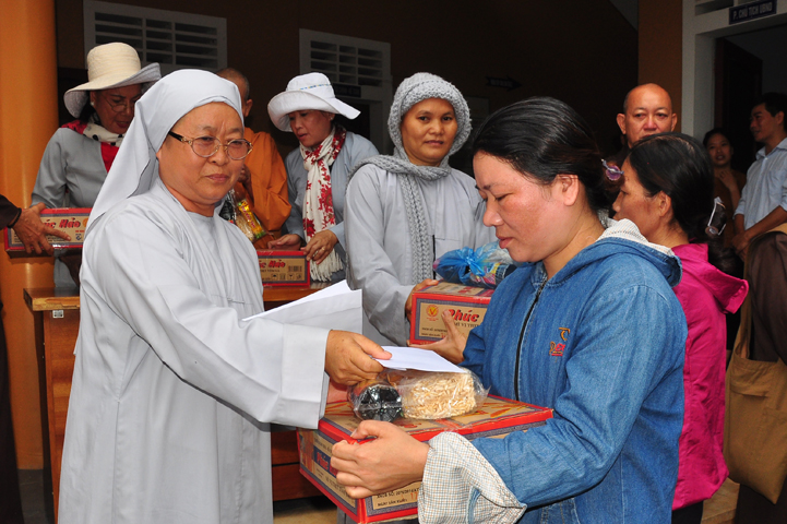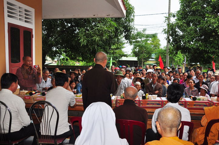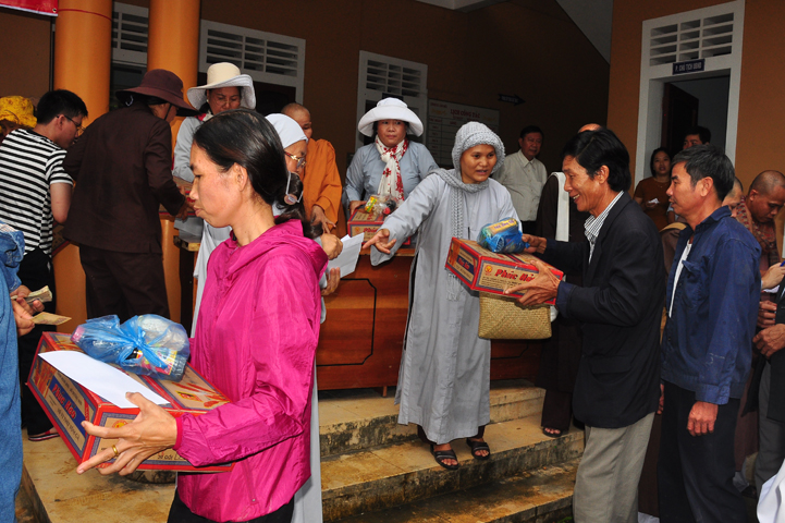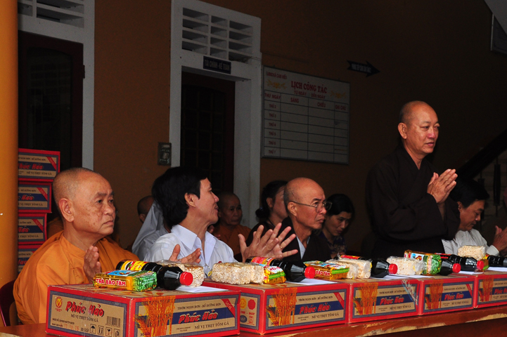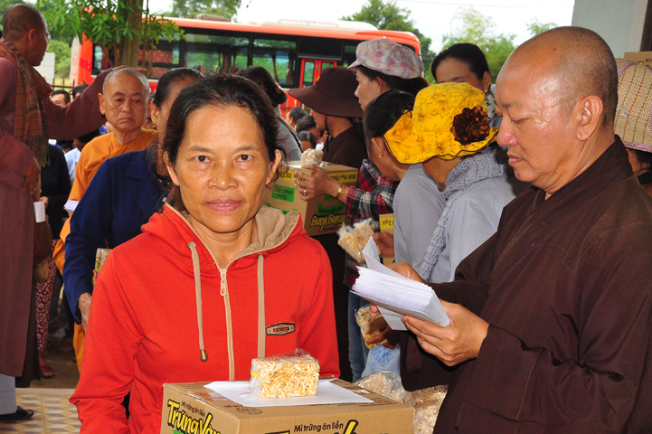 Tại buổi lễ Thượng tọa Thích Quảng Tâm đã có lời thăm hỏi ân cần và chia sẽ những mất mác to lớn đối với bà con trong cơn bão lũ. Đồng thời, Thượng tọa cũng đã cảm ơn chính quyền địa phương đã tạo điều kiện giúp đỡ cho phái đoàn trao những phần quà đến tận tay bà con. Cuối lời, Thượng tọa kính chúc bà con sớm vượt qua khó khăn, ổn định cuộc sống và kính chúc quý cấp lãnh đạo Chính Quyền hành thong mọi công việc trong cuộc sống.