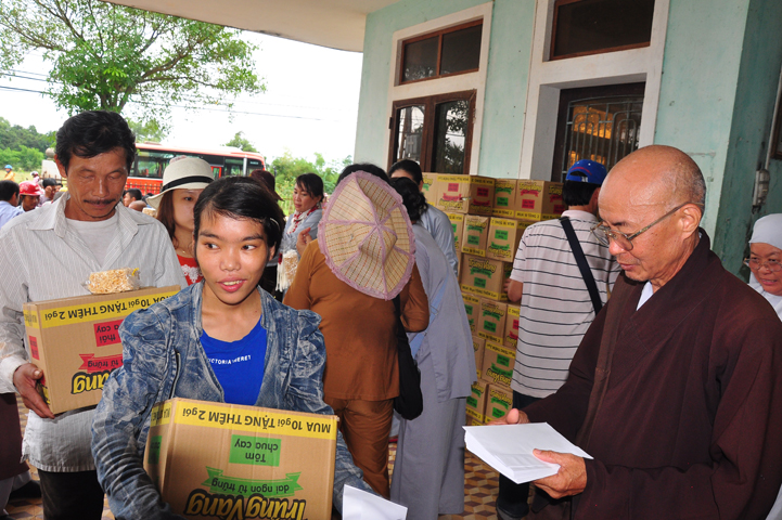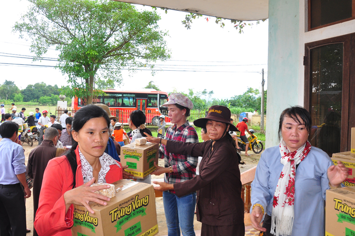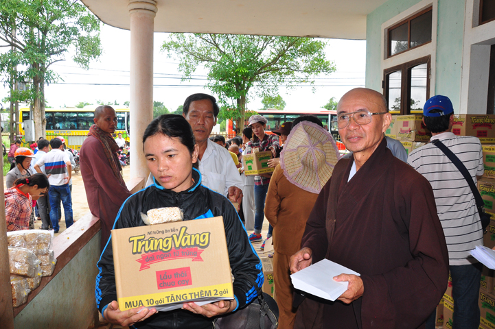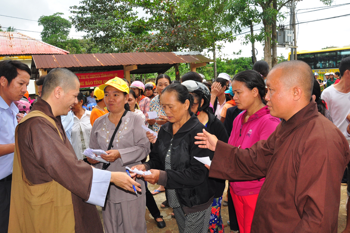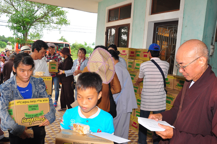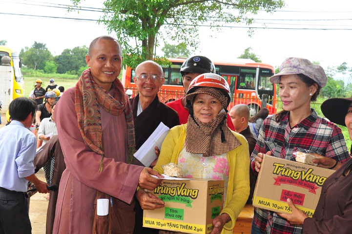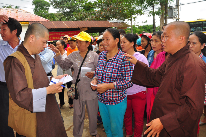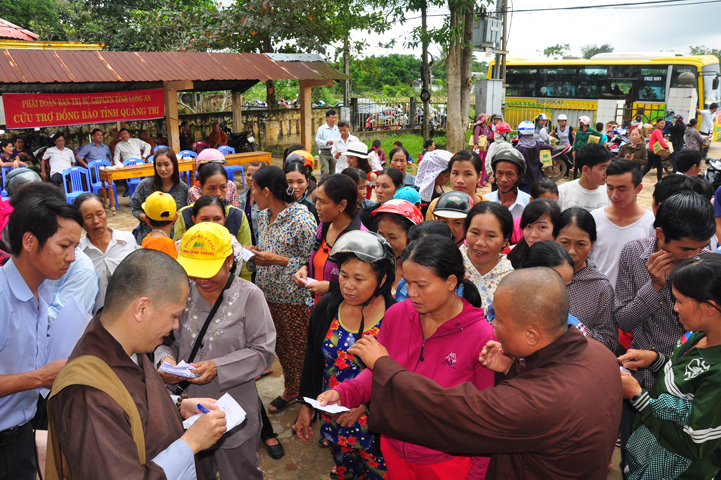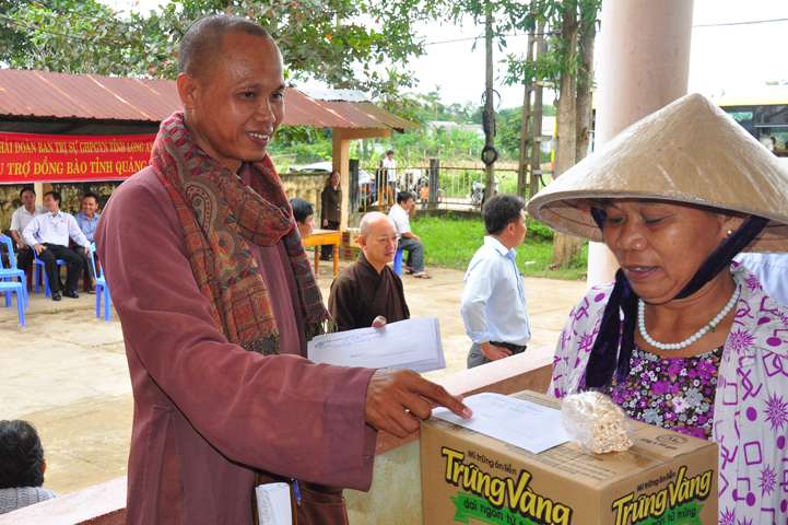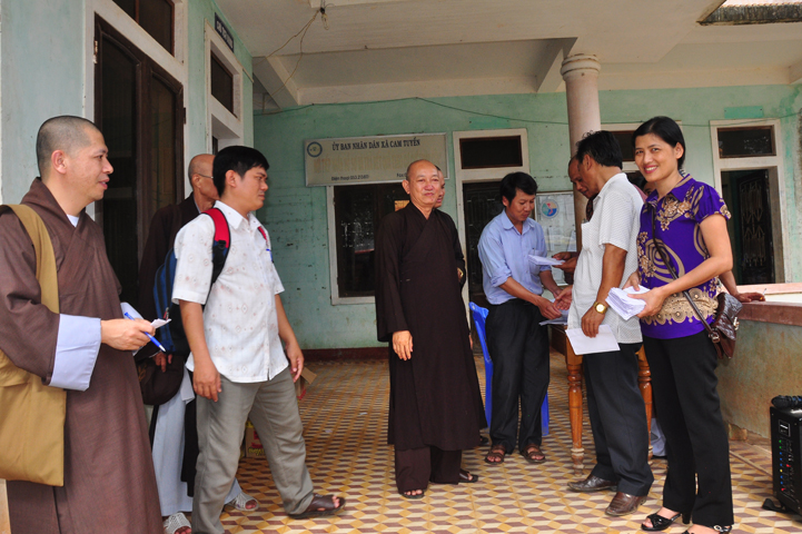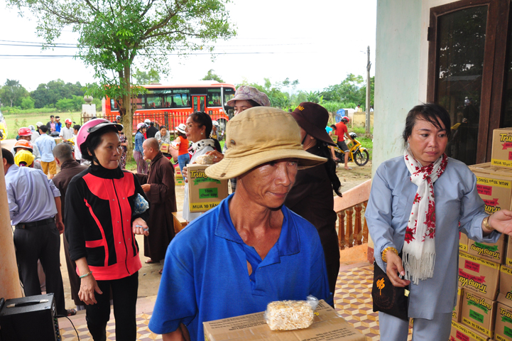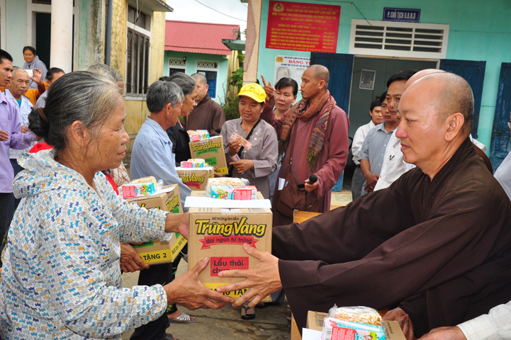 Theo lịch trình chuyến cứu trợ Miền Trung của Ban trị sự GHPGVN tỉnh Long An. Sáng nay, ngày 19/11/2016 (nhằm ngày 20/10/ Bính Thân) phái đoàn do Thượng tọa Thích Quảng Tâm- Phó Ban Trị sự kiêm Trưởng Ban Từ thiện Xã hội GHPGVN tỉnh Long An làm trưởng đoàn cùng Ni trưởng TN Gương Liên- Phó Ban Trị sự kiêm Trưởng Ban Kinh tế Tài chính; Đại đức Thích Thiện Danh- Phó Thư ký kiêm Chánh văn phòng Ban Trị sự GHPGVN tỉnh Long An; Ông Nguyễn Văn Nhạn : Phó Trưởng phòng Dân tộc Tôn giáo UBMTTQVN tỉnh Long An; Ông Lê Trường Cửu, Đại diện Ban Tôn giáo (SNV) tỉnh Long An làm phó đoàn ; Đạo hữu Lệ Kiệt- Phó Thư ký kiêm Phó Chánh văn phòng Ban Trị sự GHPGVN tỉnh Long An làm Thư ký đoàn cùng các thành viên trong đoàn đã đến phát quà 500 phần quà cho bà con. Mỗi phần quà gồm, mì nước tương, và 400 ngàn tiền mặt, tổng trị giá 250 triệu đồng tại xã Cam Hiếu và xã Cam Tuyền, huyện Cam Lộ, tỉnh Quãng Trị.