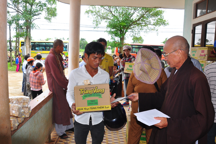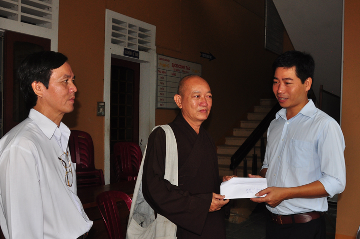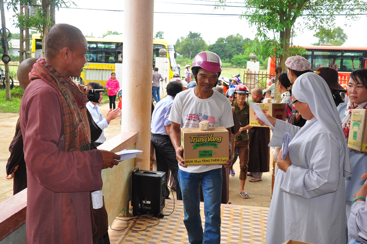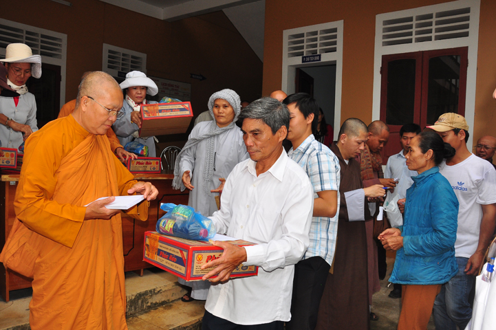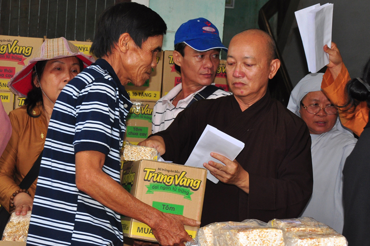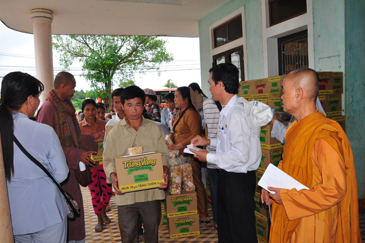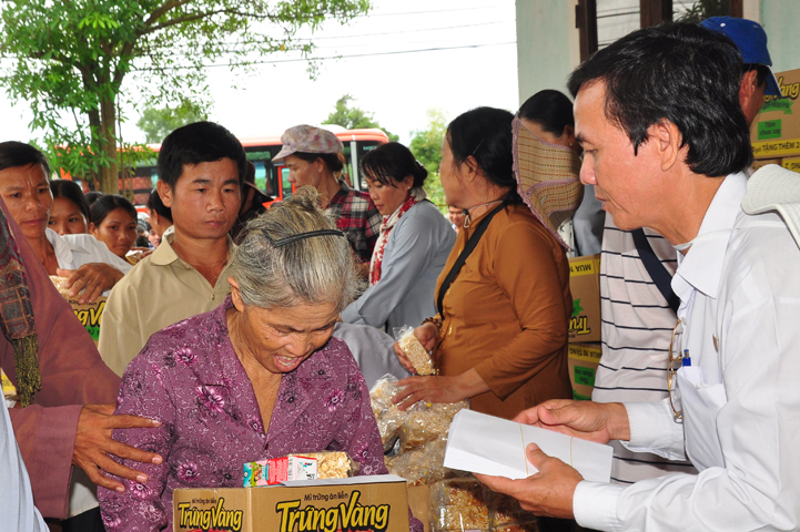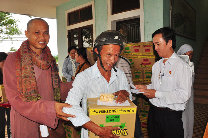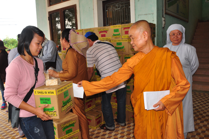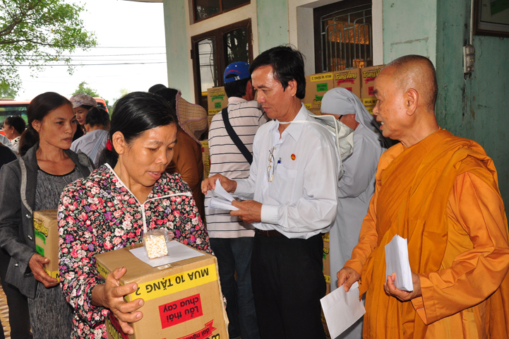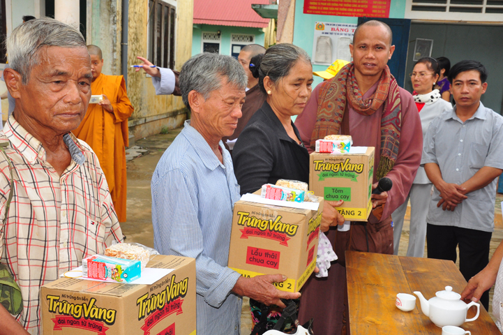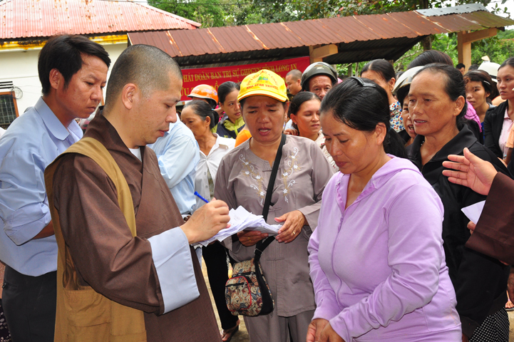 Theo lịch trình chuyến cứu trợ Miền Trung của Ban trị sự GHPGVN tỉnh Long An. Sáng nay, ngày 19/11/2016 (nhằm ngày 20/10/ Bính Thân) phái đoàn do Thượng tọa Thích Quảng Tâm- Phó Ban Trị sự kiêm Trưởng Ban Từ thiện Xã hội GHPGVN tỉnh Long An làm trưởng đoàn cùng Ni trưởng TN Gương Liên- Phó Ban Trị sự kiêm Trưởng Ban Kinh tế Tài chính; Đại đức Thích Thiện Danh- Phó Thư ký kiêm Chánh văn phòng Ban Trị sự GHPGVN tỉnh Long An; Ông Nguyễn Văn Nhạn : Phó Trưởng phòng Dân tộc Tôn giáo UBMTTQVN tỉnh Long An; Ông Lê Trường Cửu, Đại diện Ban Tôn giáo (SNV) tỉnh Long An làm phó đoàn ; Đạo hữu Lệ Kiệt- Phó Thư ký kiêm Phó Chánh văn phòng Ban Trị sự GHPGVN tỉnh Long An làm Thư ký đoàn cùng các thành viên trong đoàn đã đến phát quà 500 phần quà cho bà con. Mỗi phần quà gồm, mì nước tương, và 400 ngàn tiền mặt, tổng trị giá 250 triệu đồng tại xã Cam Hiếu và xã Cam Tuyền, huyện Cam Lộ, tỉnh Quãng Trị.