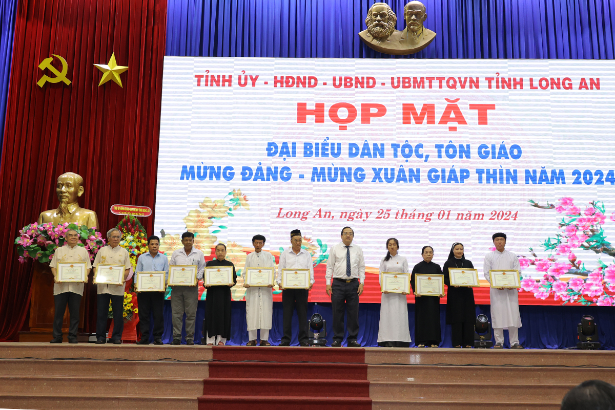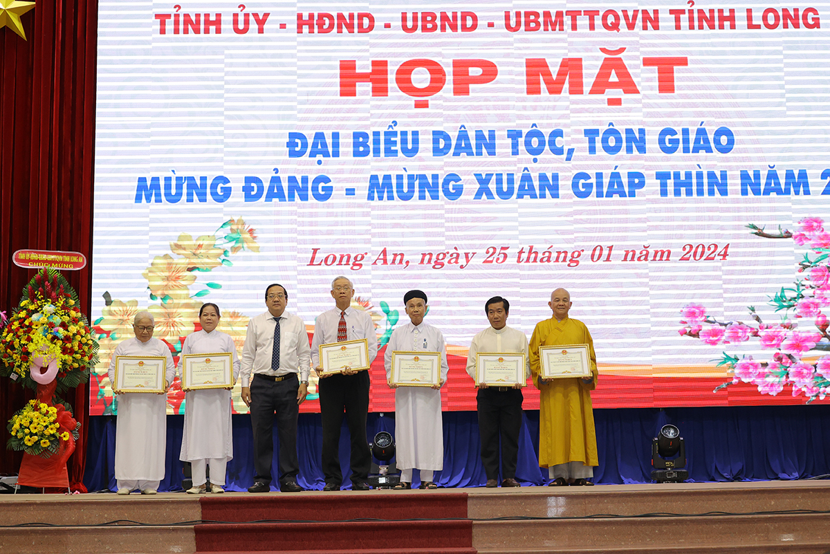 Dịp này, có 01 tập thể Ủy Ban Đoàn Kết Công Giáo Tỉnh Long An Được nhận bằng khen của Ban Tuyên giáo Trung ương do có thành tích tiêu biểu trong học tập, làm theo tư tưởng, đạo đức, phong cách Hồ Chí Minh; 06 tập thể và 11 cá nhân khác được nhận bằng khen của Chủ tịch UBND tỉnh vì có thành tích tiêu biểu trong phong trào thi đua yêu nước, sống tốt đời đẹp đạo và thực hiện công tác xã hội trên địa bàn tỉnh./.