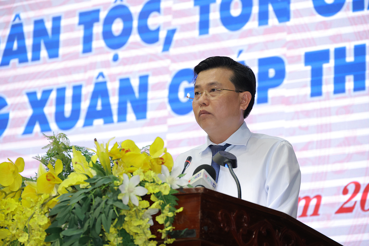 Phát biểu tại buổi họp mặt, Ông Phó Bí thư Thường trực Tỉnh ủy, Trưởng Đoàn ĐBQH tỉnh – Nguyễn Thanh Hải ghi nhận sự đóng góp tích cực của đồng bào các dân tộc, chức sắc, chức việc và đồng bào tín đồ các tôn giáo trong khối đại đoàn kết toàn dân tộc tỉnh nhà; điều đó thể hiện sự gương mẫu, mối quan tâm và trách nhiệm của các tổ chức tôn giáo, các vị chức sắc, chức việc và nhà tu hành đã nhiệt tình tham gia tuyên truyền, vận động đồng bào tín đồ tích cực học tập, lao động, sản xuất, thực hành tiết kiệm;tham gia vào các phong trào thi đua yêu nước và thực hiện tốt nghĩa vụ công dân đối với sự nghiệp phát triển toàn diện của tỉnh trong khối đại đoàn kết toàn dân tộc vì sự nghiệp xây dựng và bảo vệ Tổ quốc.