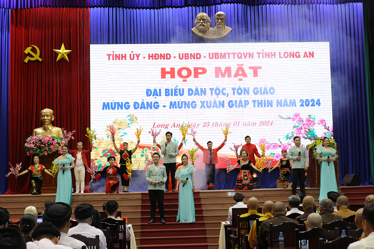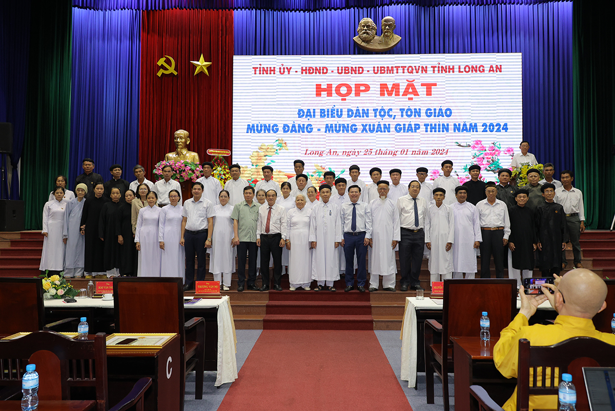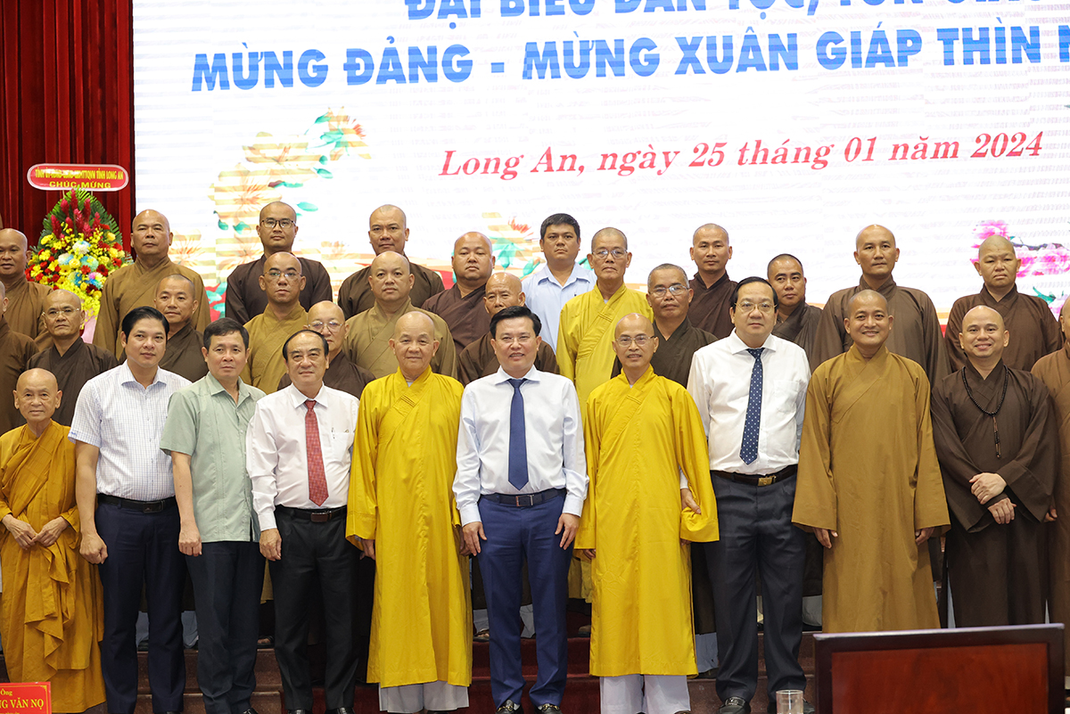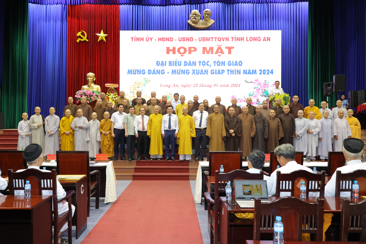 Sáng ngày 25/01/2024, Ban Trị sự GHPGVN tỉnh Long An tham dự họp mặt Đại biểu Dân tộc, Tôn giáo mừng Đảng, mừng Xuân Giáp Thìn năm 2024 do Tỉnh ủy, HĐND, UBND, Ủy ban MTTQ Việt Nam tỉnh tổ chức.