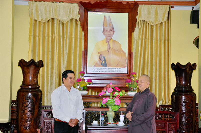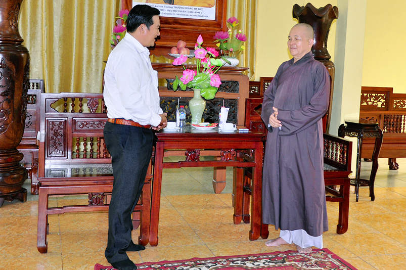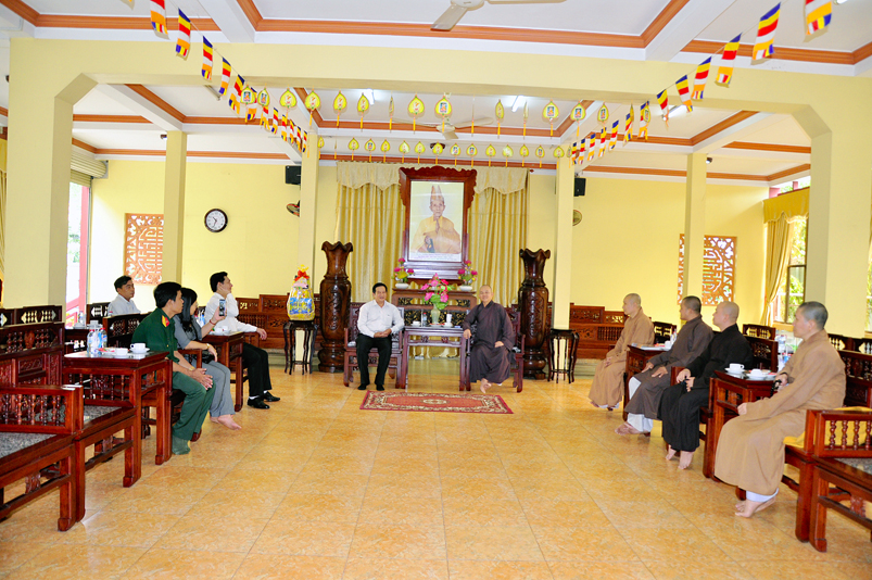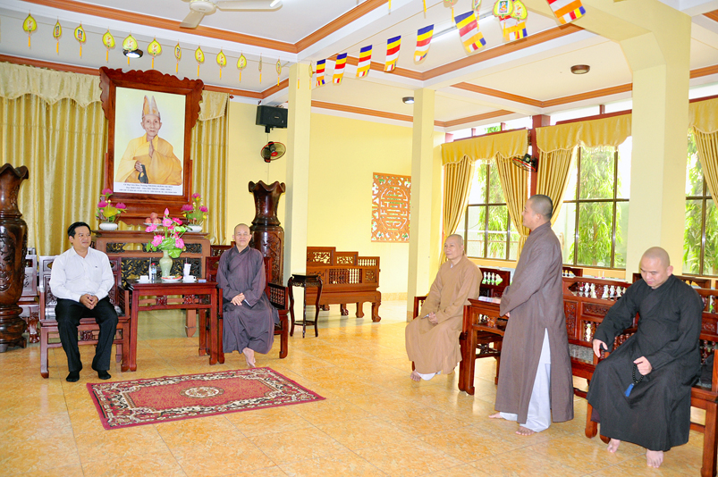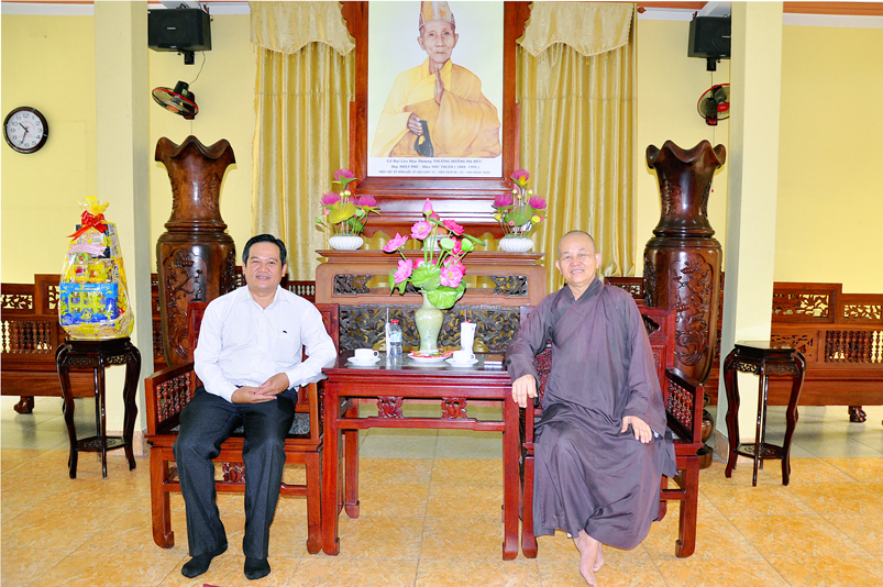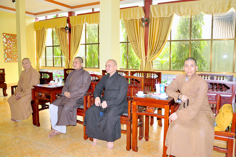 Tiếp đón phái đoàn HT. Thích Minh Thiện- Uỷ viên HĐTSTƯ, Phó ban Hoằng pháp trung ương, Trưởng Ban trị sự GHPGVN tỉnh Long An; ĐĐ. Thích Đức Hoàng- Phó Ban trị sự GHPGVN tỉnh Long An; ĐĐ. Thích Lệ Duyên- Chánh thư ký Ban trị sự GHPGVN tỉnh Long An; Đ Đ. Thích Lệ Ngôn- Trưởng ban Hoằng pháp GHPGVN tỉnh Long An.