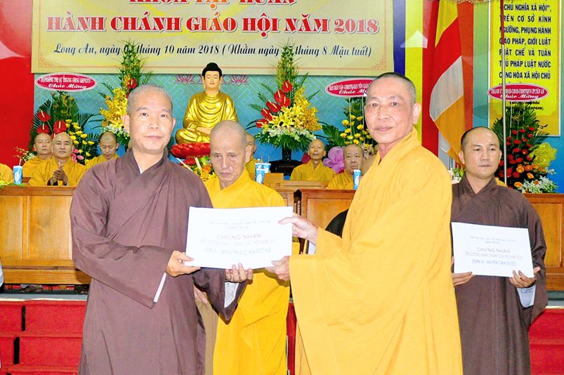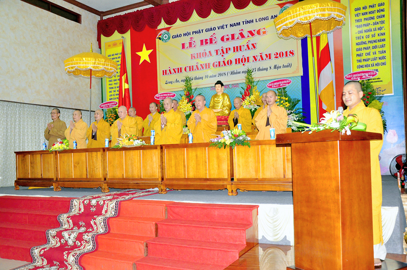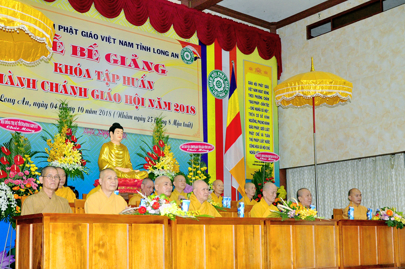 Chiều ngày 4 tháng 10 năm 2018 (24/8/Mậu Tuất), Ban Trị sự GHPGVN tỉnh Long An long trọng tổ chức Lễ bế mạc Khóa tập huấn Hành chánh Giáo hội năm 2018.