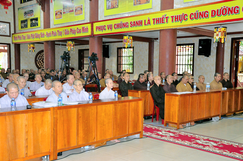 Hòa thượng mong mỏi chư Tăng Ni là người làm công tác Giáo hội, cần phải luôn un đúc hai lý tưởng: thứ nhất là chuyên tâm tu học đem lý tưởng phụng sự, đem lý tưởng bồ tát hạnh vào đời. Trong thời kỳ hội nhập, Tăng Ni cần nắm vững đạo lý, giáo nghĩa duyên sinh, vô ngã, khéo léo vận dụng vào công tác Giáo hội, công tác hoằng pháp, phù hợp với thời đại văn minh, ứng dụng những công nghệ thông tin vào công việc hoằng pháp, nêu cao hạnh đức của người xuất gia, của người Phật tử đến với cộng đồng xã hội. Đồng thời giúp chúng ta quản lý, điều hành công tác hành chánh theo xu hướng văn minh của thời đại kỷ thuật số hoá. Ứng dụng công nghệ văn minh của thời đại phục vụ công tác . Sau khoá học này chúng ta có tài liệu trong tay tiếp tục nghiên cứu bằng tinh thần “ Phụng sự chúng sinh cúng dường chư Phật” bằng tinh thần phụng sự “Đạo pháp- Dân tộc”. Làm công tác giáo hội ngoài phải rèn luyện kỷ năng của mình vì làm công tác giáo hội đòi hỏi sự hy sinh, dấn thân