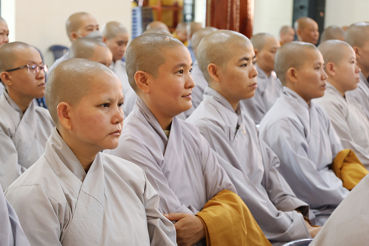 Sau phần báo cáo công tác tổ chức, Đại đức Thích Quảng Phước, đại diện cho hành giả an cư 13 trú xứ an cư, dưới sự chứng minh của chư tôn Hòa thượng chư hành giả an cư đã thành tâm phát nguyện tinh tấn tu học, thúc liễm thân tâm trau dồi Giới- Định – Tuệ.