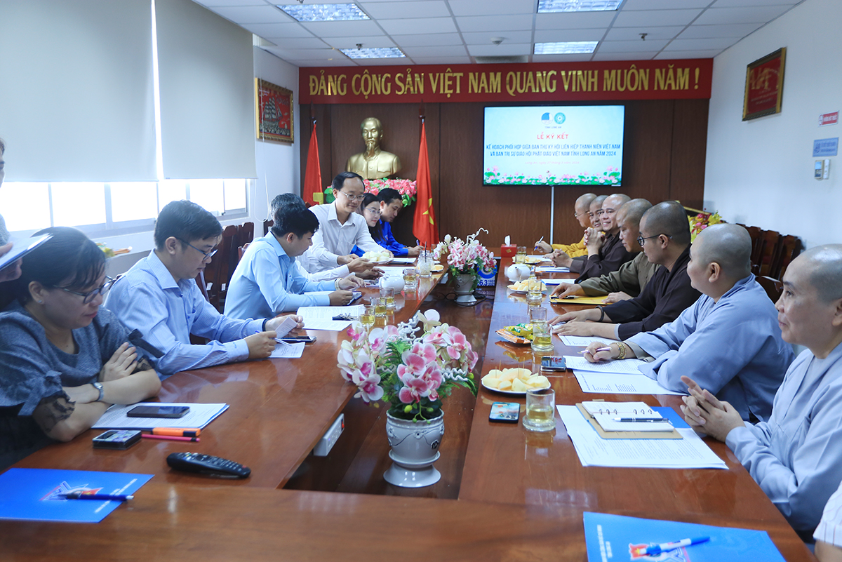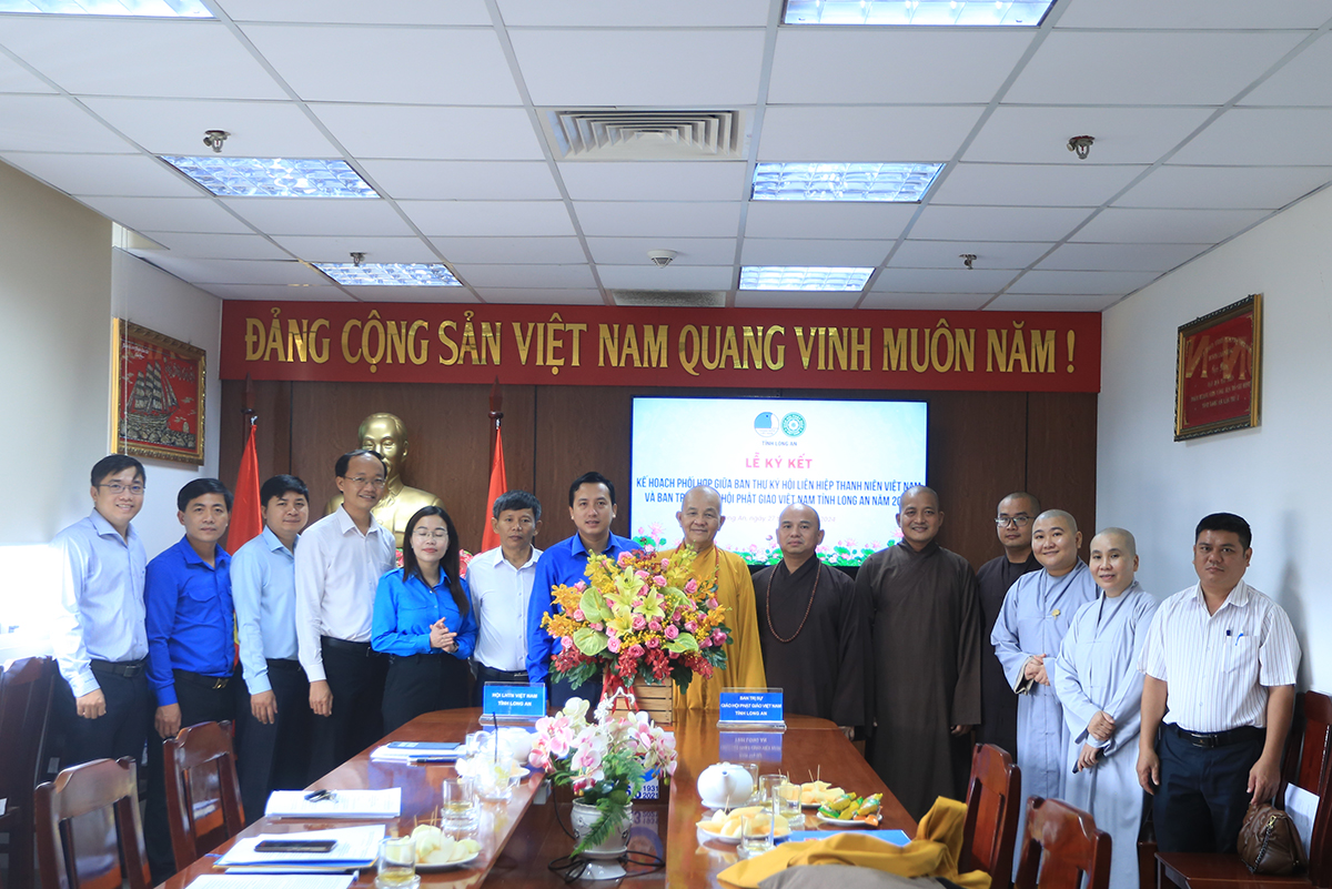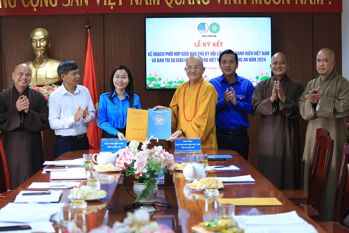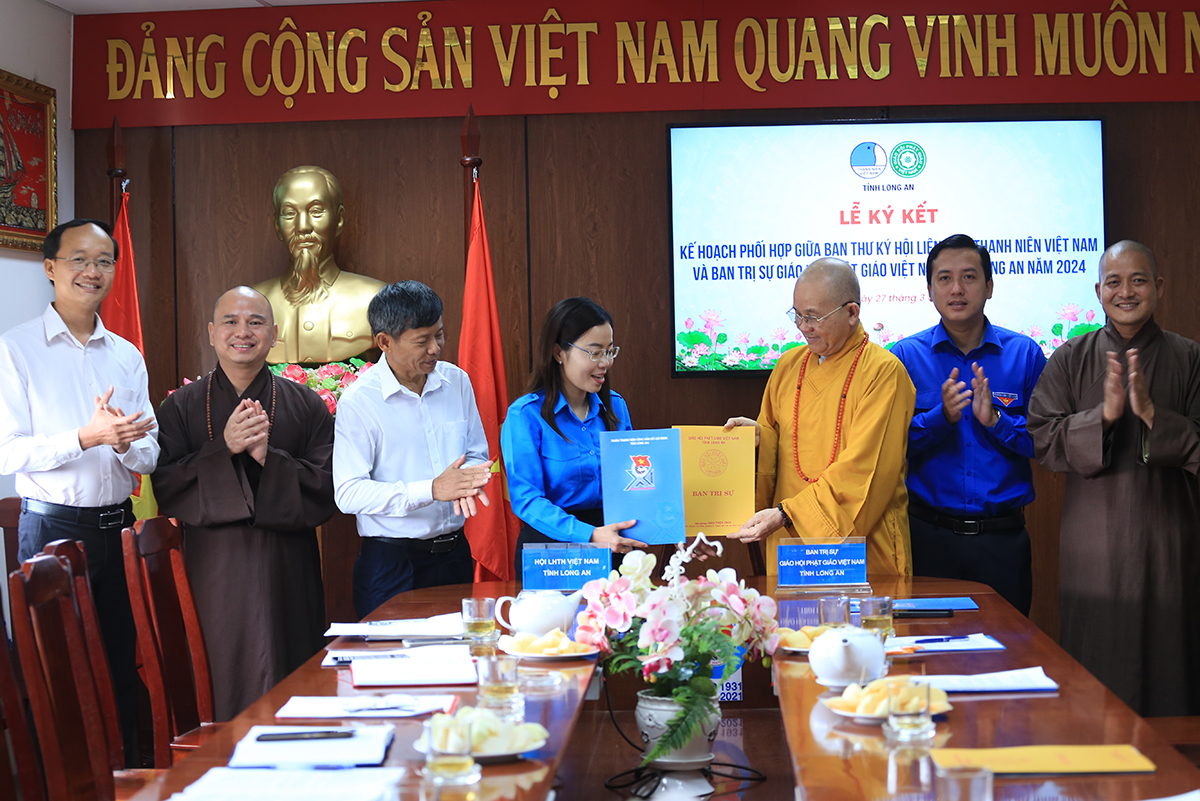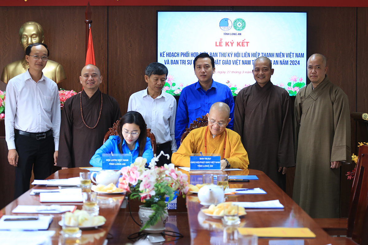 Sáng ngày 27/3/2024 (nhằm ngày 18 tháng 02 năm Giáp Thìn), Hội LHTNVN tỉnh Long An đã trọng thể tổ chức Lễ ký kết Kế hoạch phối hợp giữa Ban Thư ký Hội LHTNVN tỉnh và Ban Trị sự GHPGVN tỉnh năm 2024.