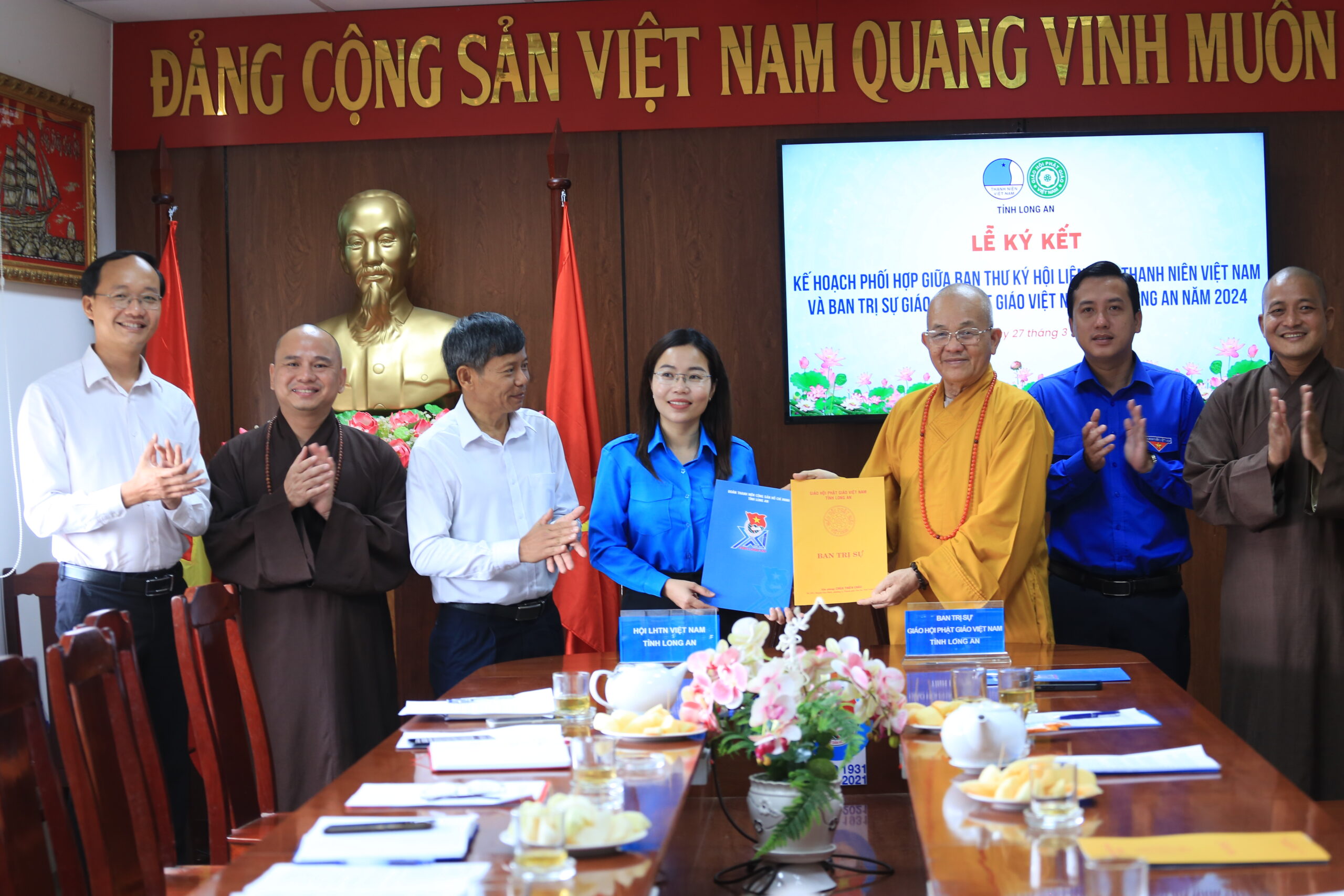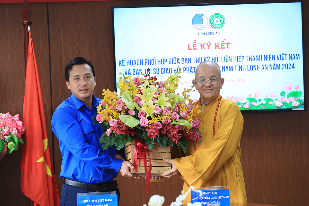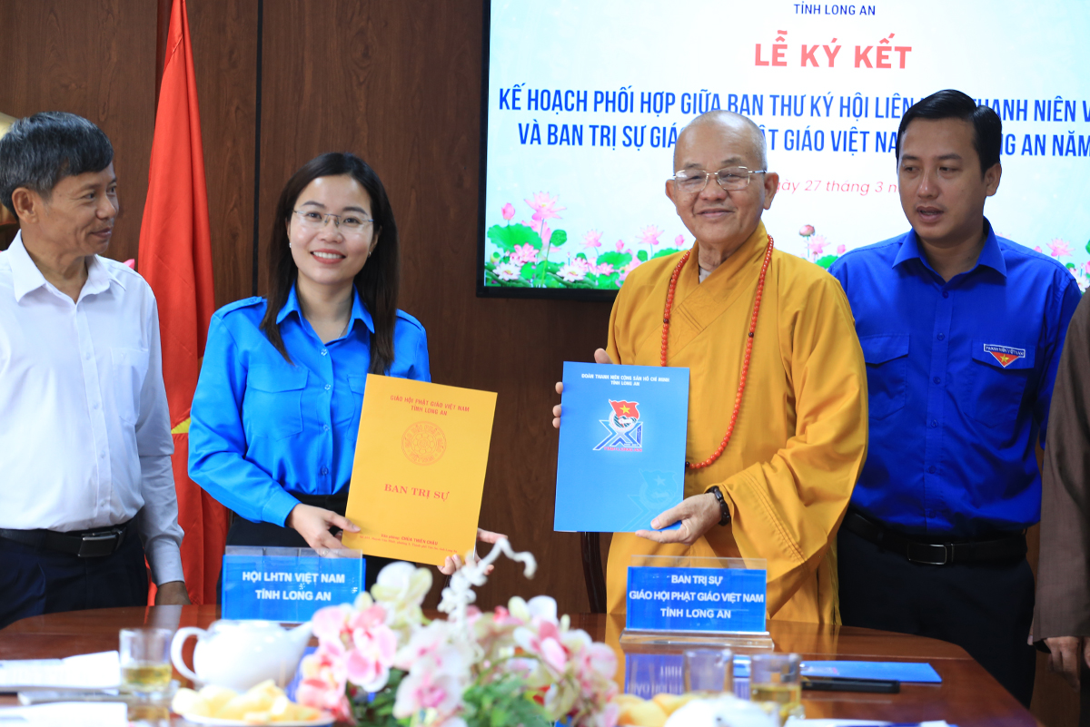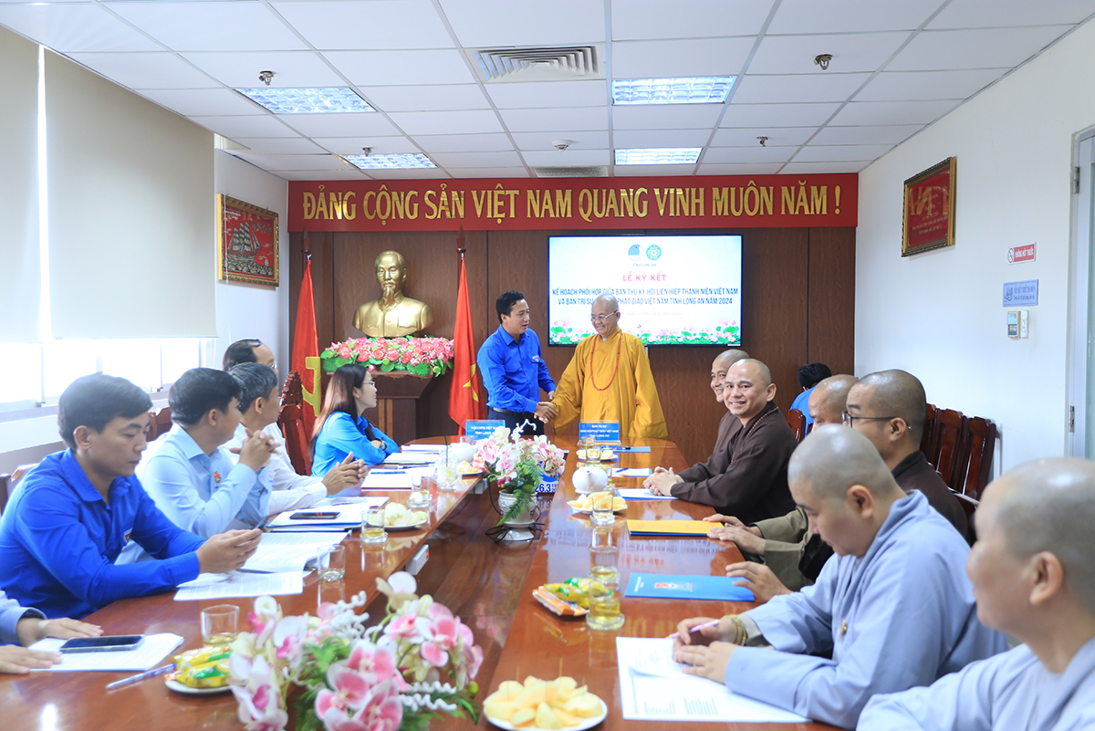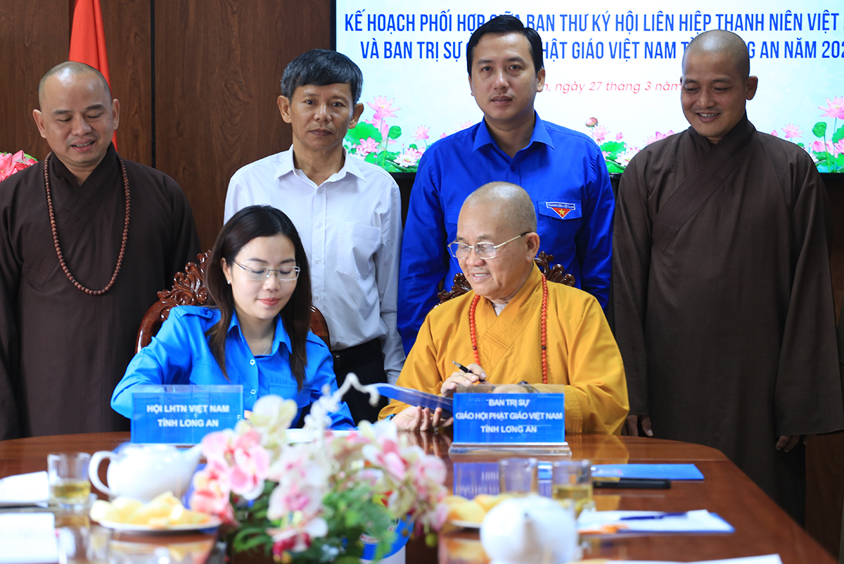 Sáng ngày 27/3/2024 (nhằm ngày 18 tháng 02 năm Giáp Thìn), Hội LHTNVN tỉnh Long An đã trọng thể tổ chức Lễ ký kết Kế hoạch phối hợp giữa Ban Thư ký Hội LHTNVN tỉnh và Ban Trị sự GHPGVN tỉnh năm 2024.