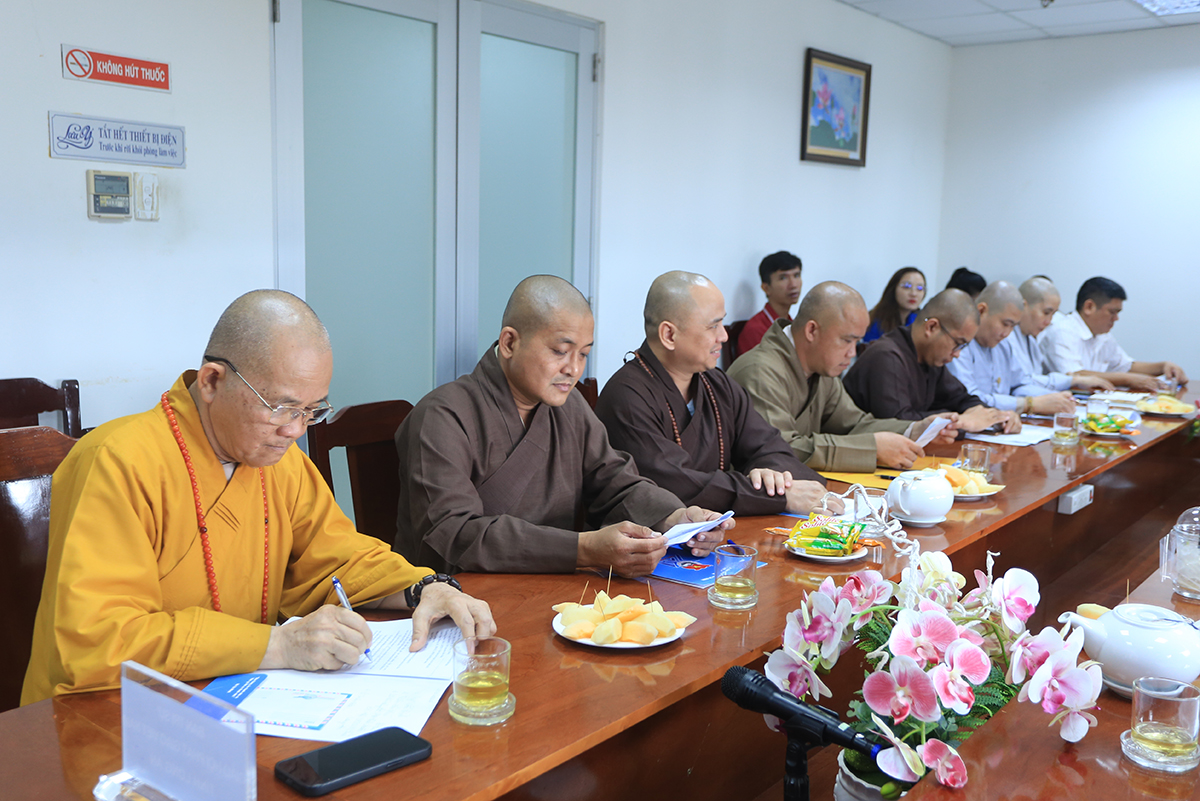 HT Thích Minh Thiện có lời phát biểu tại lễ ký kết. Hòa thượng cho biết các tu sĩ và tín đồ Phật giáo cam kết thực hiện nghĩa vụ và trách nhiệm của mình thông qua công tác giáo dục, thiện nguyện và an sinh xã hội. Tinh thần này cũng được thanh niên Việt Nam hướng tới theo gương Bác Hồ. Phật giáo và dân tộc luôn hỗ trợ nhau, đấu tranh chống lại kẻ thù ngoại xâm và đóng góp vào sự phát triển quốc gia. Hòa thượng nhấn mạnh rằng việc Tăng sĩ tham gia hoạt động này không chỉ là thực hiện truyền thống “Phật giáo đồng hành cùng dân tộc”, mà còn là bảo vệ tâm nguyện và lý tưởng cao quý của người xuất gia theo Phật, như đã thấy qua đóng góp của các vị tổ sư như Vạn Hạnh thiền sư và Phật Hoàng Trần Nhân Tông trong lĩnh vực giáo dục và sự phát triển của đất nước.