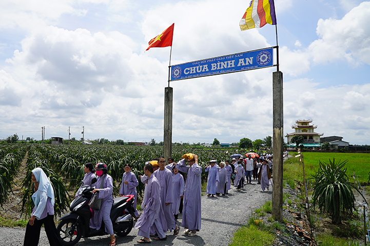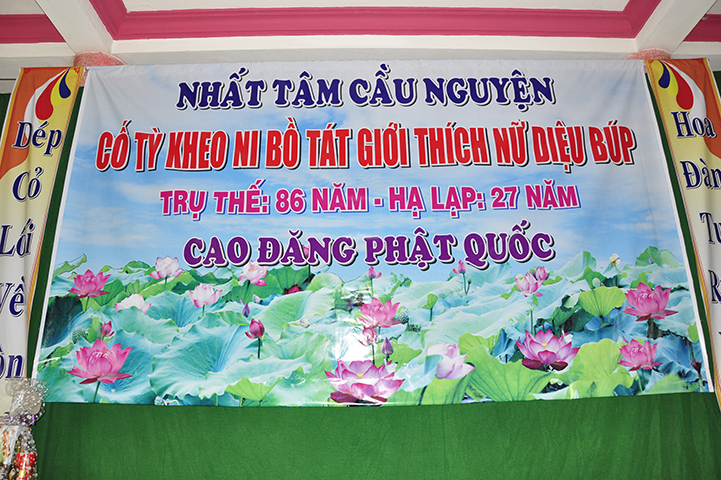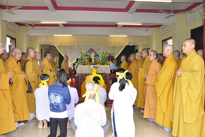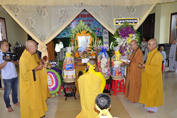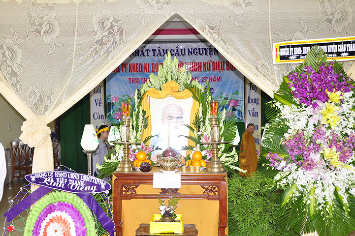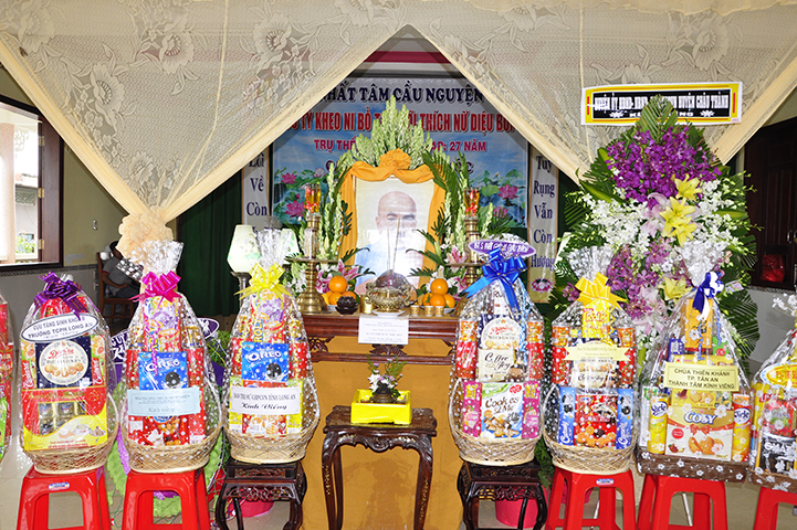 Chiều ngày 16/10/2017 ( 27/08/ Đinh Dậu), ban Chứng Minh, ban Thường trực GHPGVN tỉnh Long An, ban Giám hiệu trường Sơ – Trung cấp Phật học Long An cùng chư tôn đức trụ trì các tự viện đến chùa Bình An, ấp Phú Xuân 2, xã Hiệp Thạnh, huyện Châu Thành, tỉnh Long An kính viếng giác linh Ni sư Thích nữ Diệu Búp, 27 năm hạ lạp, 86 năm trụ thế, quạn tự chùa Bình An