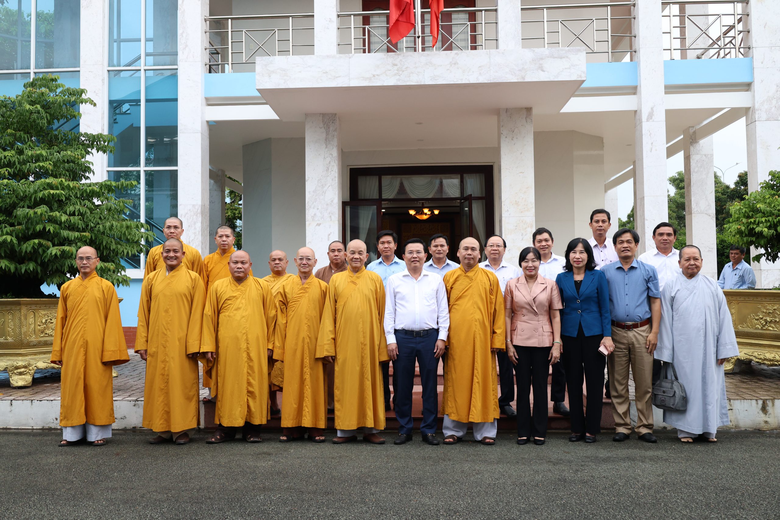 Phái đoàn do: HT. Thích Minh Thiện – UV HĐTS, Phó ban Hoằng pháp TƯ, Chứng minh, cố vấn BTS GHPGVN tỉnh Tây Ninh làm trưởng đoàn; tháp tùng phái đoàn còn có: TT. Thích Quảng Tâm – UV HĐTS, Phó ban Từ thiện xã hội TƯ, Trưởng BTS GHPGVN tỉnh; ĐĐ. Thích Thiện Thức – UV HĐTS, Phó Trưởng ban Thường trực BTS GHPGVN tỉnh; TT. Thích Lệ Trí – UV HĐTS, Phó BTS kiêm Trưởng ban GDPG GHPGVN tỉnh; ĐĐ. Thích Lệ Duyên – Phó ban kiêm Chánh Thư ký BTS GHPGVN tỉnh; cùng Chư Tôn đức Ban Thường trực BTS GHPGVN tỉnh đồng tham dự.