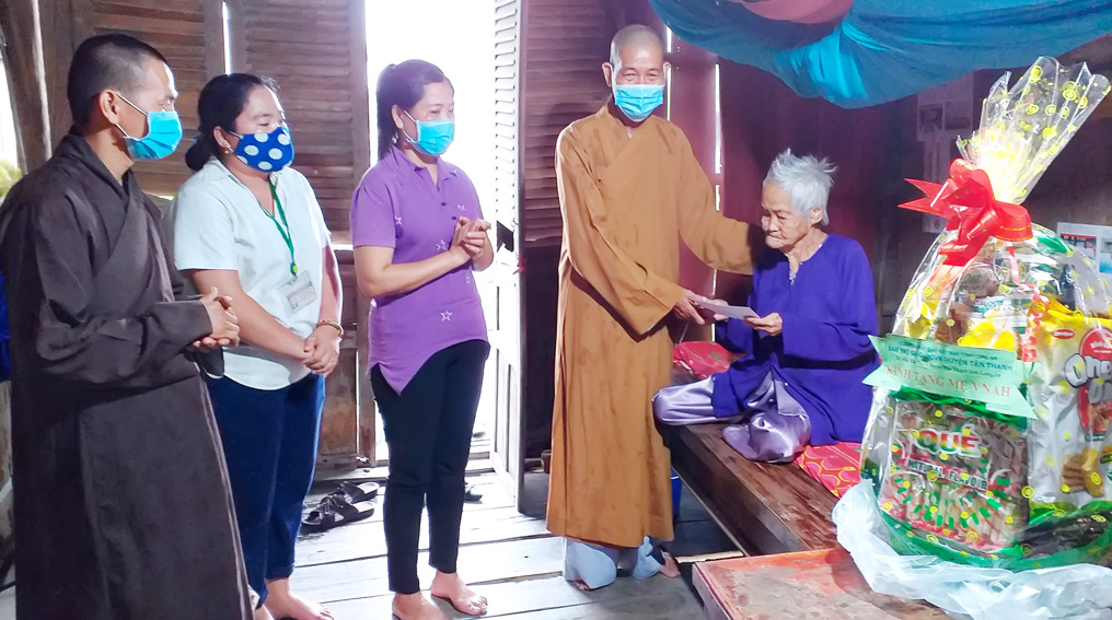 Dịp này, Ban trị sự giáo hội Phật giáo Việt Nam huyện Tân Thạnh tặng 21 phần quà cho các Mẹ VNAH và cán bộ cách mạng lão thành, mỗi phần quà trị giá 500 ngàn đồng./.
