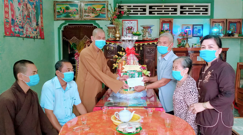 Nhân Đại lễ Phật đản năm 2021 Phật lịch 2565, ngày 25/5/2021 Ban trị sự giáo hội Phật giáo Việt Nam huyện Tân Thạnh do Thượng tọa Thích Lệ Tấn – Trưởng Ban trị sự giáo hội Phật giáo Việt Nam huyện Tân Thạnh, Trụ trị chùa Giác Hoa làm đại diện phối hợp cùng lãnh đạo Đảng ủy, HĐND, UBND, UB.MTTQ Việt Nam các xã đến từng nhà thăm và tặng quà cho các Mẹ VNAH và cán bộ cách mạng lão thành trên địa bàn huyện.
