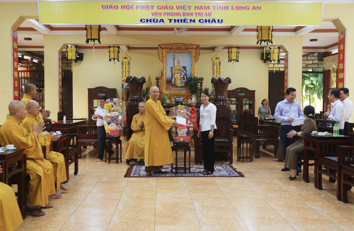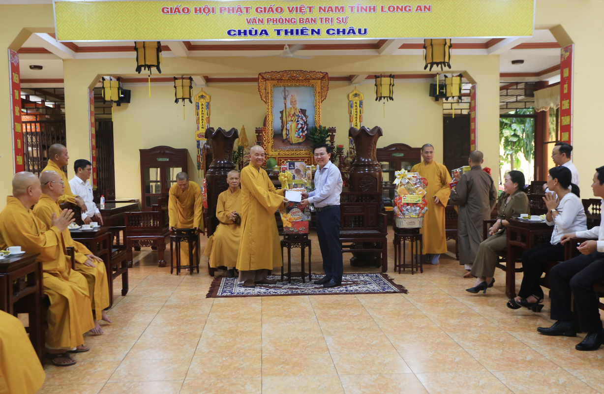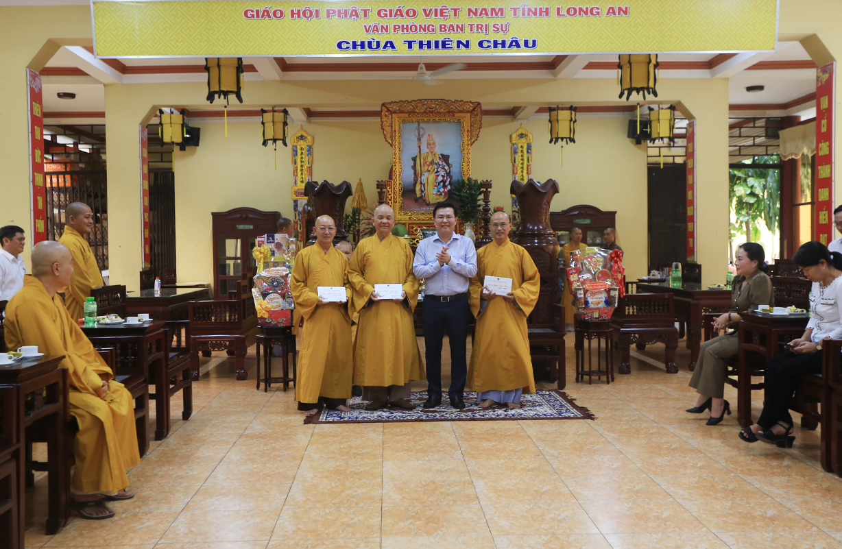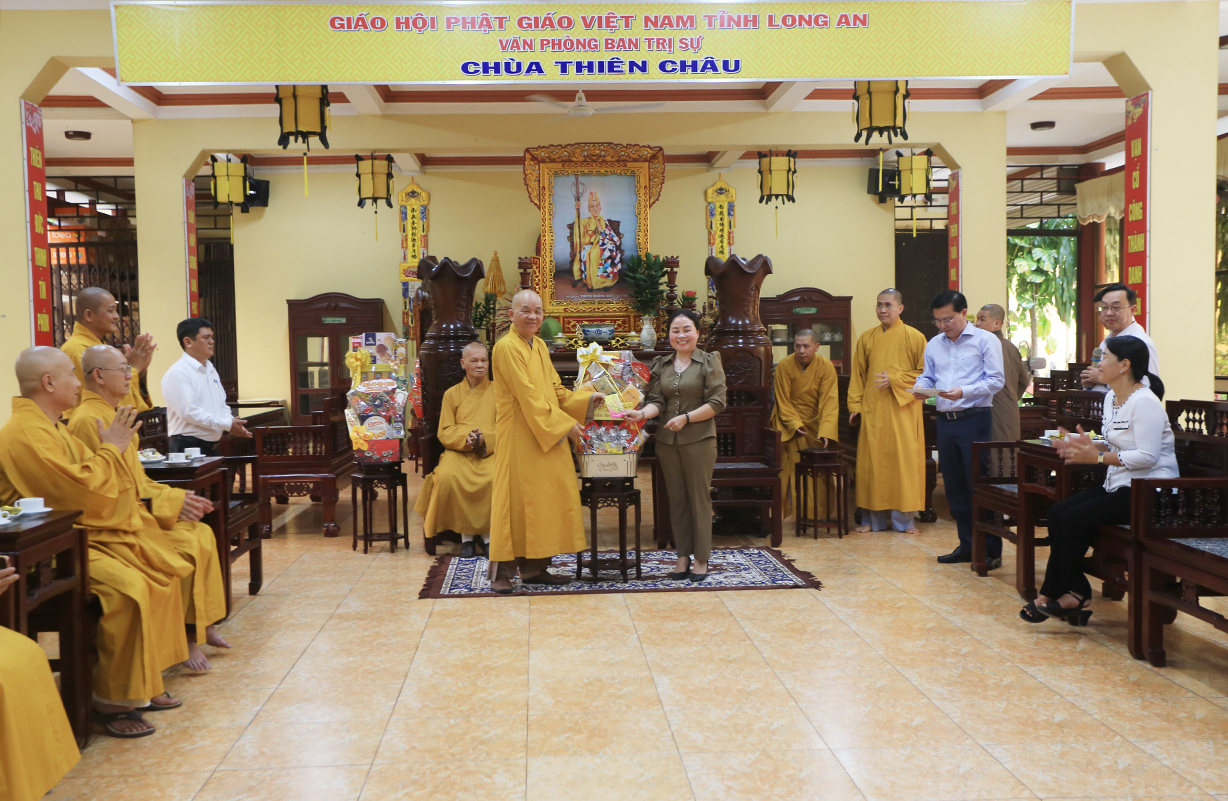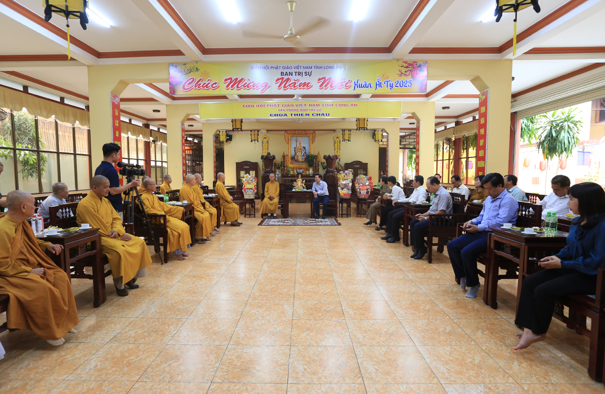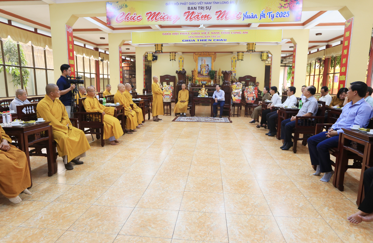 Chiều 17/1( 18/ 12/ Giáp Thìn), Chư tôn đức Thường trực Ban Trị sự GHPGVN tỉnh Long An đón tiếp Ông Nguyễn Thanh Hải- Phó Bí thư Thường trực Tỉnh ủy, Trưởng Đoàn Đại biểu Quốc hội tỉnh Long An làm trưởng đoàn đến thăm, chúc tết Ban Trị sự Giáo hội Phật giáo Việt Nam tỉnh Long An tại chùa Thiên Châu. Cùng đi có lãnh đạo Ủy ban MTTQ Việt Nam tỉnh, Ban Dân vận Tỉnh ủy và lãnh đạo thành phố Tân An.