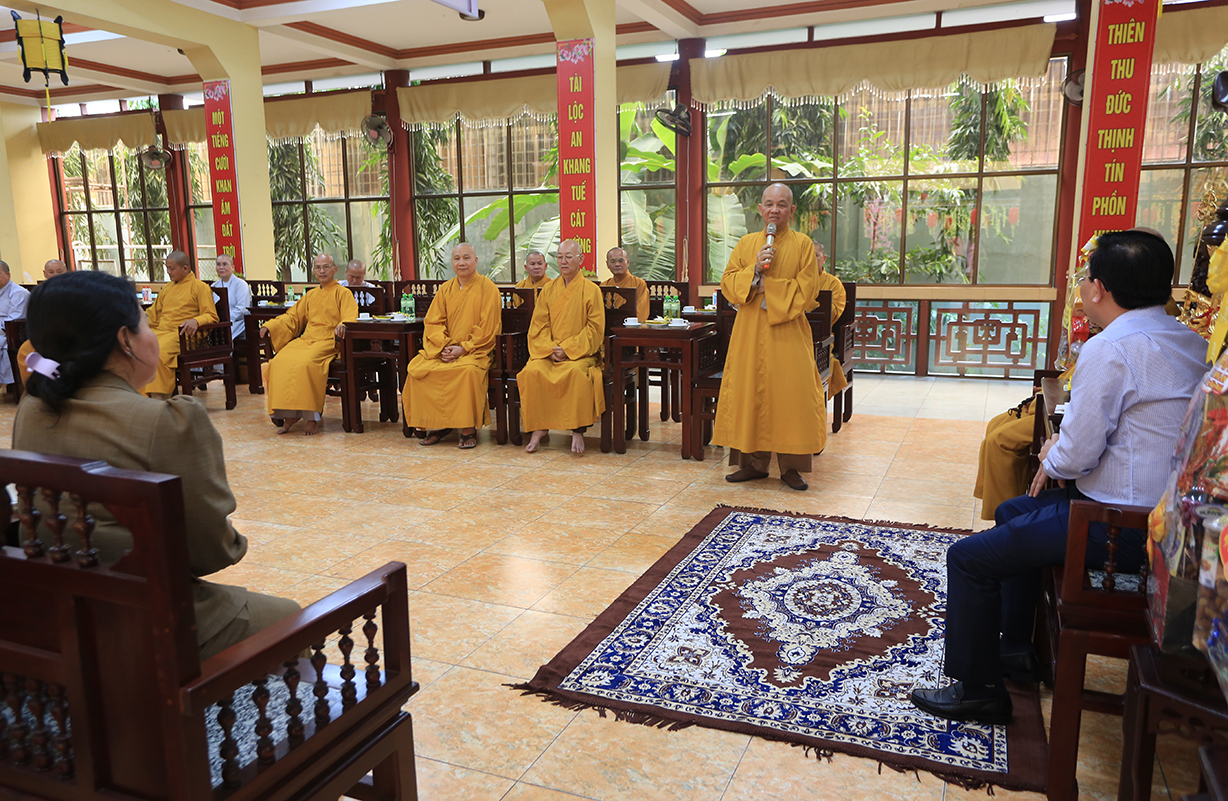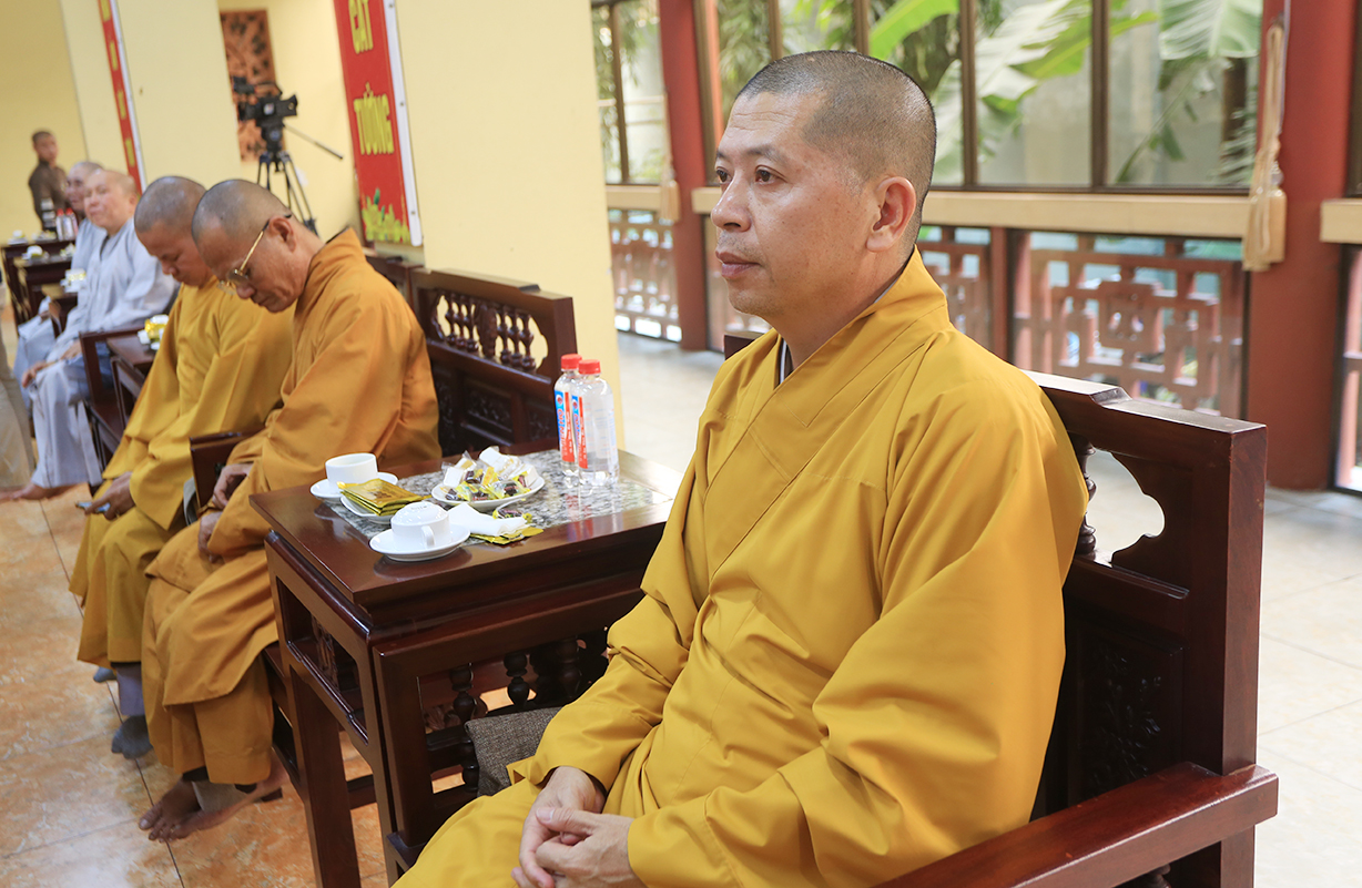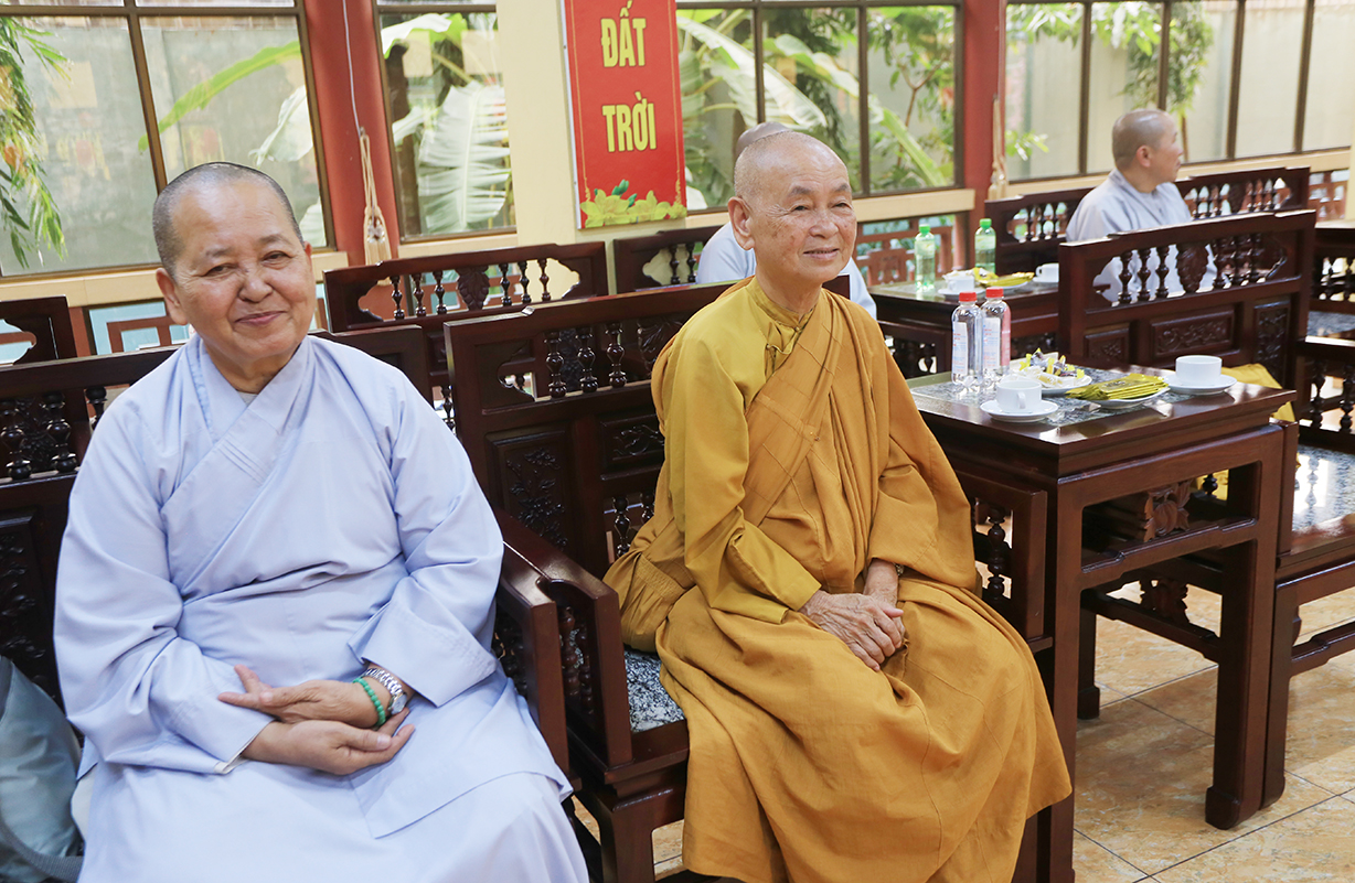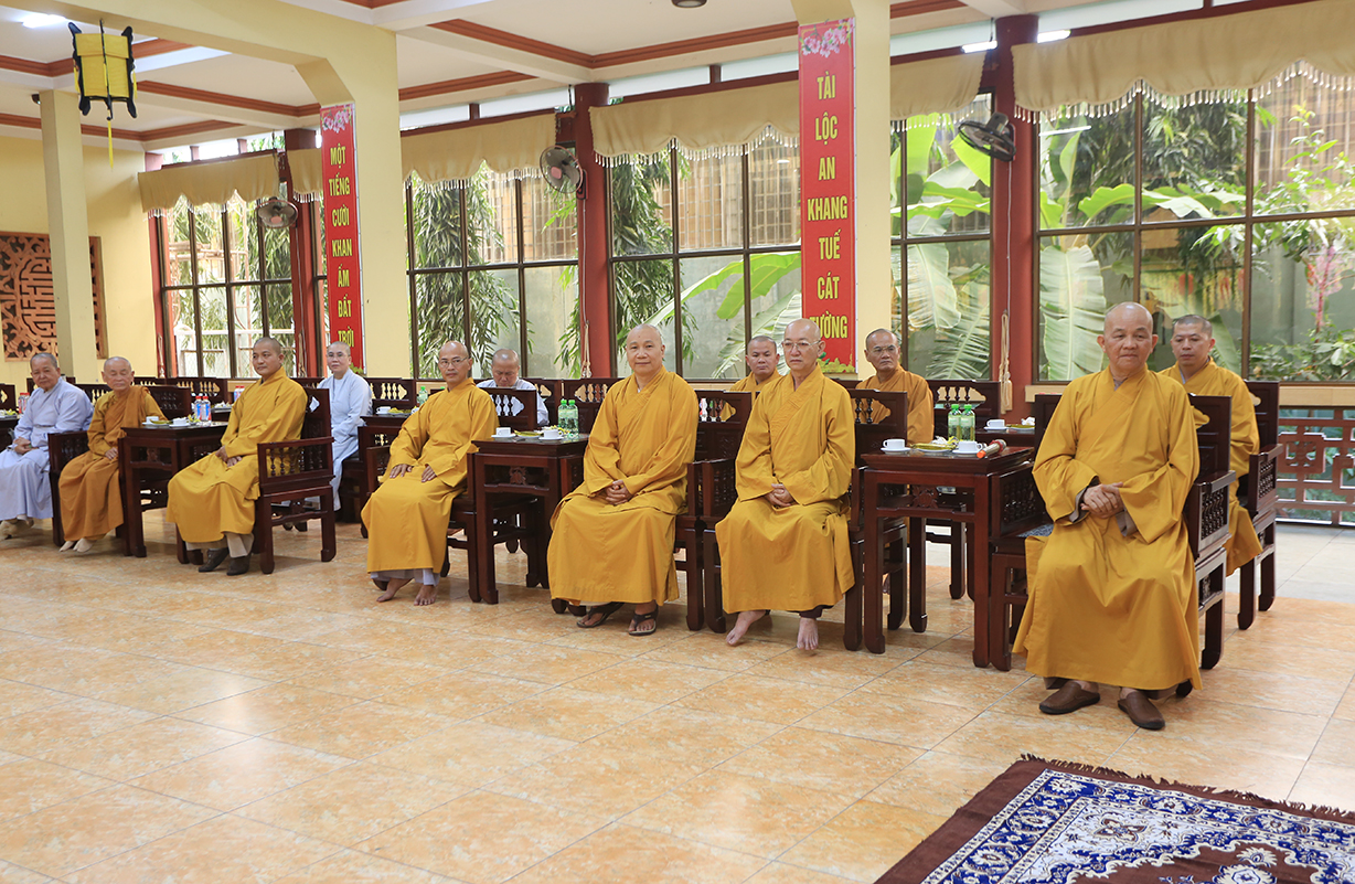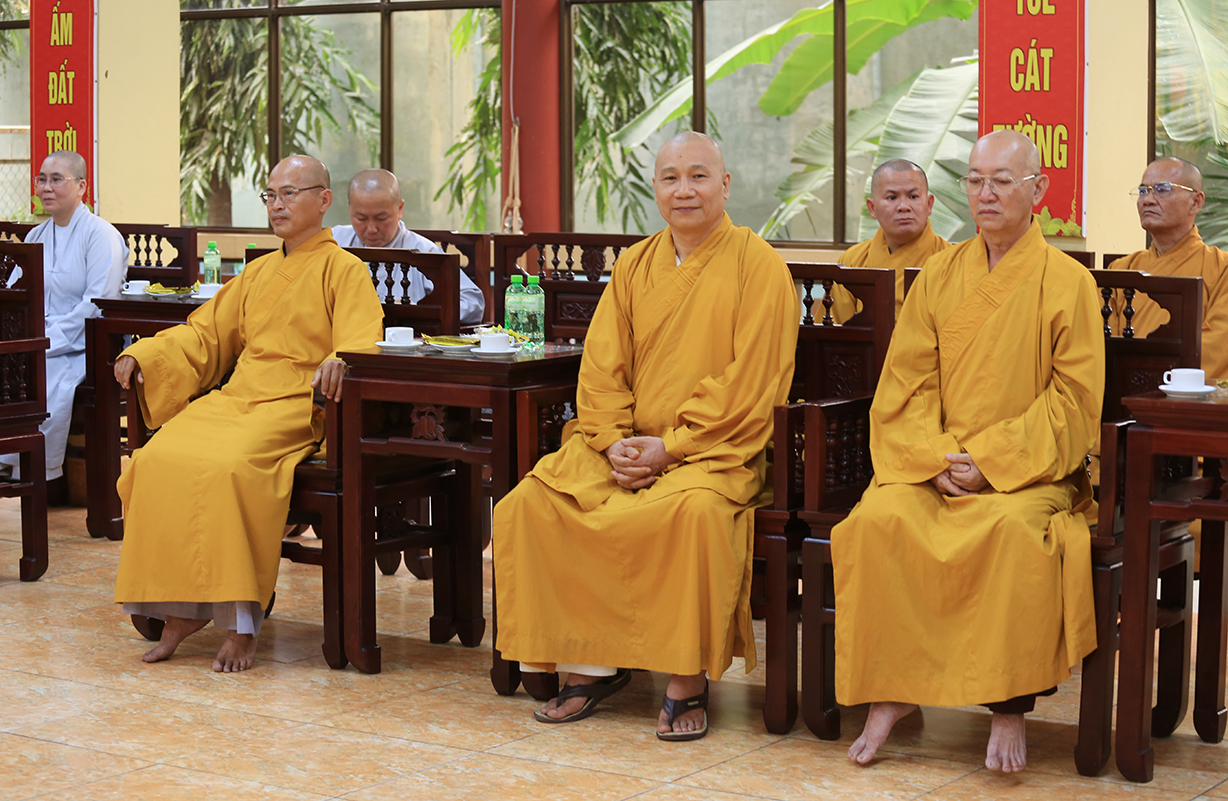 Tiếp đón phái đoàn có HT Thích Phước Toàn- Chứng minh BTS GHPGVN quận Bình Tân, Viện chủ chùa Vạn Đức, quận Bình Tân, TP HCM; HT Thích Minh Thiện – Ủy viên HĐTSTƯ, Phó Trưởng Ban Hoằng pháp Trung ương, Trưởng Ban Trị sự Giáo hội Phật giáo Việt Nam tỉnh; TT Thích Quảng Tâm- Ủy viên HĐTSTƯ, Phó ban Thường trực BTS GHPGVN tỉnh Long An; TT Thích Lệ Trí- Phó Ban Trị sự, Trưởng ban Giáo dục Tăng Ni GHPGVN tỉnh Long An; TT Thích Đức Hoàng- Phó Ban Trị sự GHPGVN tỉnh; ĐĐ Thích Lệ Duyên- Phó Ban, Chánh thư ký GHPGVN tỉnh cùng quý Chư tôn đức Tăng Ni trong Thường trực BTSGHPGVN tỉnh tham dự.