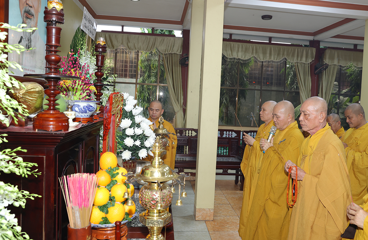 Trong không khí trang nghiêm của buổi lễ, Hòa Thượng Thích Minh Thiện – Trưởng Ban Trị sự Giáo hội Phật giáo Việt Nam tỉnh Long An cùng chư tăng ôn lại tóm tắt tiểu sử, quá trình công tác của đồng chí Tổng Bí thư Nguyễn Phú Trọng, sau đó thực hiện nghi thức thắp hương tưởng niệm, tri ân công đức, tụng kinh cầu nguyện theo truyền thống của Phật giáo Việt Nam.