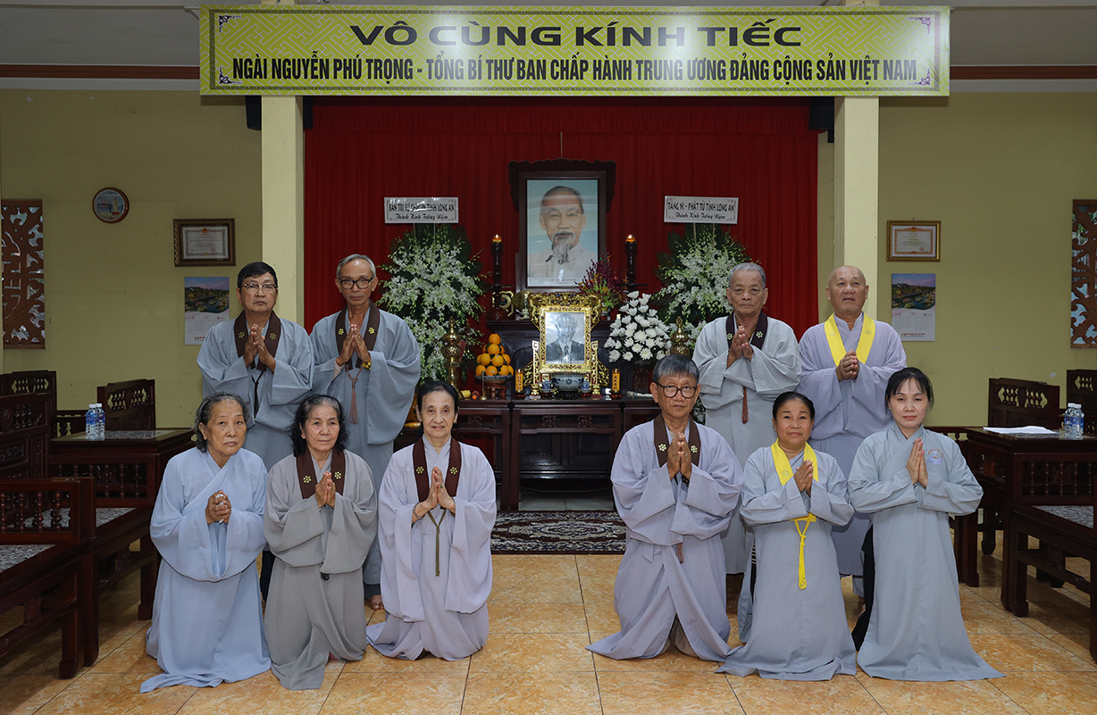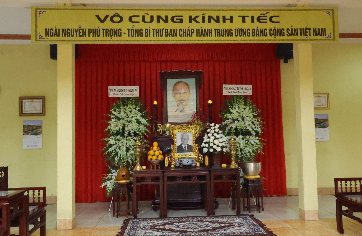 Cùng chung niềm tiếc thương vô hạn và sự tri ân sâu sắc người dân trên mọi miền đất nước đối với sự ra đi của Tổng Bí thư Nguyễn Phú Trọng Chiều ngày 20/ 07/ 2024, tại chùa Thiên Châu, thành phố Tân An, Ban Trị sự Giáo hội Phật giáo Việt Nam tỉnh Long An thành kính tổ chức Lễ tưởng niệm Tổng Bí thư Nguyễn Phú Trọng.