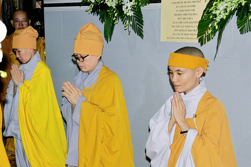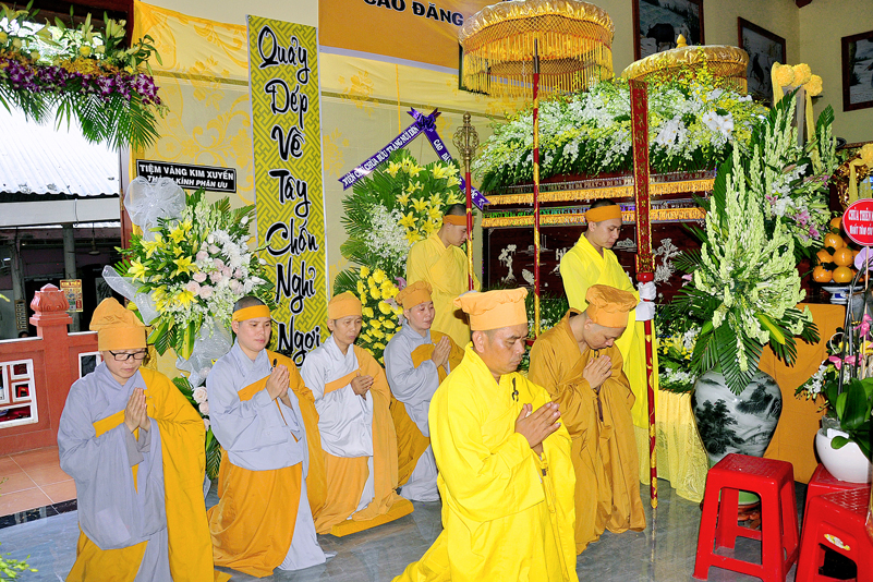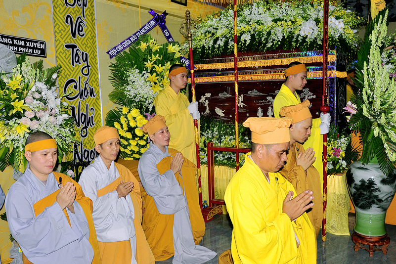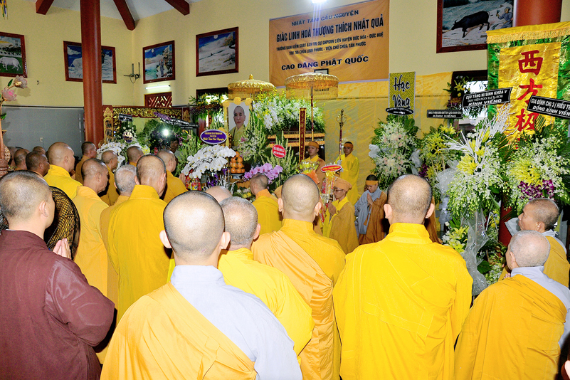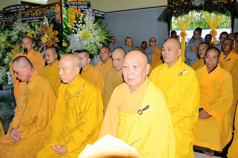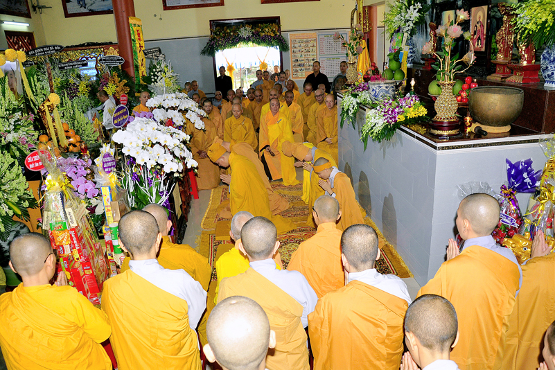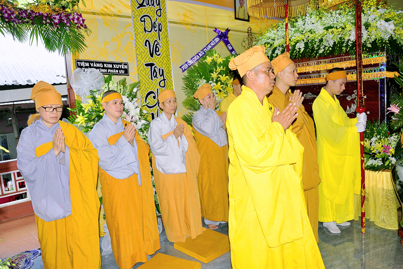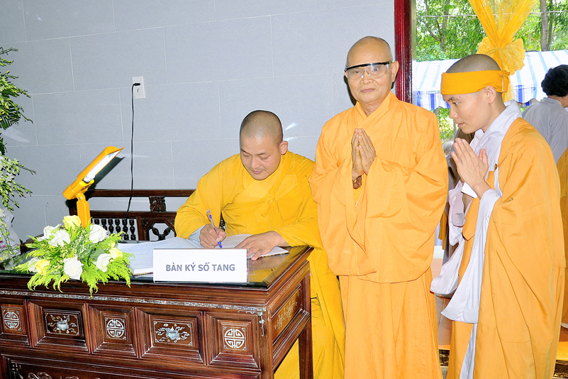 Sau đó, Chư tôn đức giáo phẩm niêm hương tưởng niệm, cầu nguyện Giác linh cố Hòa thượng Thượng phẩm thượng sanh, cao đăng Phật quốc, chư tôn đức giáo phẩm hữu nhiễu kim quan và ghi sổ tang lưu niệm. Môn đồ hiếu quyến lạy tạ thâm ân!