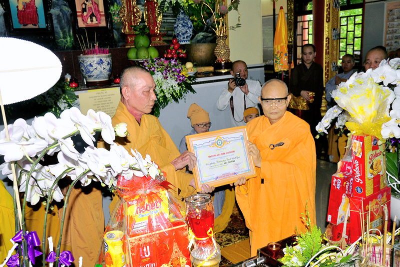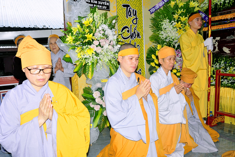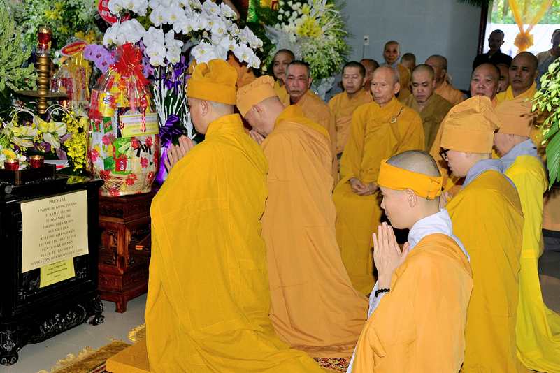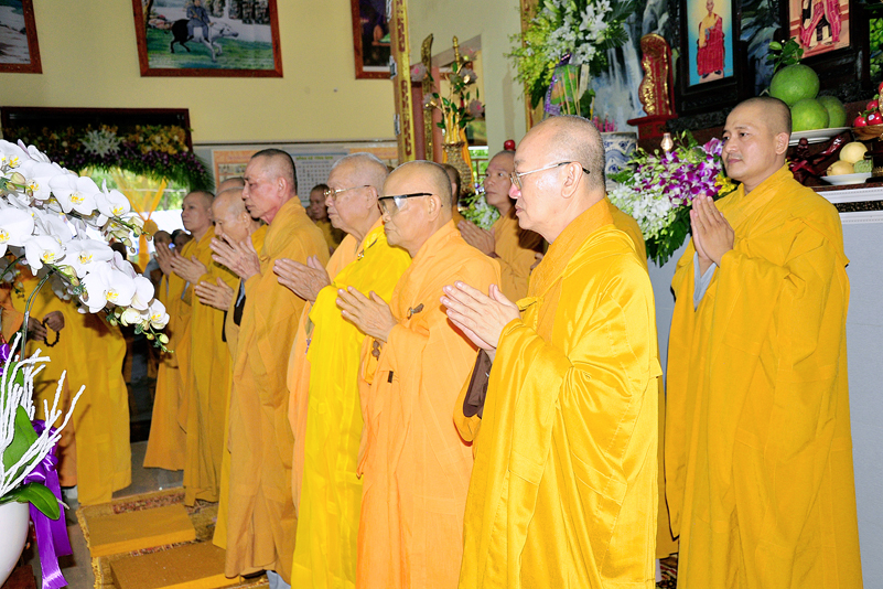 Hiện diện nơi lễ đường, có HT. Thích Thiện Huệ- HT. Thích Huệ Hồng- Chứng minh Ban Trị sự GHPGVN tỉnh Long An; HT. Thích Minh Thiện- Ủy Viên Hội đồng Trị sự, Phó Trưởng Ban Hoằng pháp Trung Ương GHPGVN, Trưởng Ban Trị sự GHPGVN tỉnh Long An; TT. Thích Quảng Tâm- UV. HĐTS, Phó Trường ban Thường Trực GHPGVN tỉnh Long An, HT.Thích Thiện Phúc- Trưởng Ban Trị sự GHPGVN liên huyện Đức Hòa-Đức Huệ; Ni trưởng Thích Nữ Như Hương – Trưởng Ban Trị sự GHPGVN huyện Thạnh Hóa; cùng chư tôn đức BTS GHPGVN tỉnh Long An; chư tôn đức BTS GHPGVN liên huyện Đức Hòa- Đức Huệ; chư tôn đức BTS GHPGVN huyện Thạnh Hóa.