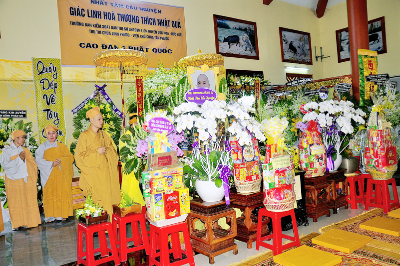 Chiều ngày 20/12/2019 (25/11/ Kỷ Hợi) chư tôn giáo phẩm Ban Trị Sự Giáo Hội Phật Giáo Việt Nam tỉnh Long An; Ban Trị Giáo Hội Phật Giáo Việt Nam liên huyện Đức Hòa- Đức Huệ; Ban Giám hiệu- Ban Chủ nhiệm Trường Sơ-Trung cấp Phật học tỉnh Long An đã quang lâm chùa Linh Phước (ấp Thôi Môi, xã Hòa Khánh Đông, huyện Đức Hòa, tỉnh Long An) viếng tang lễ Hòa thượng Thích Nhật Quả Trưởng ban Kiểm soát Ban Trị sự Giáo hội Phật giáo Việt Nam liên huyện Đức Hòa- Đức Huệ tỉnh Long An, Trụ trì Chùa Linh Phước.