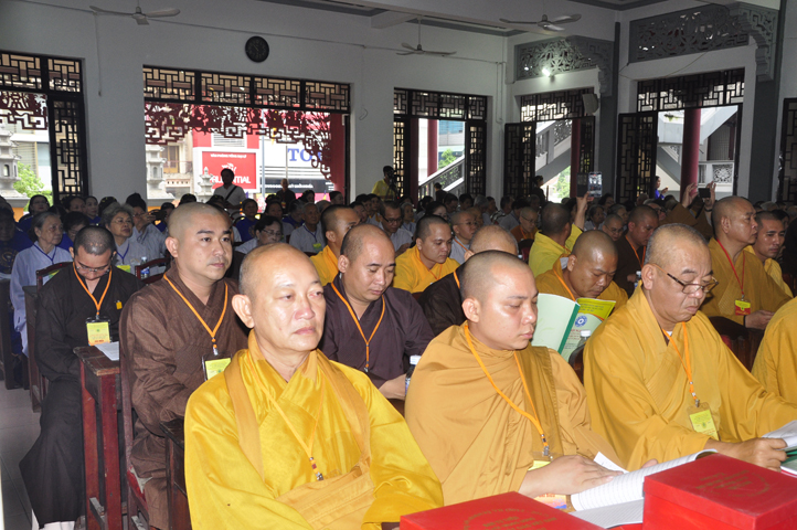 HT.Thích Như Niệm, UVTT HĐTS, Phó ban Thường trực Ban TTXH T.Ư cùng chư tôn đức lãnh đạo Ban đã chủ trì hội nghị với sự hiện diện đông đảo chư tôn đức Tăng Ni, quý cư sĩ.