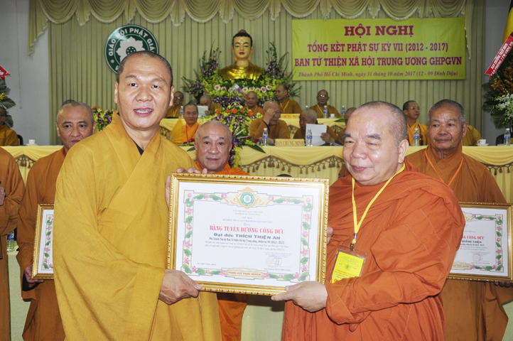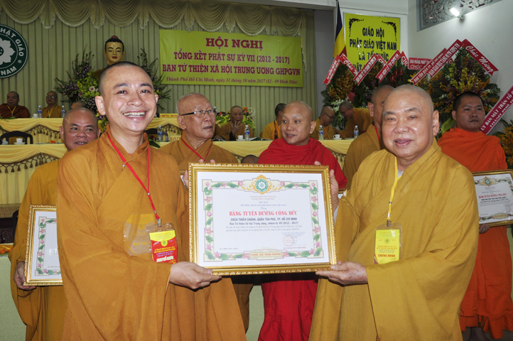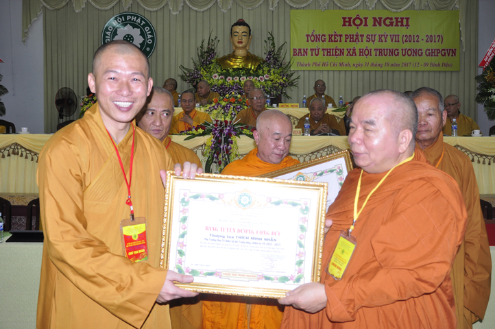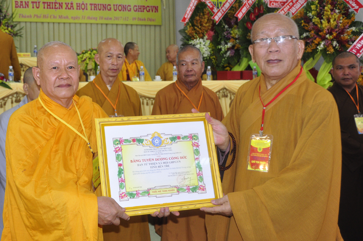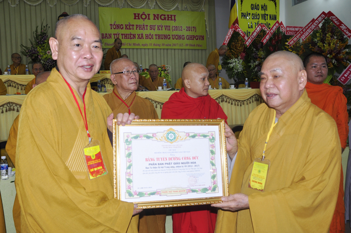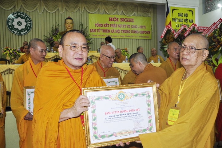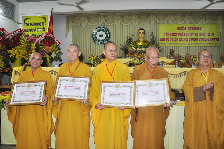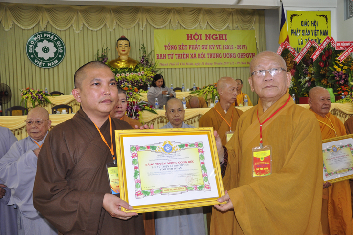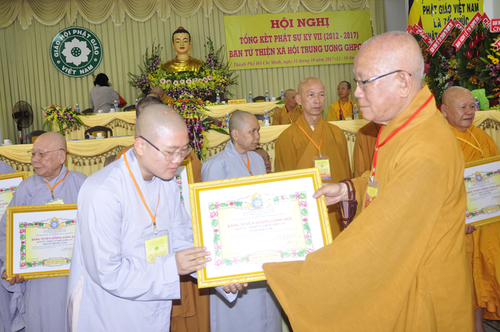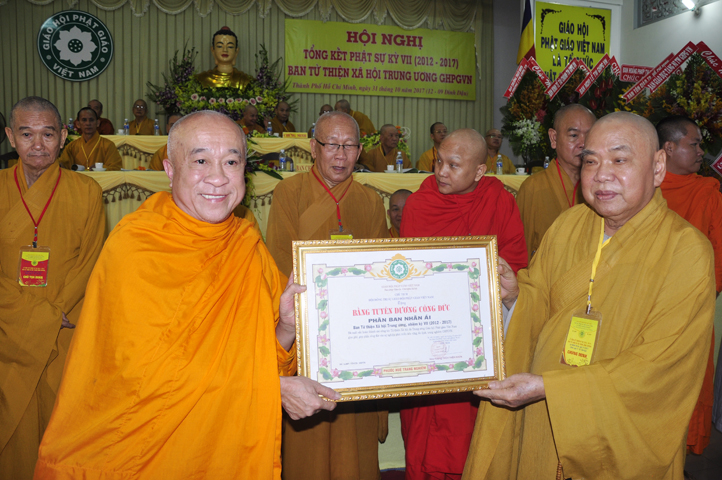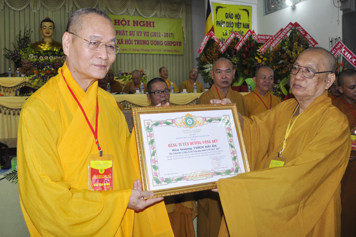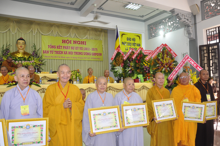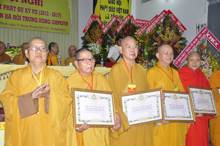 Dịp này, TƯGH đã tặng Bằng Tuyên dương Công đức, Bằng công đức đến các cá nhân của Ban đã hoàn thành xuất sắc nhiệm vụ Phật sự nhiệm kỳ 2012-2017.