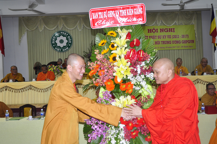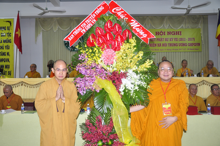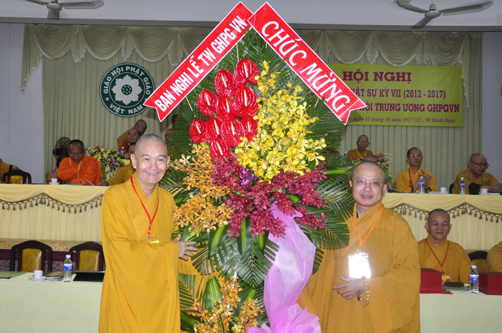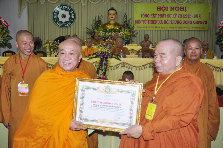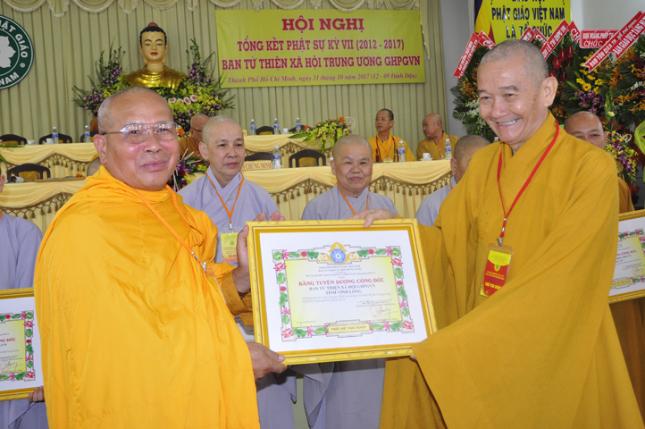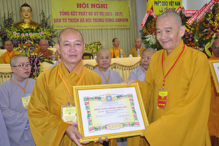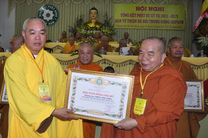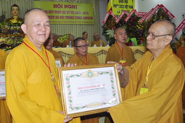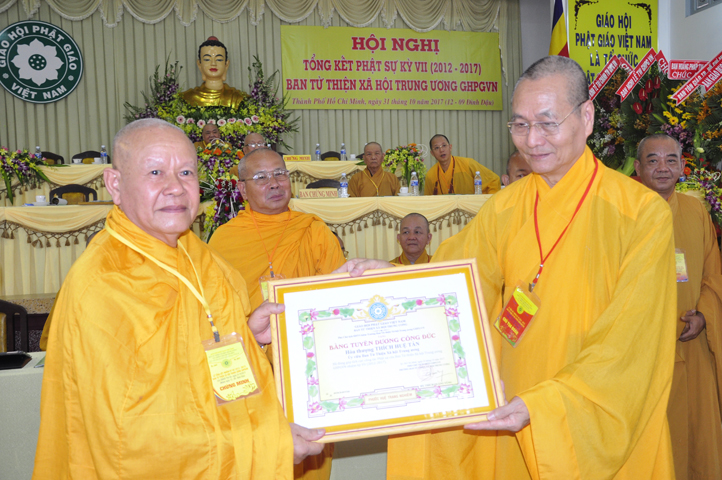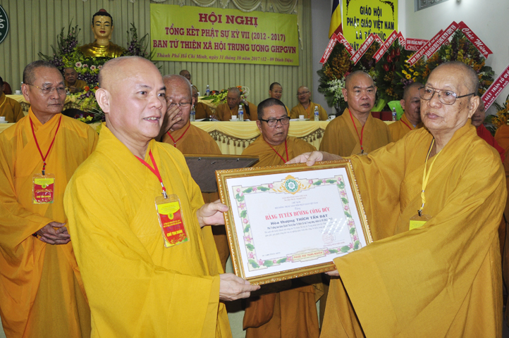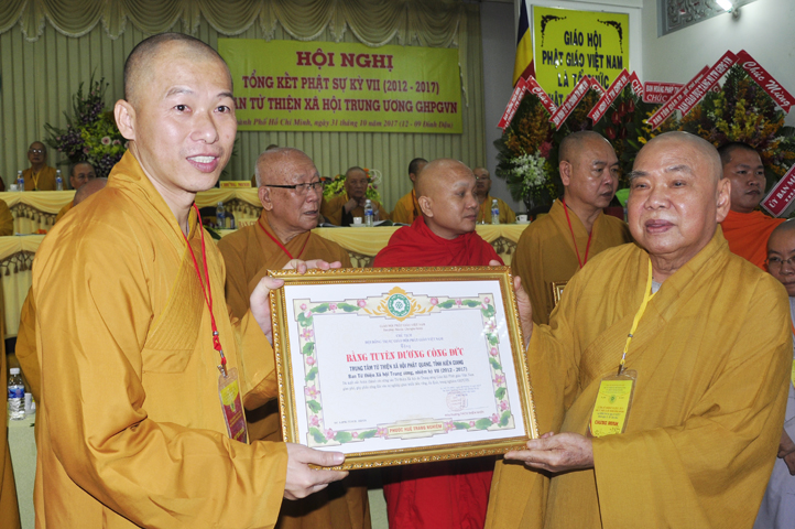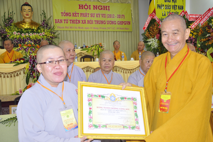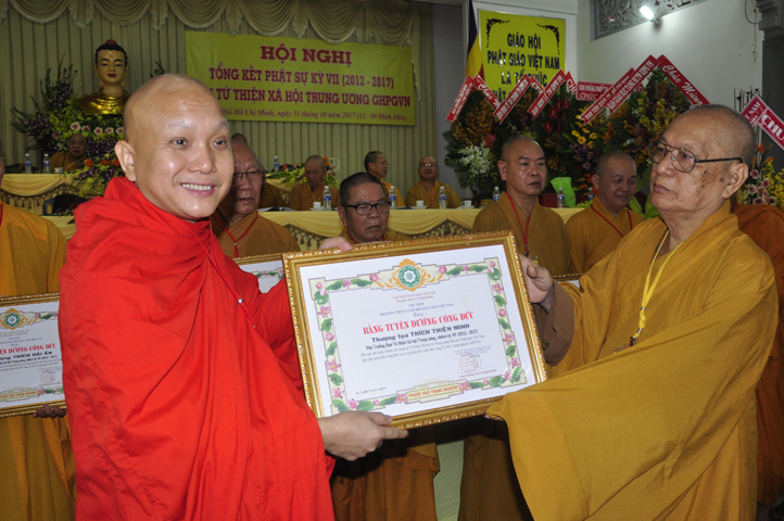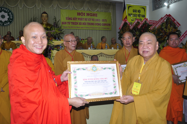 Dịp này, TƯGH đã tặng Bằng Tuyên dương Công đức, Bằng công đức đến các cá nhân của Ban đã hoàn thành xuất sắc nhiệm vụ Phật sự nhiệm kỳ 2012-2017.