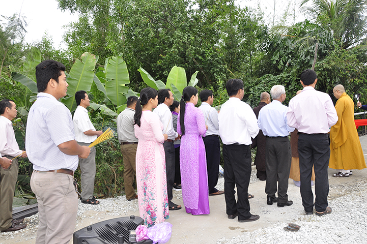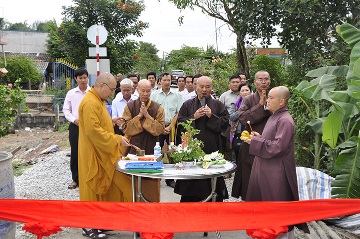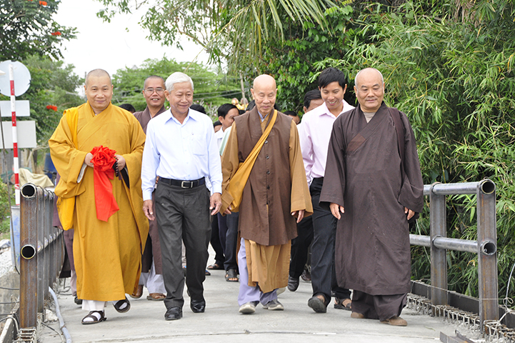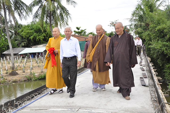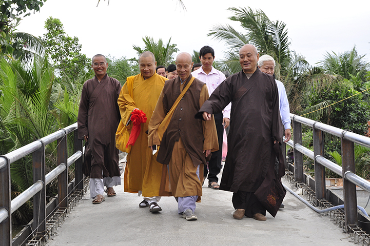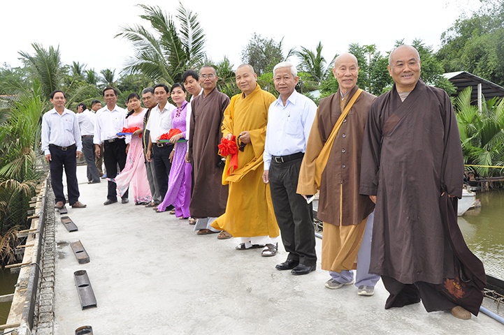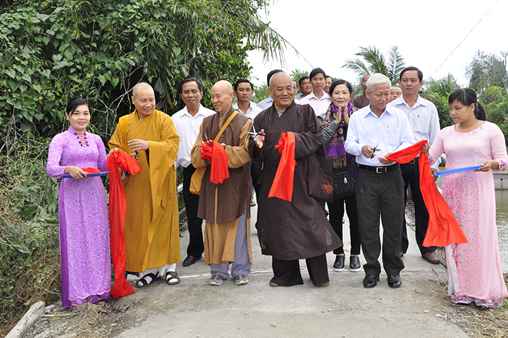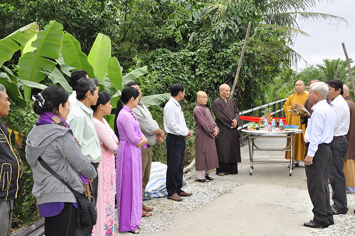 Dù công trình thi công chưa hoàn thành còn đang trong giai đoạn lắp lan can thành cầu, nhưng để thuận tiện việc ĐĐ. Thích Tịnh Nhẫn làm lễ bàn giao cầu và trở về Hoa Kỳ nên BTS GHPGVN tỉnh Long An và chính quyền địa phương sở tại đã tổ chức buổi lễ.
