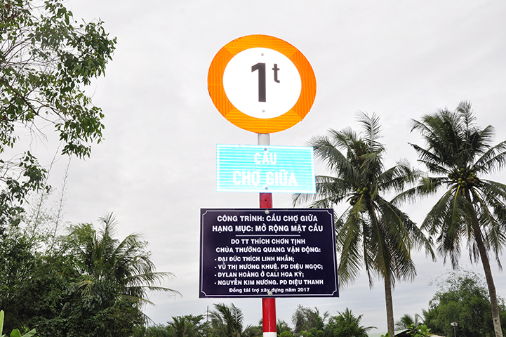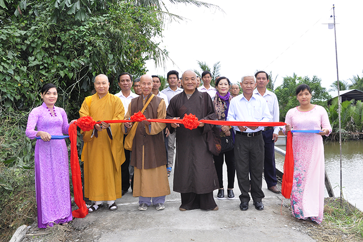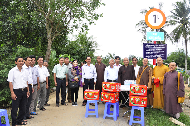Sáng 8 giờ ngày 21/12/2017 (nhằm ngày mùng 4 tháng 11 năm Đinh Dậu), Ban Từ Thiện Báo Giác Ngộ do Thượng Tọa Thích Chơn Tịnh hướng dẫn đã phối hợp với Ban Trị Sự GHPGVN tỉnh Long An về huyện Châu Thành, tỉnh Long An để bàn giao cây cầu Chợ Giữa nối liền xã Hiệp Thạnh và xã Vĩnh Công.