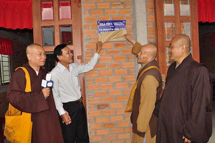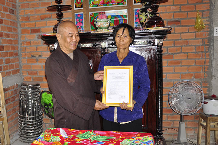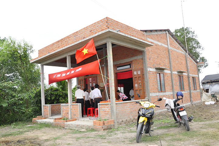 Đến 9 giờ 30 cùng ngày, phái đoàn Từ thiện cũng đã đến nhà bà Châu Thị Hồng ấp 6 xã Tân Phước Tây, huyện Tân Trụ, tỉnh Long An để bàn giao căn nhà tình thương cho gia đình.